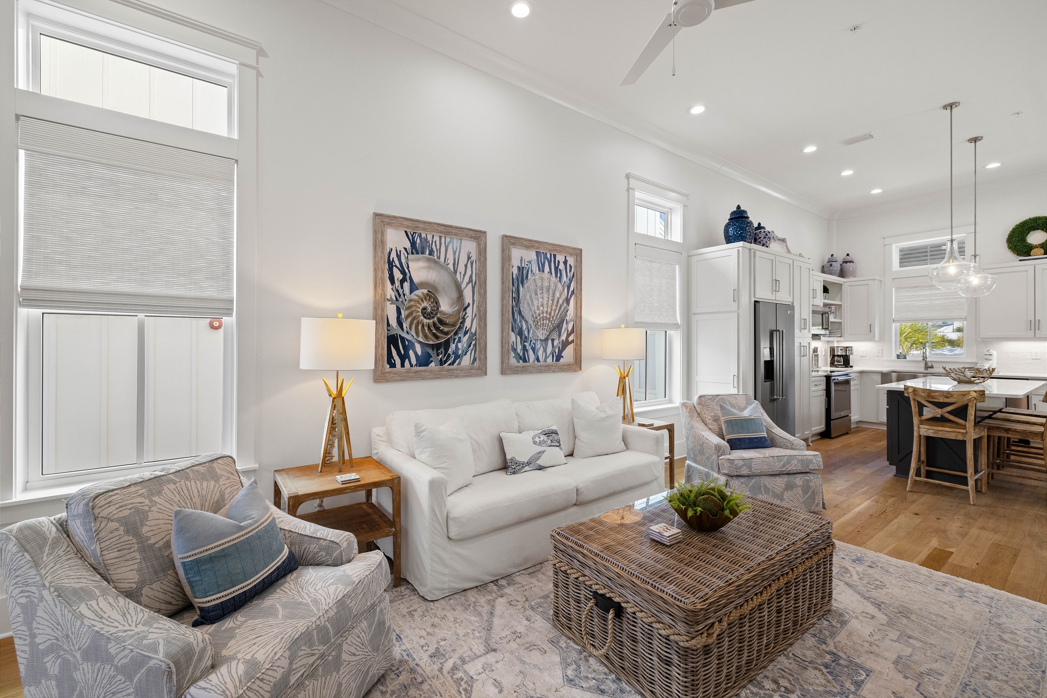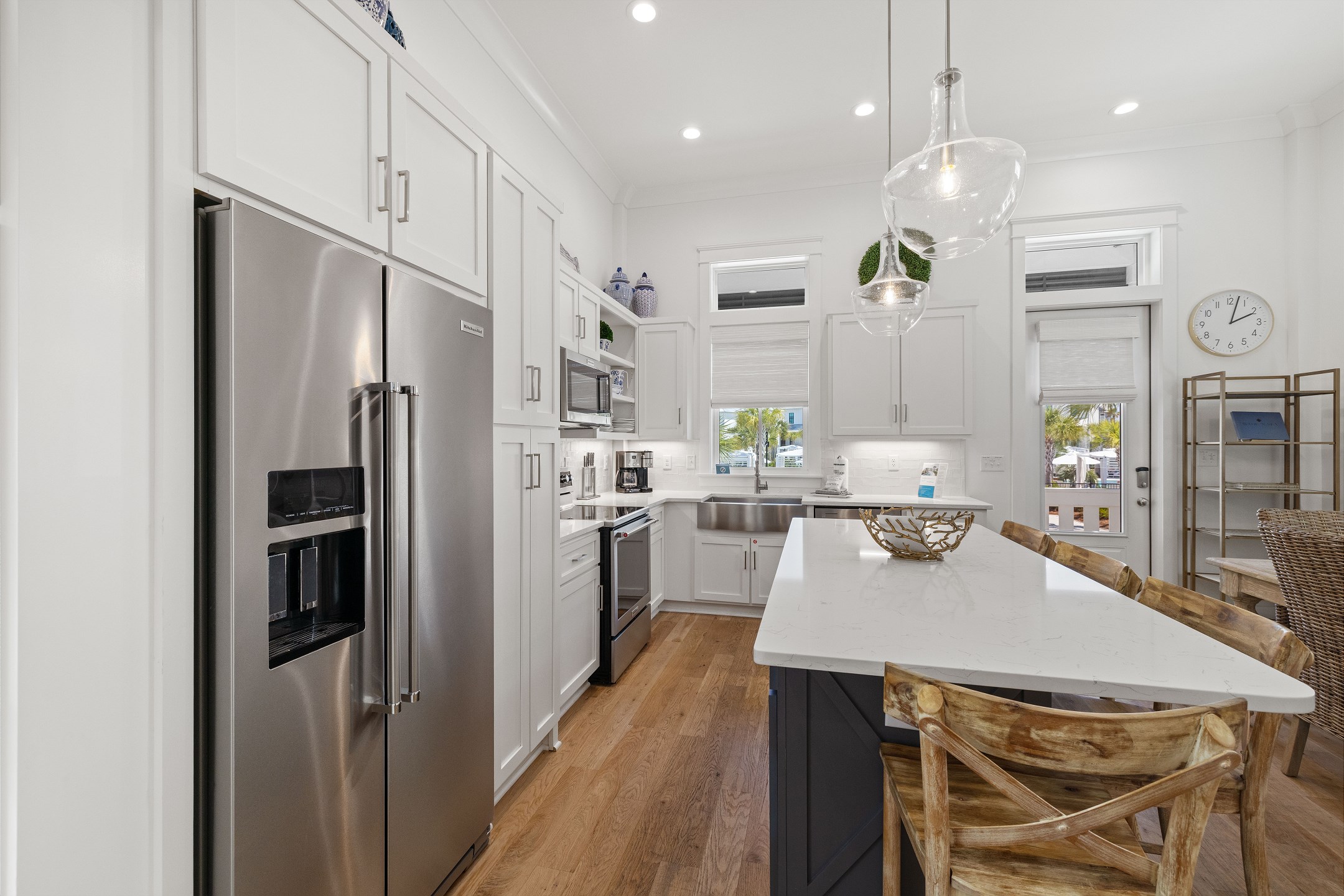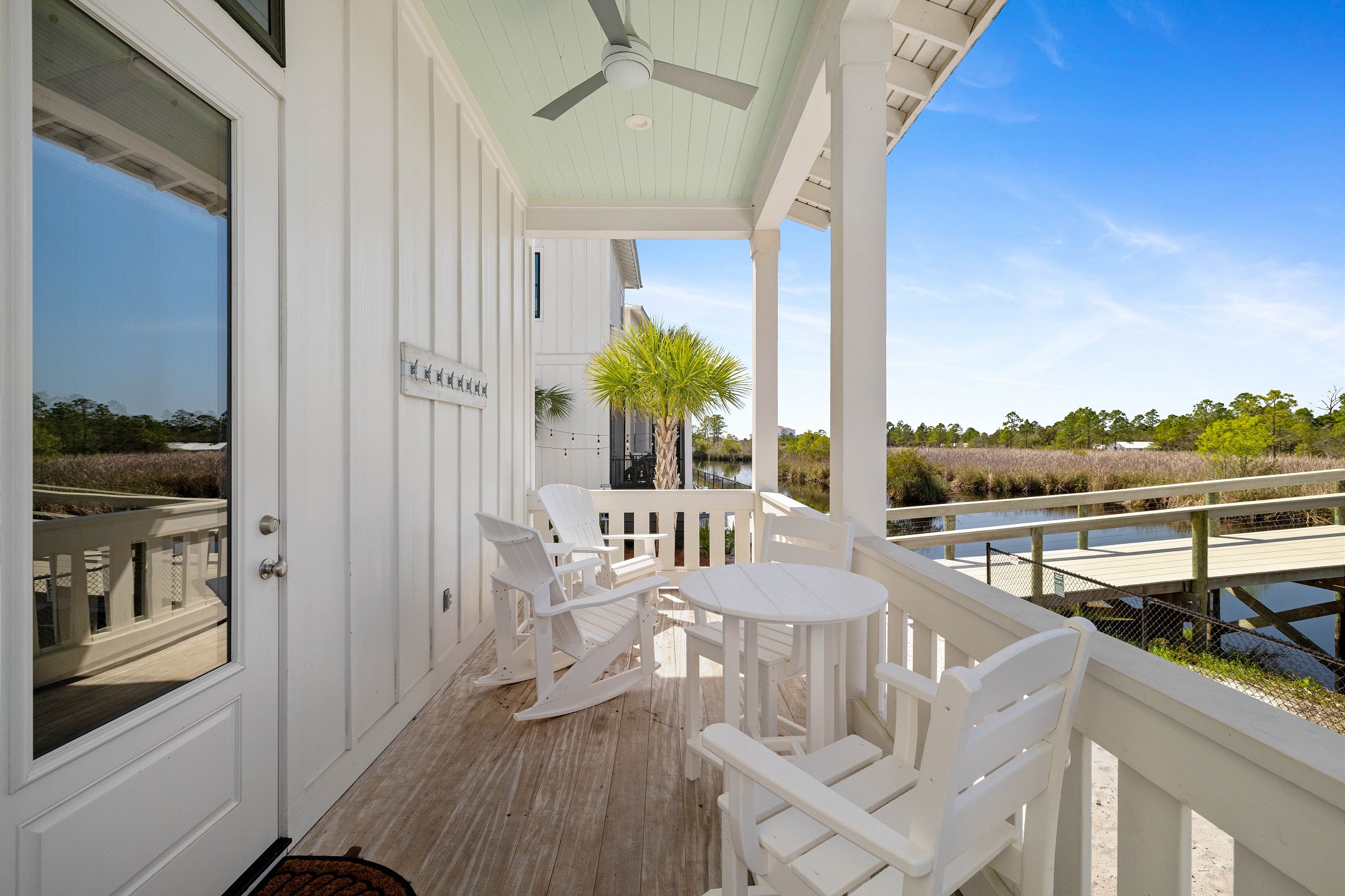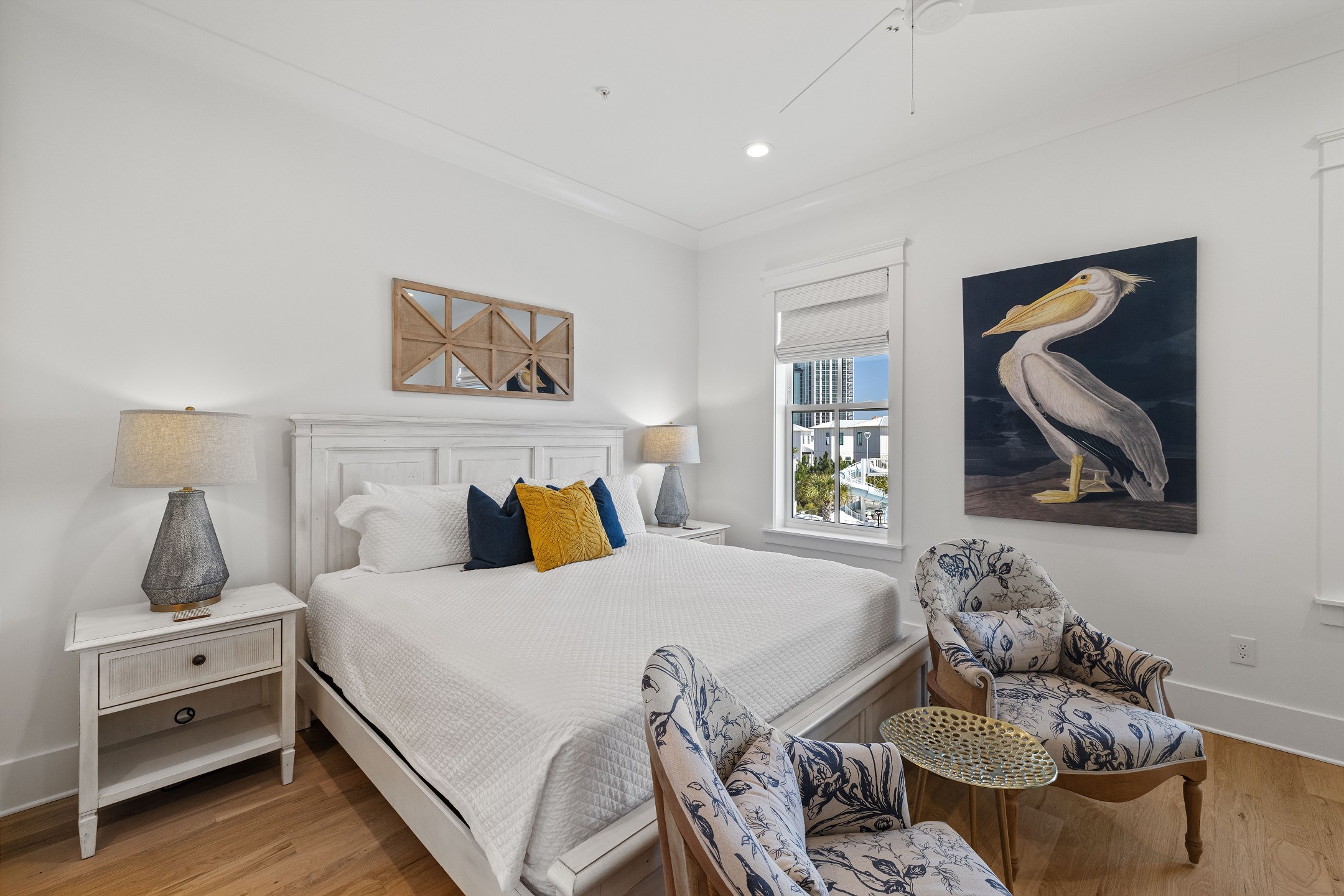 Wade 'n Sea is thoughtfully designed for comfort and sophistication. The cottage features contactless entry, pine wood and tile flooring, custom cabinets, solid stone countertops, high ceilings, and elegant crown molding. Stay connected with wireless WiFi access throughout the home.