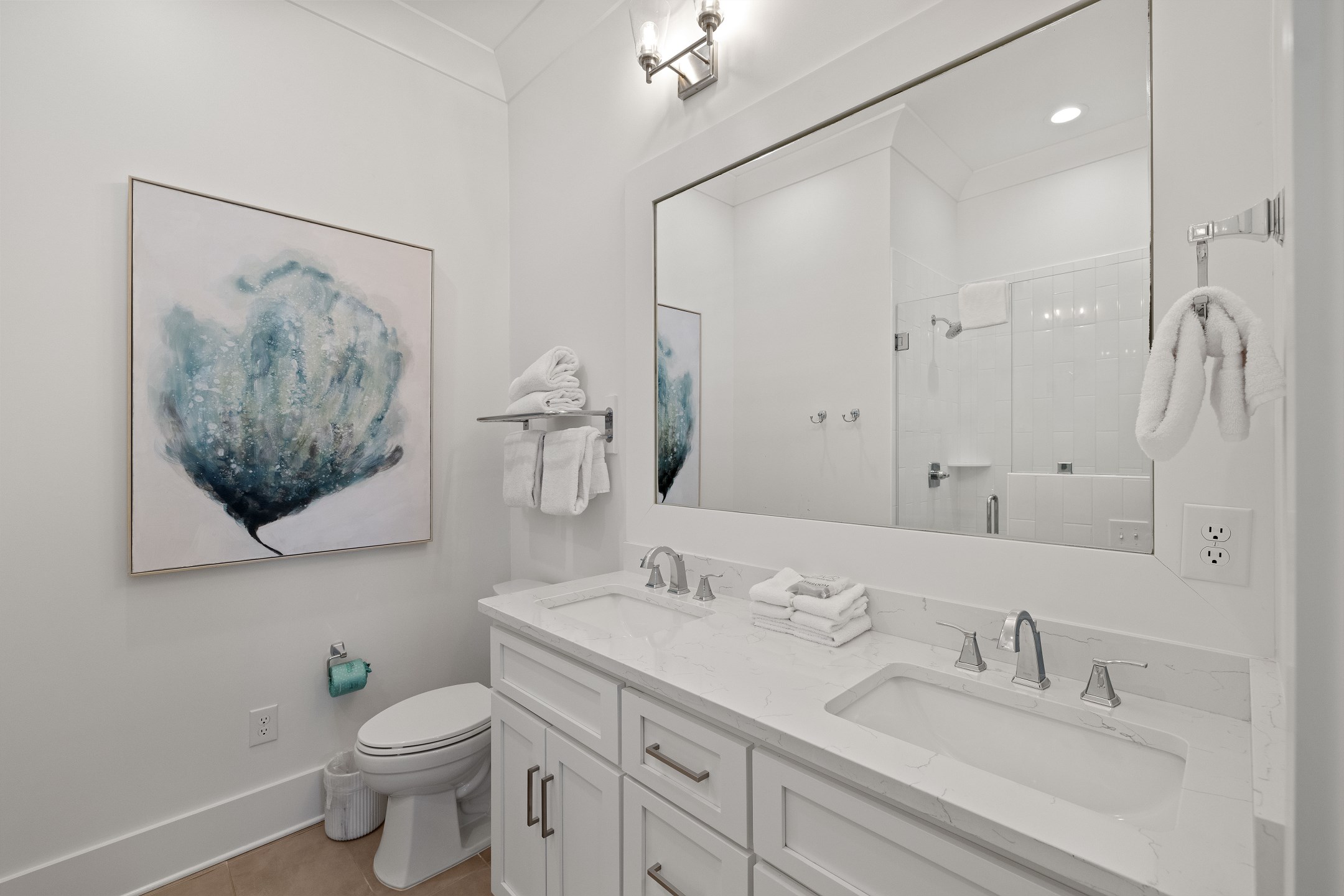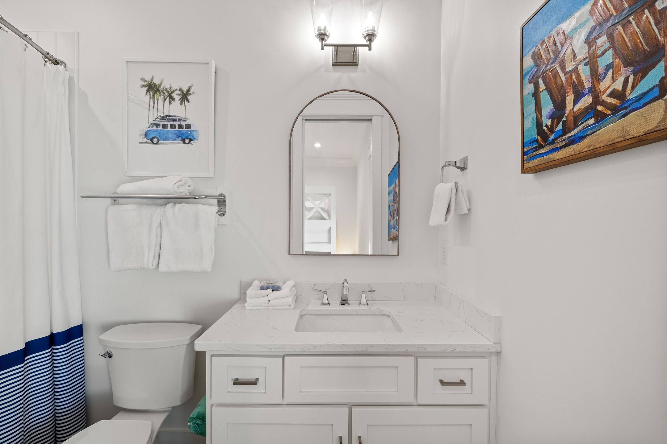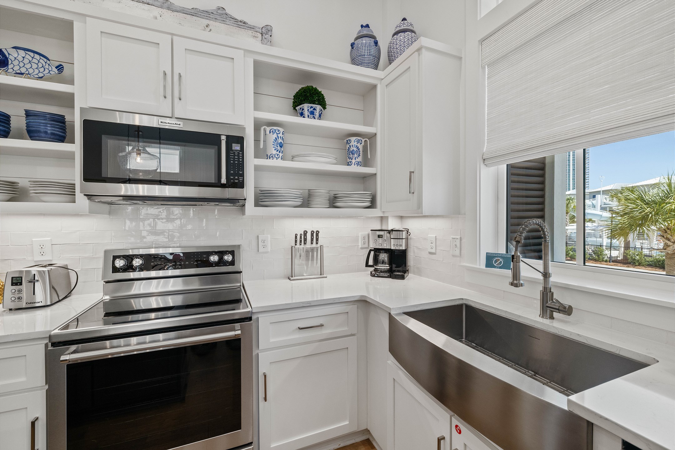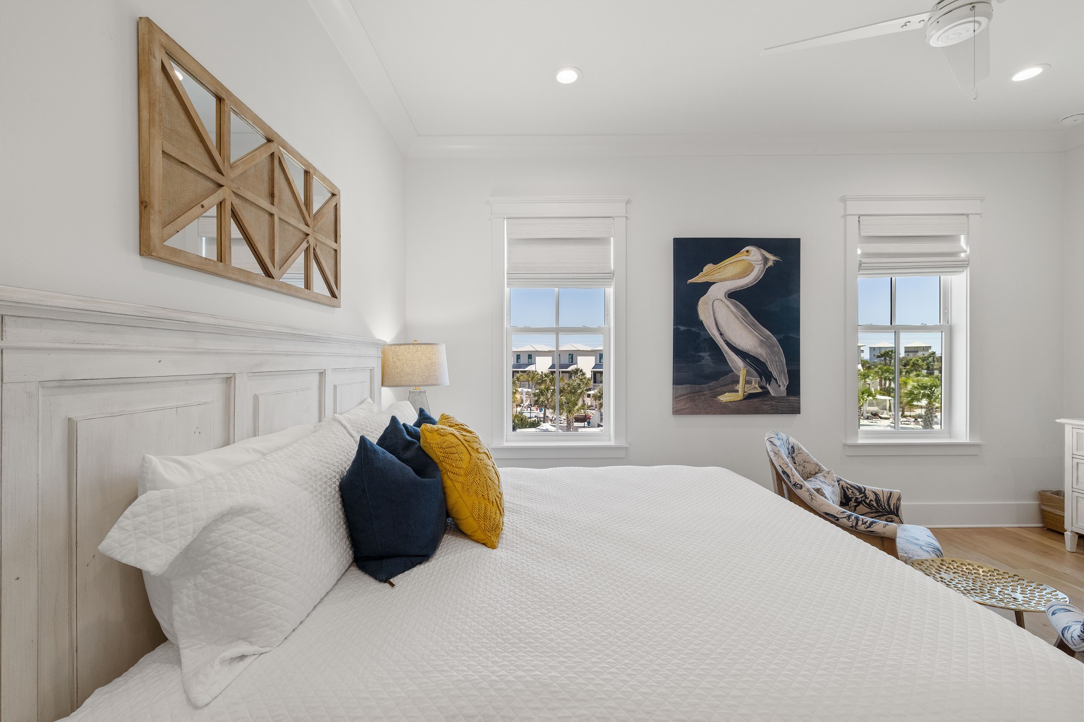 Wade 'n Sea is thoughtfully designed for comfort and sophistication. The cottage features contactless entry, pine wood and tile flooring, custom cabinets, solid stone countertops, high ceilings, and elegant crown molding. Stay connected with wireless WiFi access throughout the home.