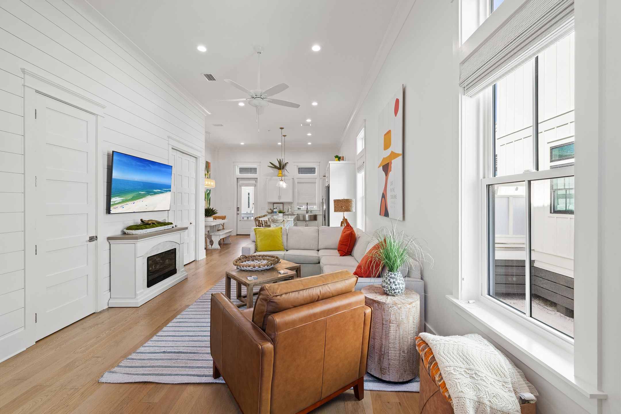 Sweet Home Alabama comfortably sleeps 11 guests, featuring a King bed with a Twin trundle in the Primary bedroom, a custom-built Queen-over-Queen bunk bed, Twin-over-Twin bunk, and a sleeper sofa in the den. The built-in Twin bunk beds each have their own TVs. Each room in the cottage is equipped with large smart TVs with streaming apps, ready for your personalized entertainment experience. Please note that streaming accounts are not provided, so you are welcome to log in with your own.