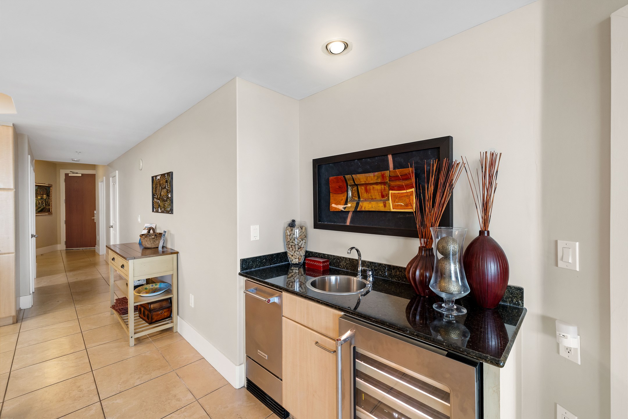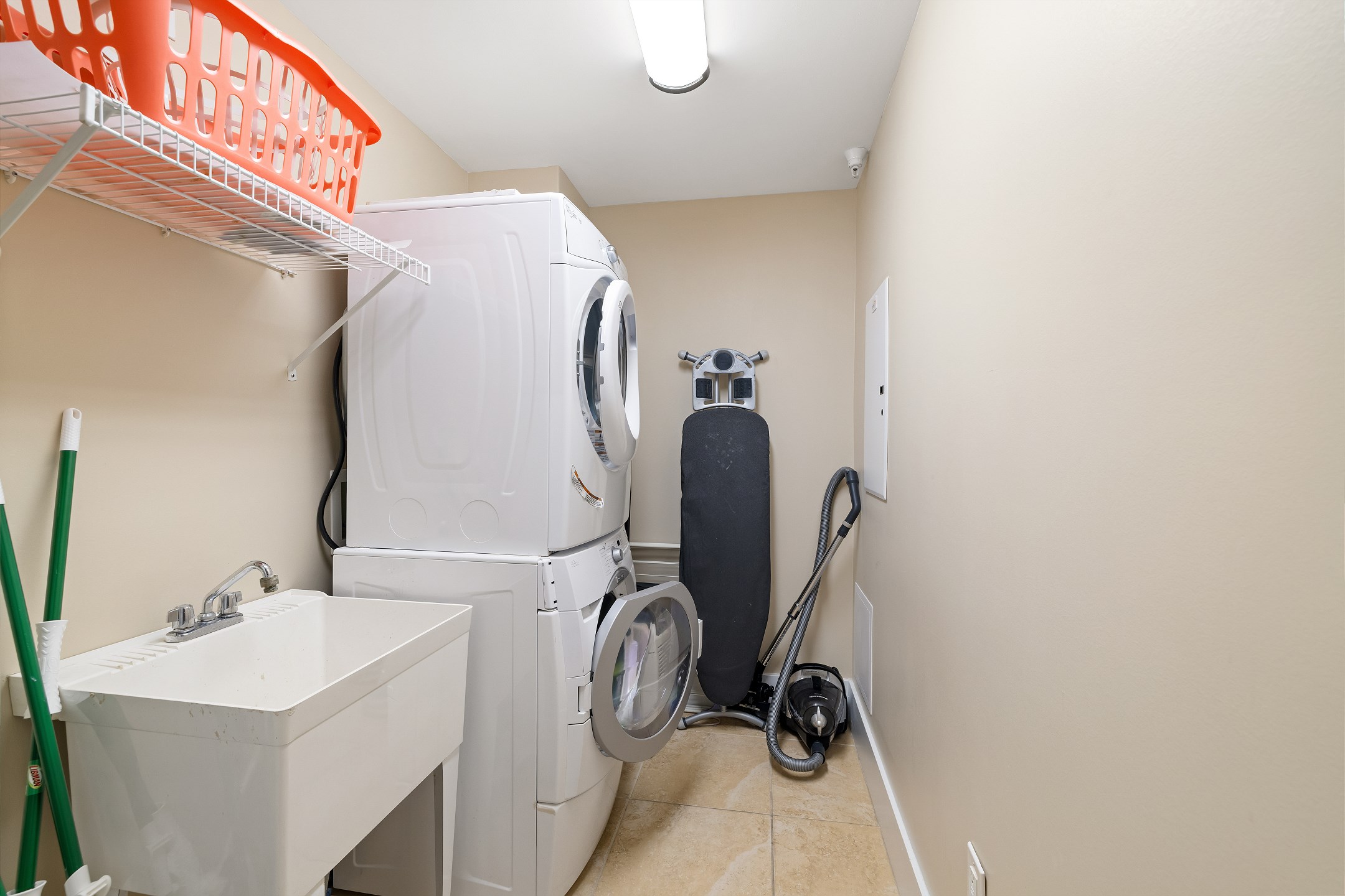 For added convenience, the unit includes a laundry room with a full-size washer and dryer.