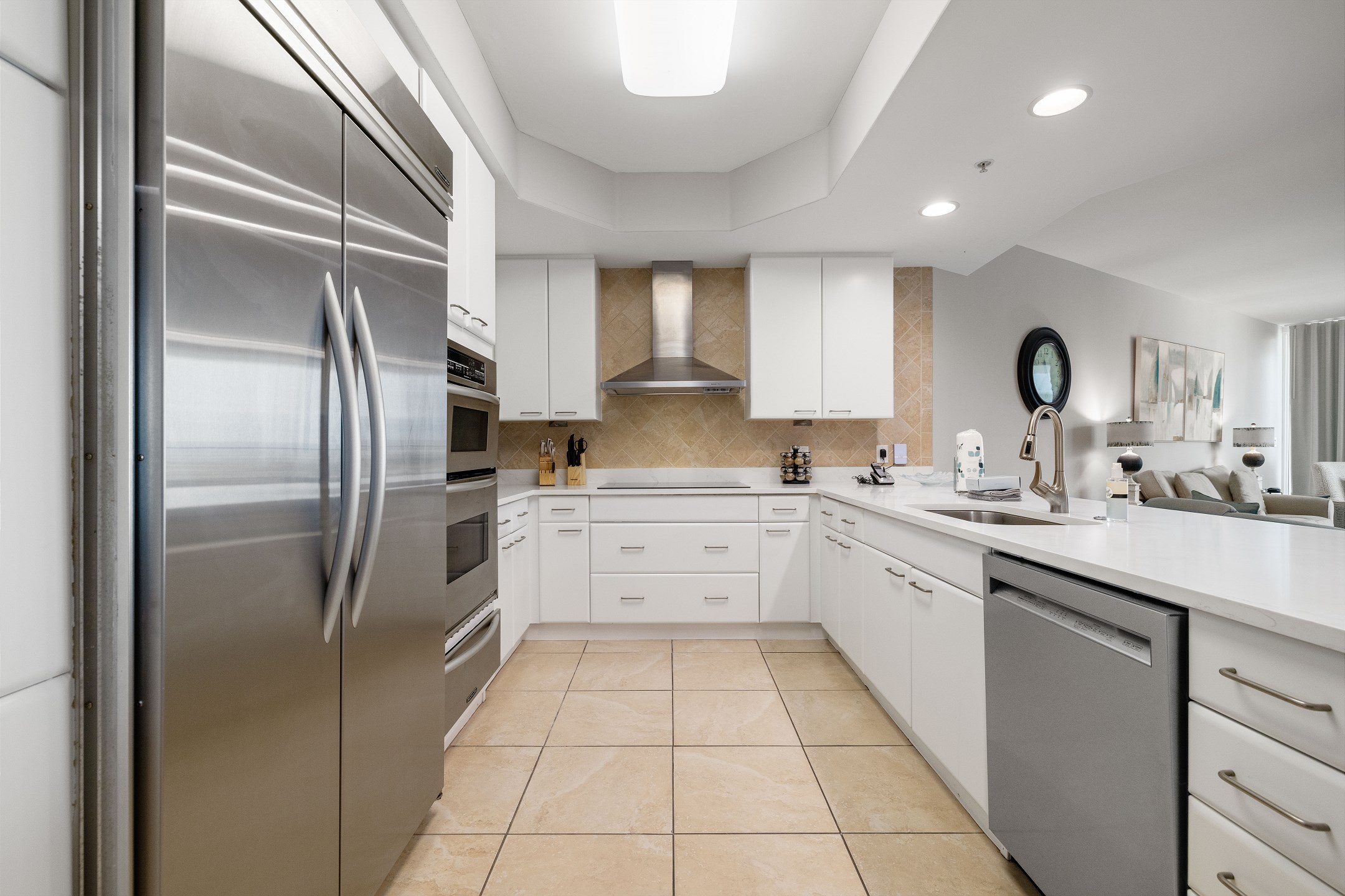 Upon entering the Primary bedroom, you'll be greeted by a luxurious King bed, ensuring restful nights. The room is complete with a private bath, jetted tub, tile shower, and a flat-screen TV, creating a personal haven of relaxation. The second bedroom offers equal comfort with a King bed and a flat-screen TV, and access to a hall bath with a Jacuzzi tub and shower combo.