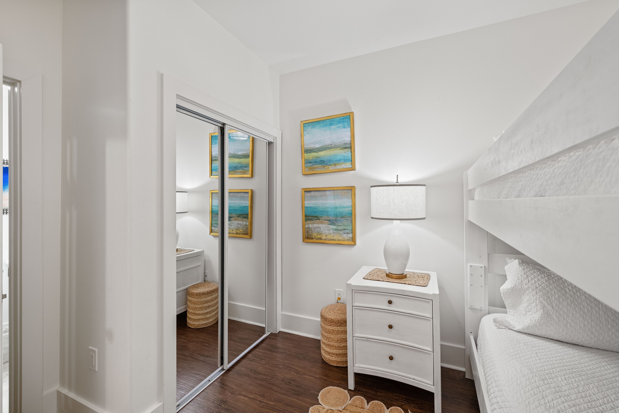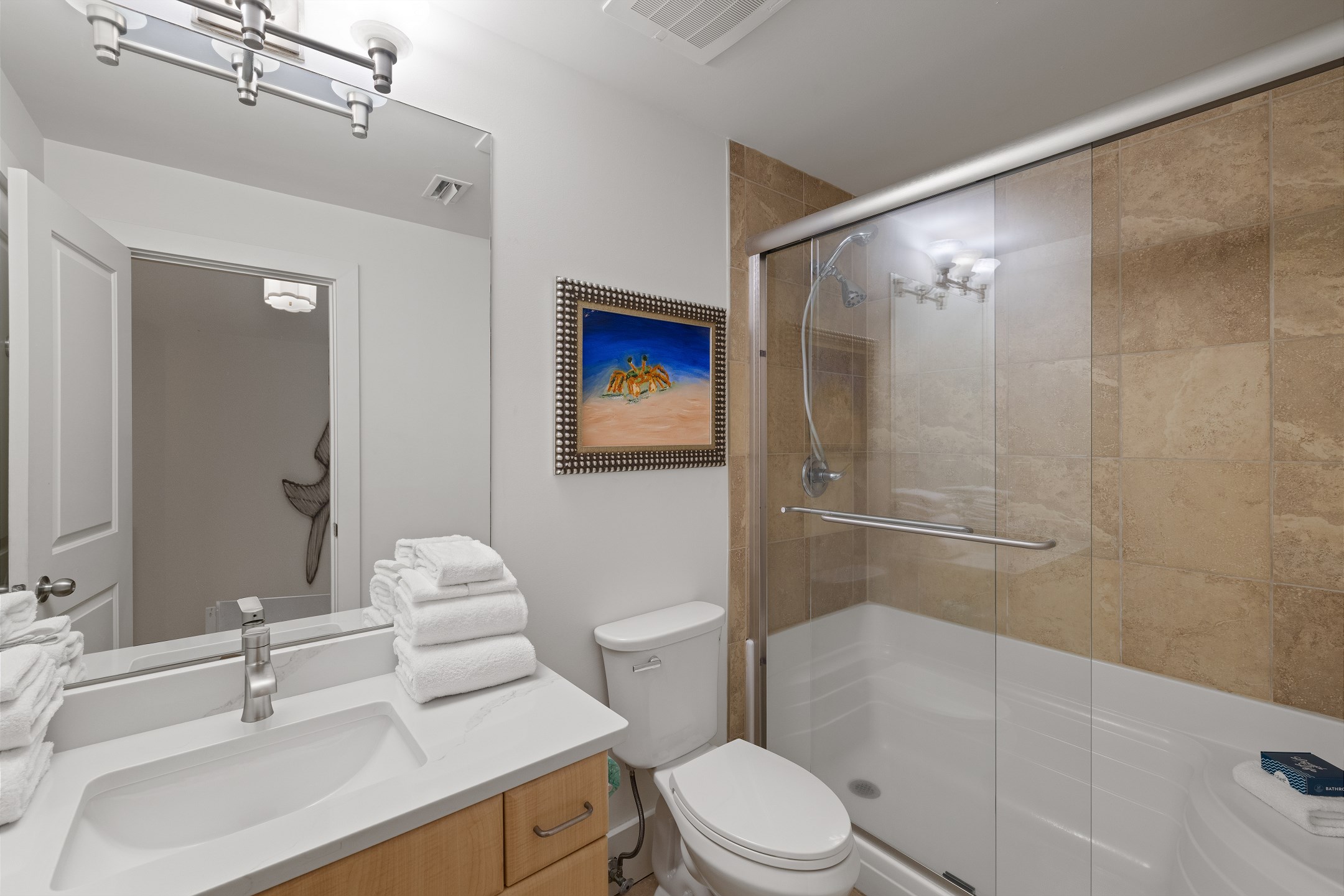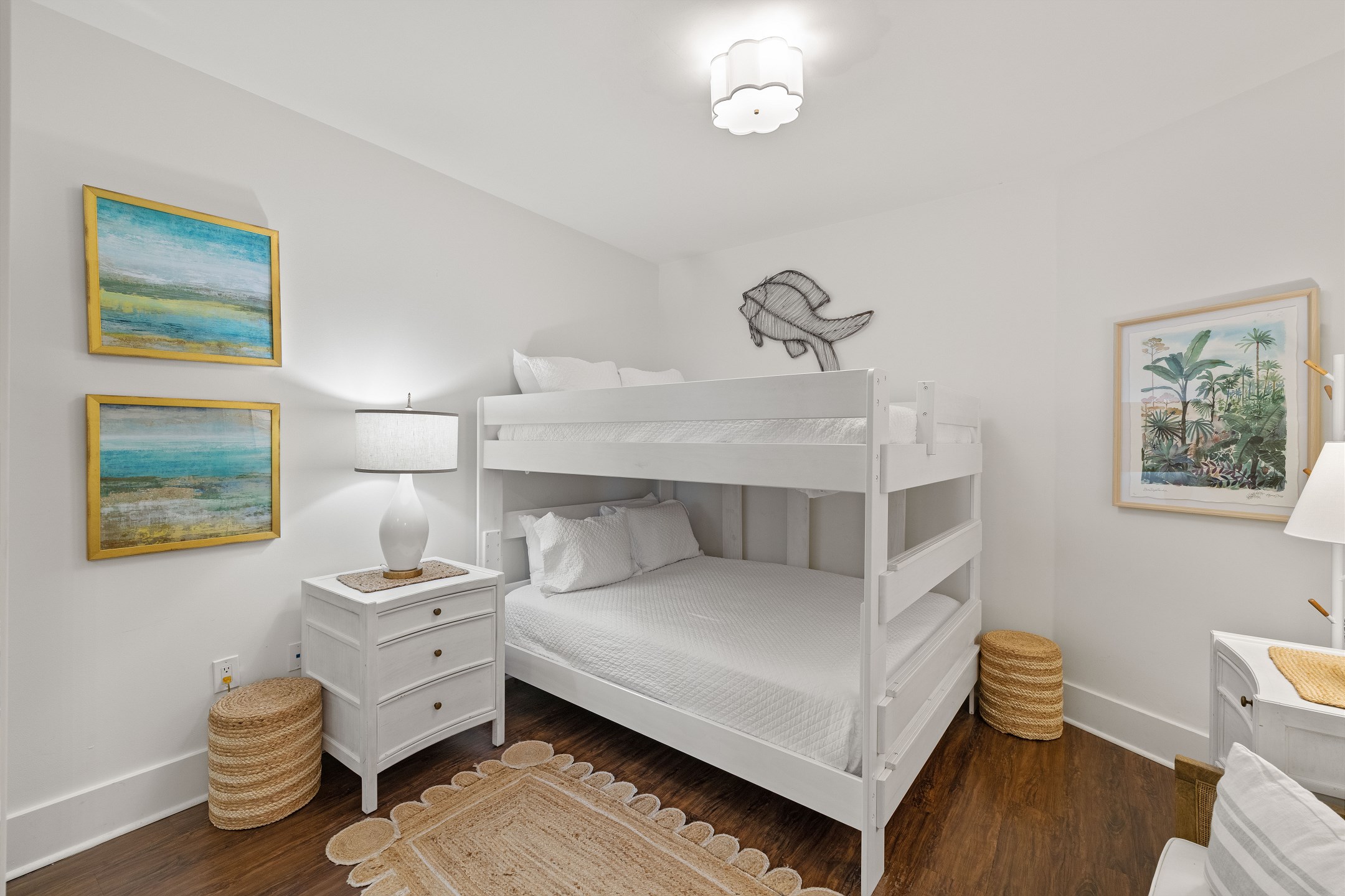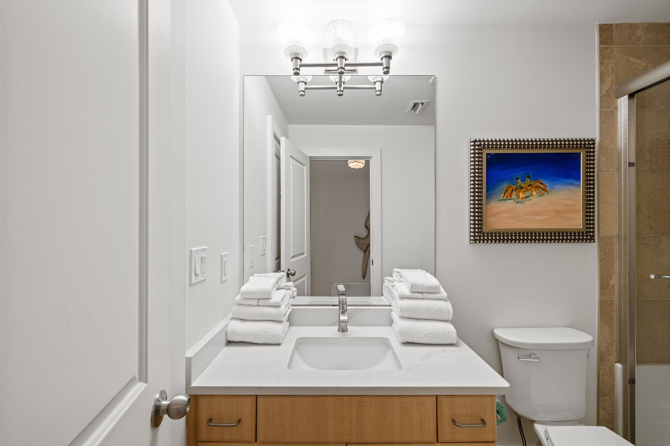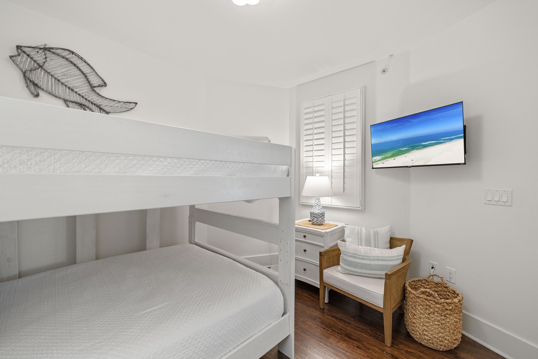 The Primary suite is a haven of luxury, featuring a King bed, a flatscreen TV, and direct balcony access. The suite's private bath includes a Jacuzzi tub, walk-in shower, and a large walk-in closet, adding an extra touch of comfort to your stay. The second bedroom offers a King bed, a flatscreen TV, and easy access to the hall bath with a walk-in shower. The third bedroom, ideal for accommodating additional guests or children, features a Queen bed, a full-size bed, and a flat-screen TV. With accommodations for up to 8 people, this unit is ideal for family vacations or group getaways.