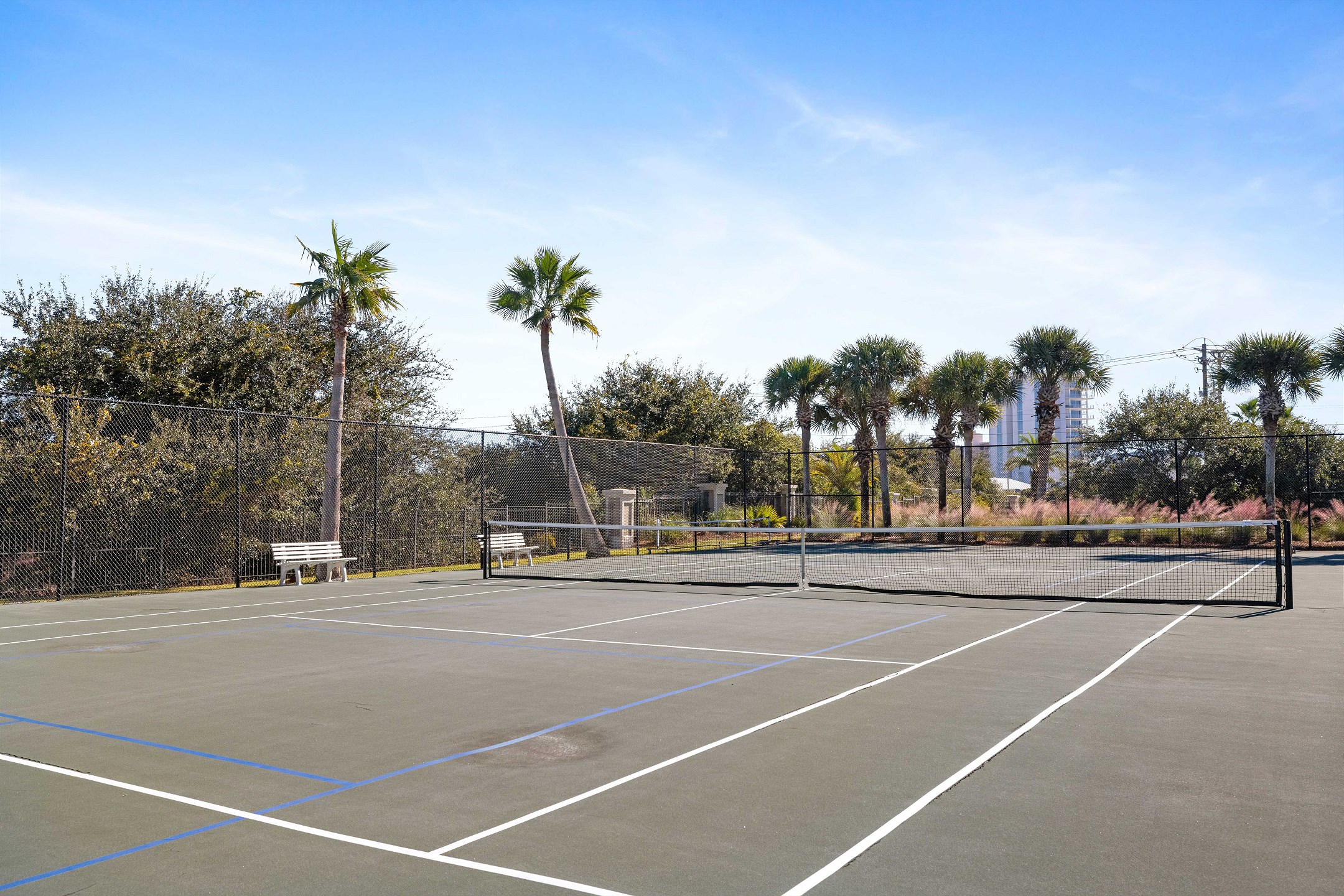 Florencia stands out as more than just a condo complex—it's a Mediterranean-style gated community where an array of on-site amenities await to enhance your stay. Tennis enthusiasts will appreciate the well-maintained tennis courts, offering both fun and a way to stay active. For relaxation and rejuvenation, the spa is a perfect retreat, while the fitness center caters to those looking to maintain their exercise routine. The complex boasts an indoor heated pool for cooler days and an outdoor pool for basking in the sunshine. The steam room and sauna provide additional options for unwinding after a busy day. A grilling area is also available for those who enjoy outdoor cooking and dining.