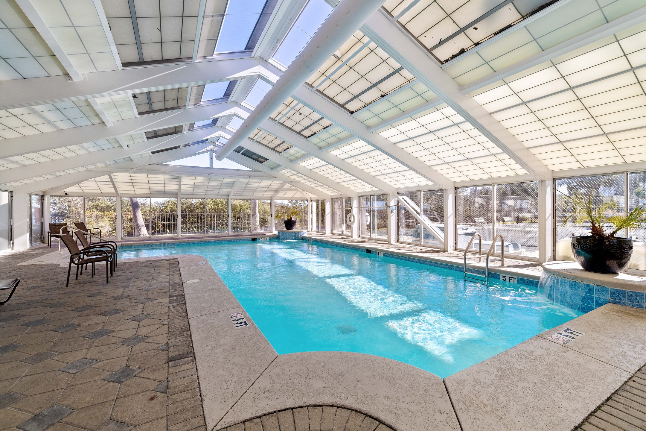 Florencia stands out as more than just a condo complex—it's a Mediterranean-style gated community where an array of on-site amenities await to enhance your stay. Tennis enthusiasts will appreciate the well-maintained tennis courts, offering both fun and a way to stay active. For relaxation and rejuvenation, the spa is a perfect retreat, while the fitness center caters to those looking to maintain their exercise routine. The complex boasts both an indoor heated pool for cooler days and an outdoor pool for basking in the sunshine. The steam room and sauna provide additional options for unwinding after a busy day. A grilling area is also available for those who enjoy outdoor cooking and dining.