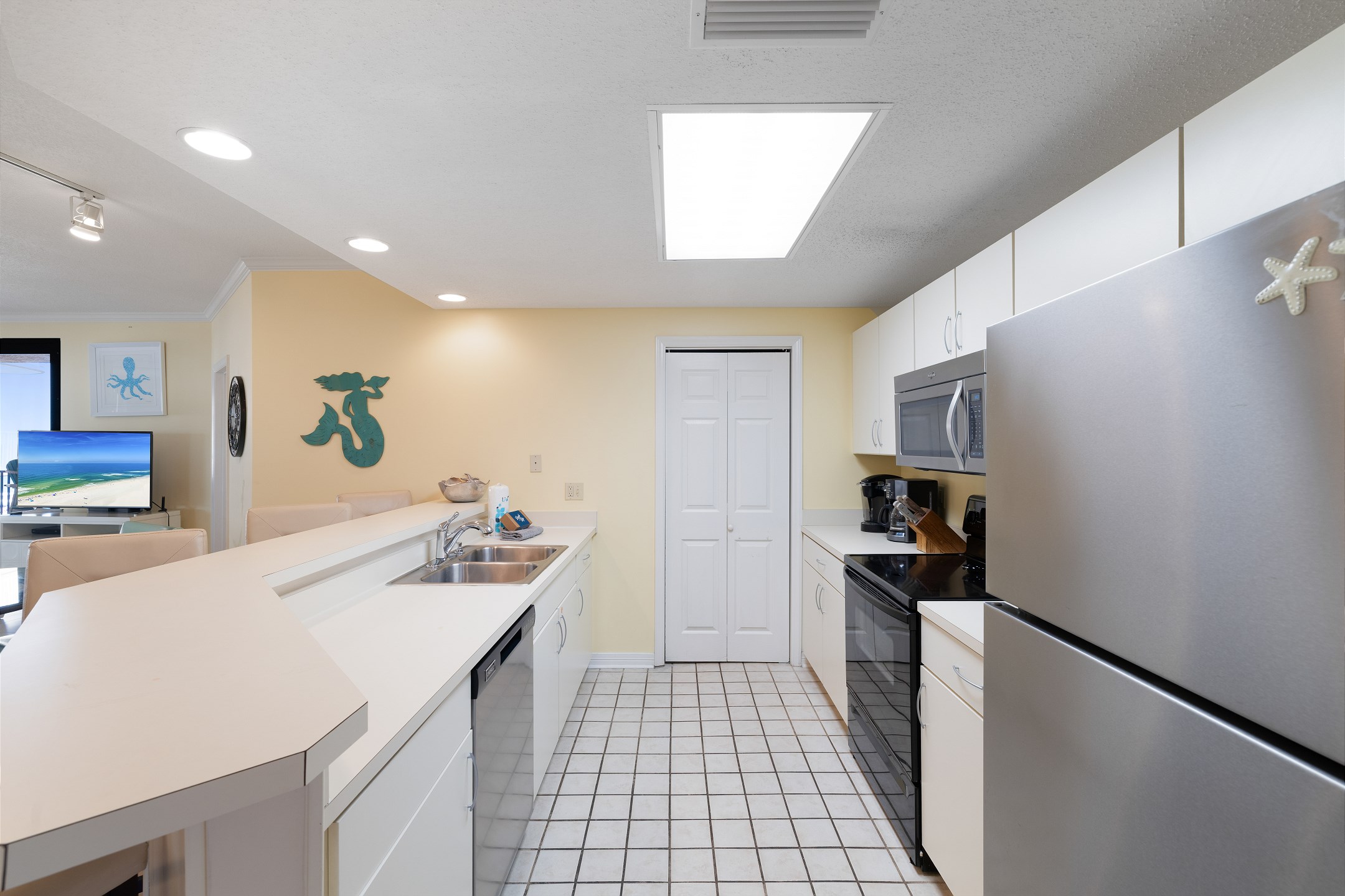 The condo's kitchen is fully equipped for all your culinary needs, whether you're whipping up a quick breakfast or preparing a family dinner. The unit also features tile floors throughout and complimentary WiFi to keep you connected. Accommodating up to 8 guests, Four Seasons 401E is perfect for families or small groups seeking a peaceful beach getaway.