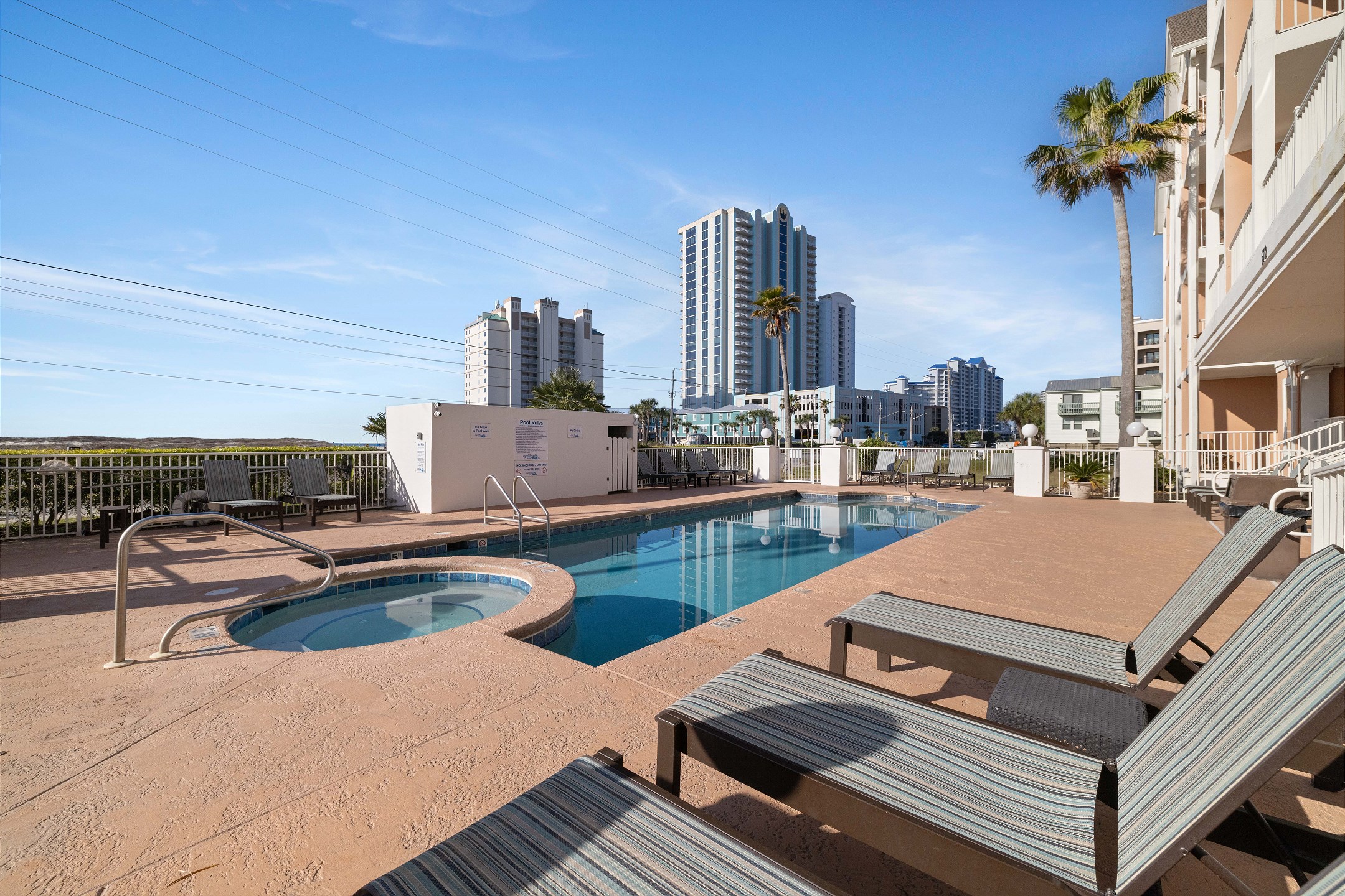 Grand Beach Resort offers a relaxing coastal experience with convenient amenities and a prime location. Guests can enjoy an outdoor pool and hot tub, perfect for unwinding after a day in the sun. The resort is also within walking distance to the Gulf State Park, providing easy access to beautiful trails, beaches, and outdoor recreation. Grand Beach Resort combines comfort, convenience, and coastal charm for the perfect Gulf Shores getaway.
