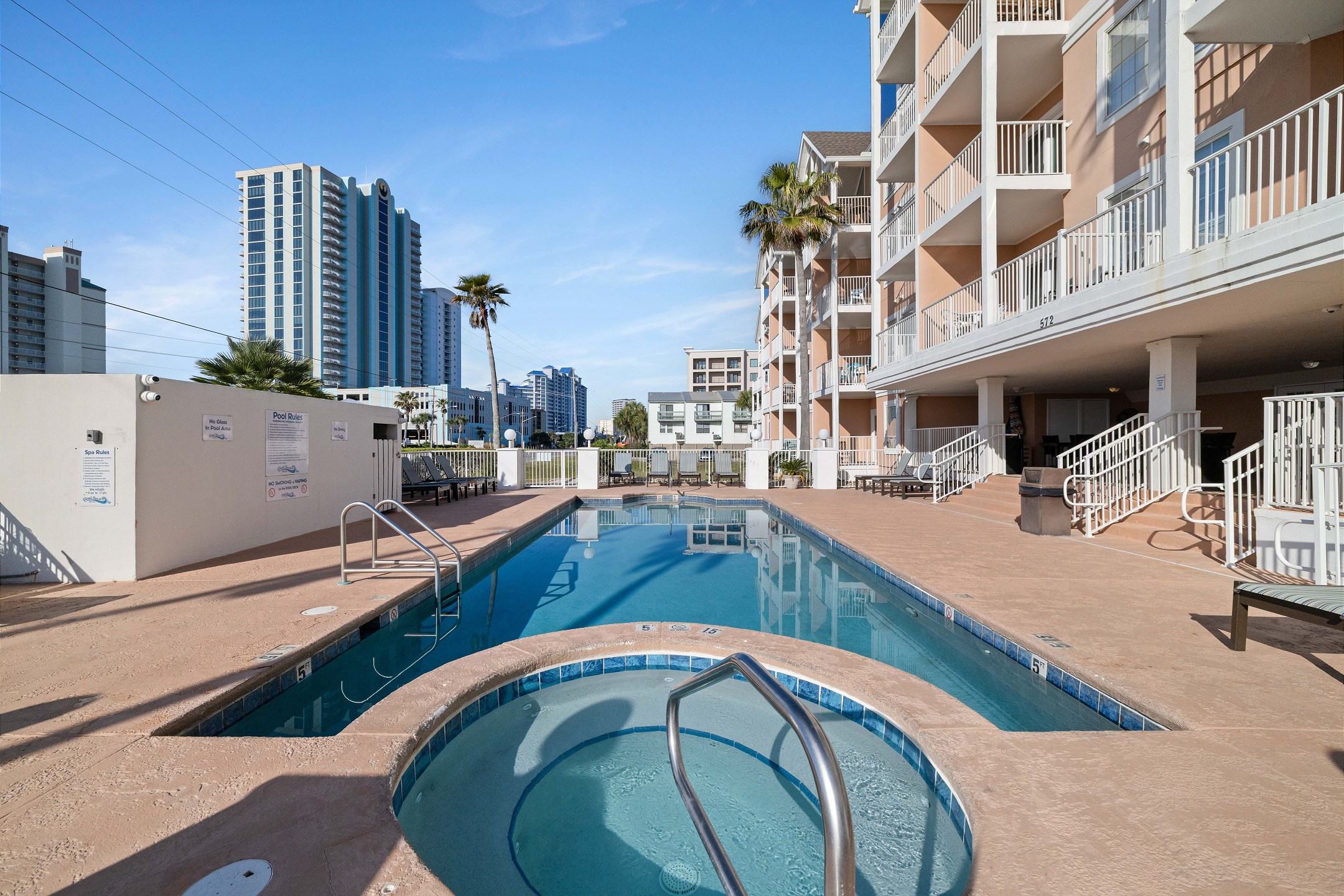 Grand Beach Resort offers a relaxing coastal experience with convenient amenities and a prime location. Guests can enjoy an outdoor pool and hot tub, perfect for unwinding after a day in the sun. The resort is also within walking distance to the Gulf State Park, providing easy access to beautiful trails, beaches, and outdoor recreation. Grand Beach Resort combines comfort, convenience, and coastal charm for the perfect Gulf Shores getaway.