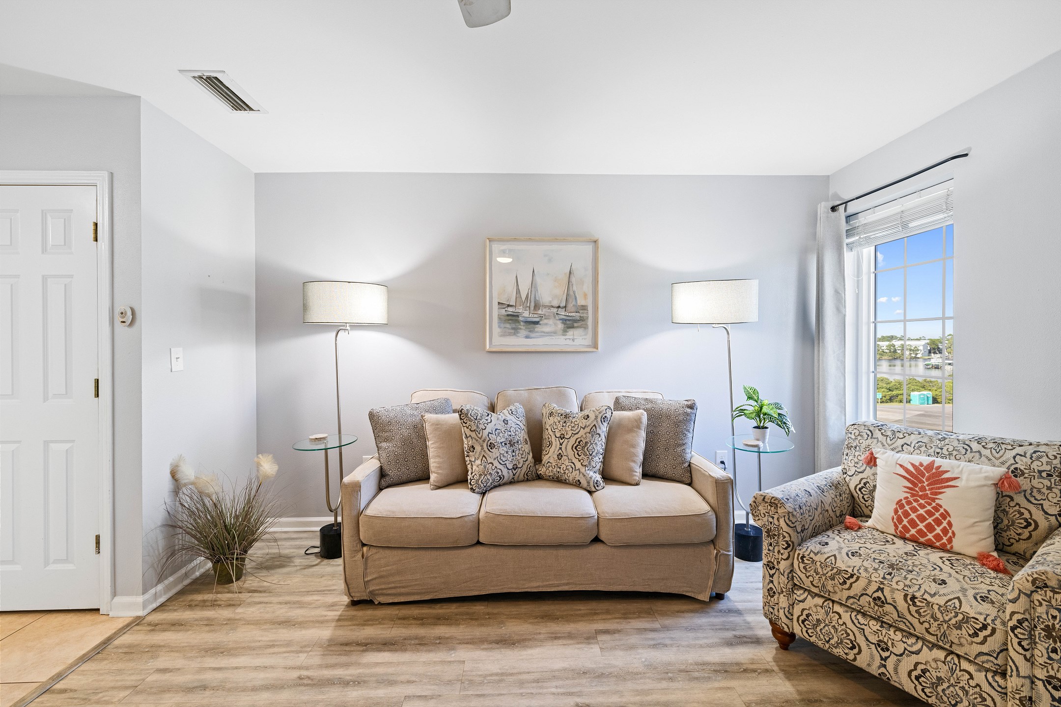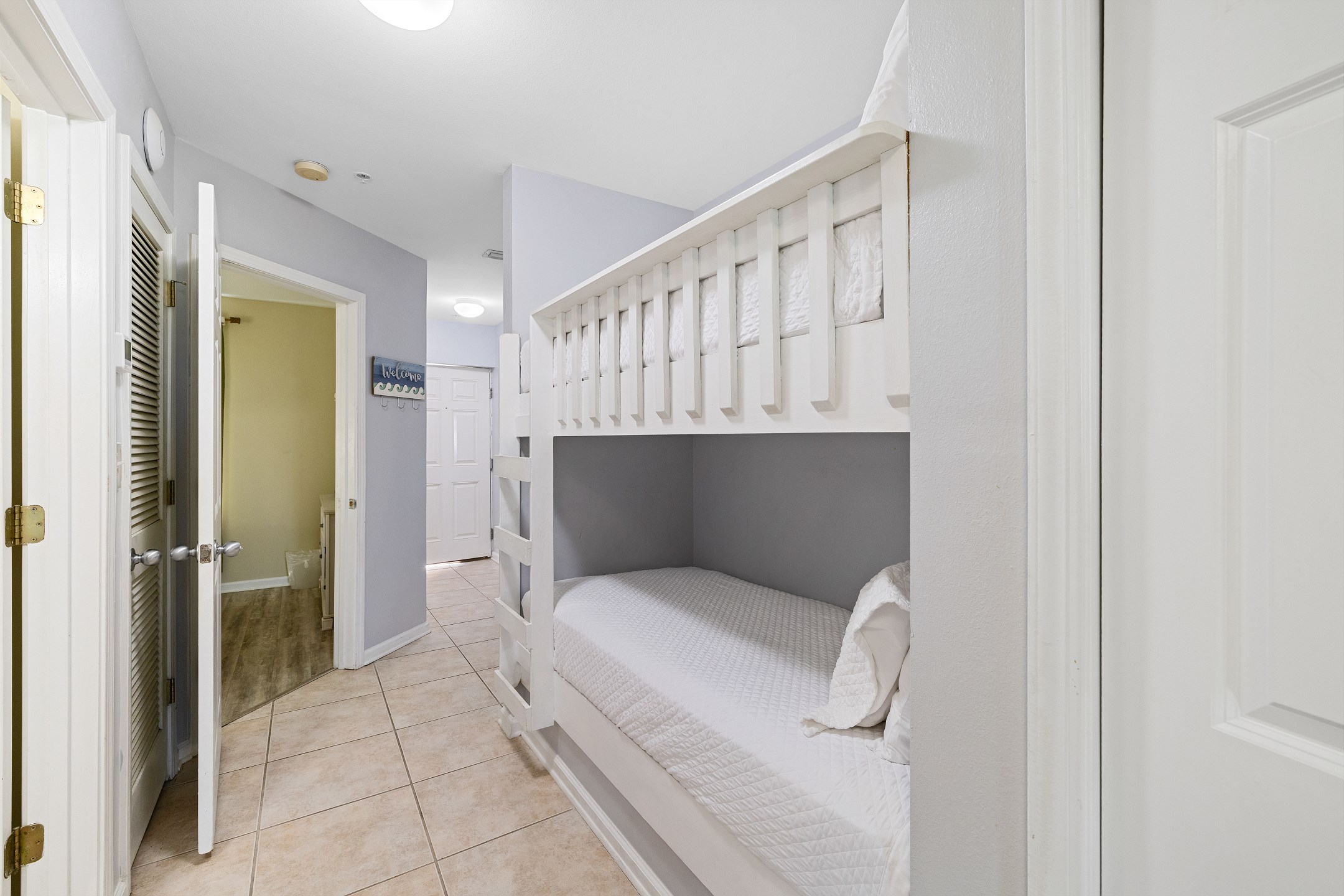 Inside, you will discover a thoughtfully furnished living space opening to the kitchen, which comes fully equipped to make meal preparation a breeze. Relax in the bedroom's king-size bed for restful nights or the hallway twin over twin bunk alcove, perfect for families or extra guests.
