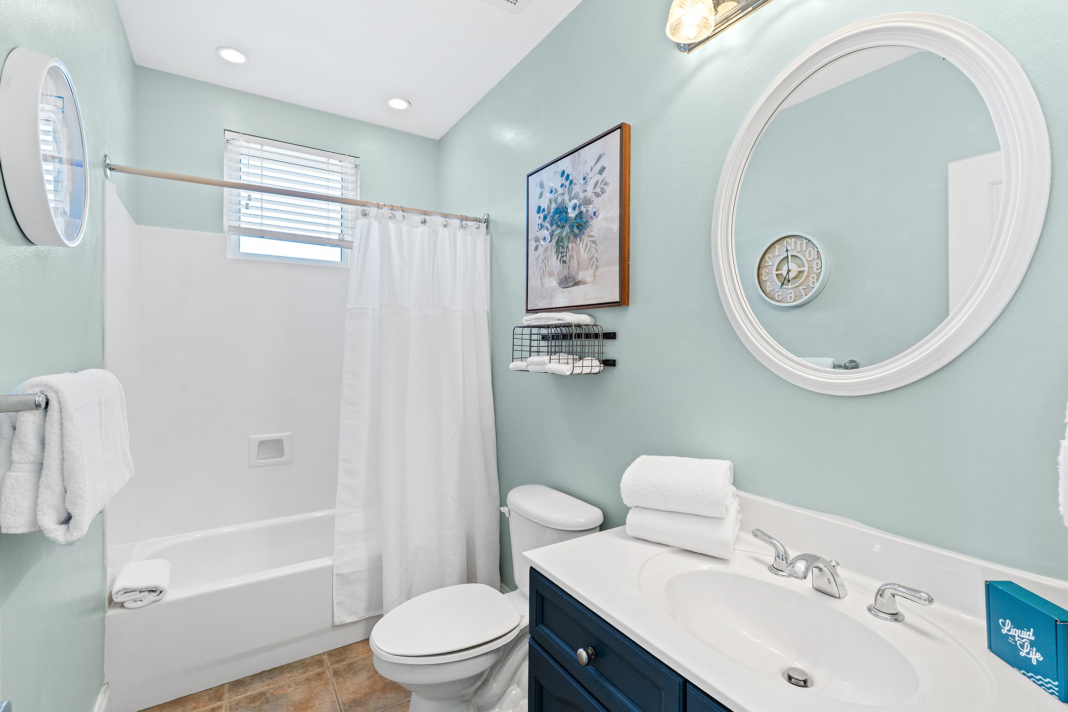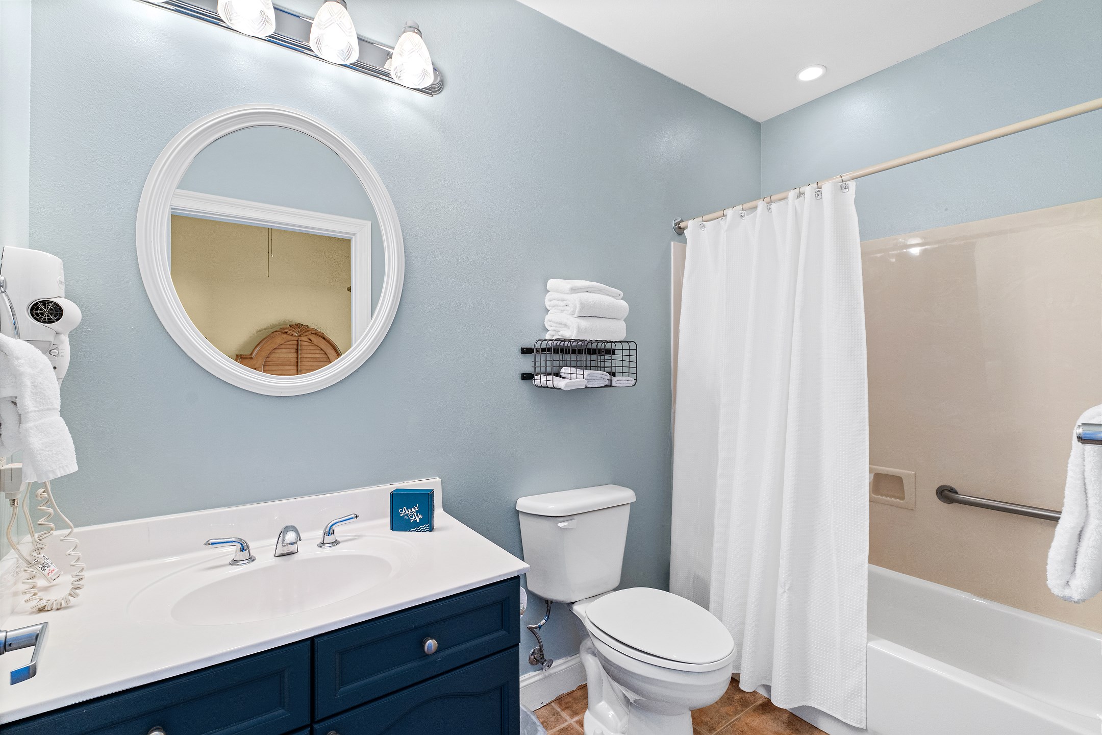 Additional conveniences include a sofa sleeper, a half bathroom, and a washer and dryer in the unit.