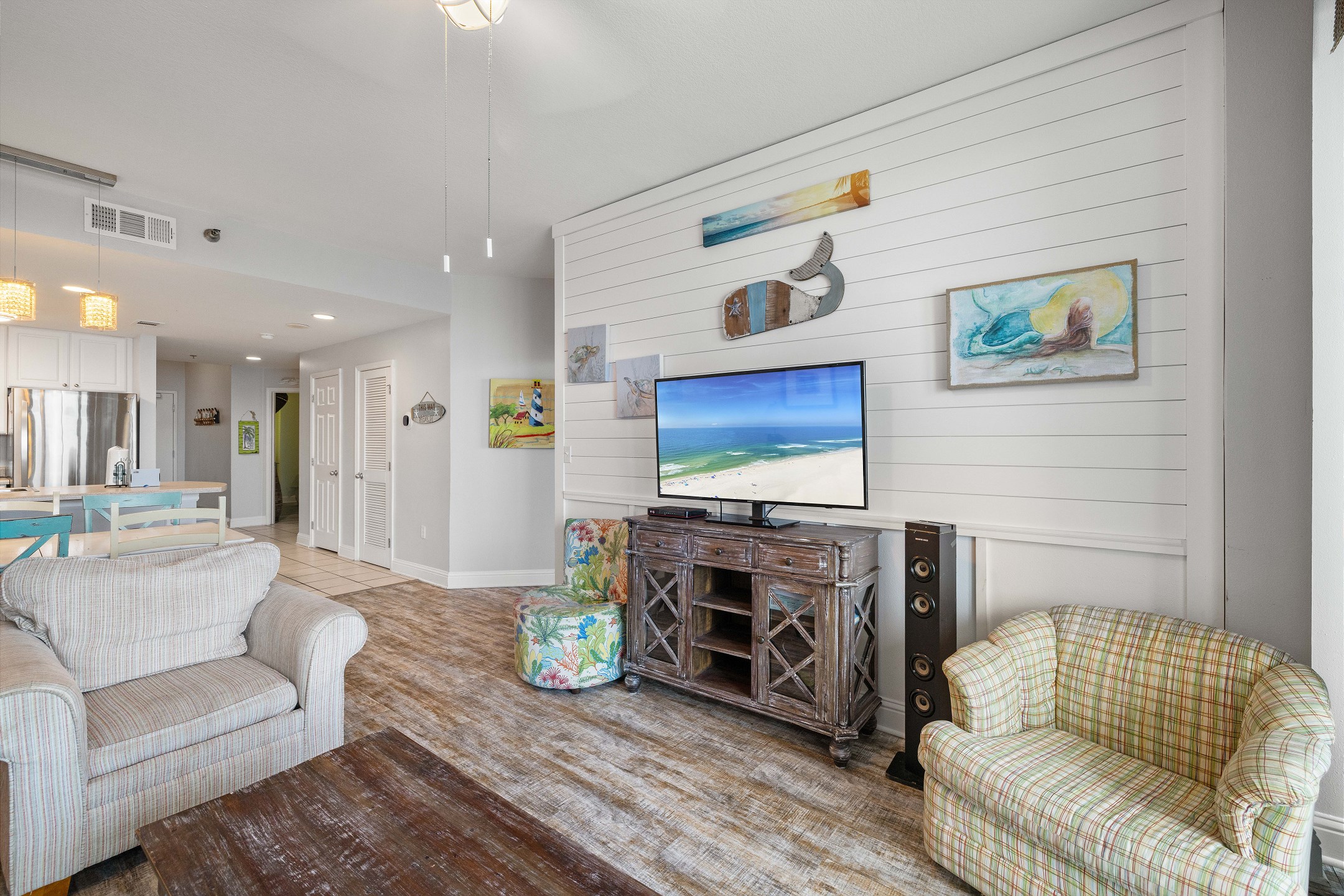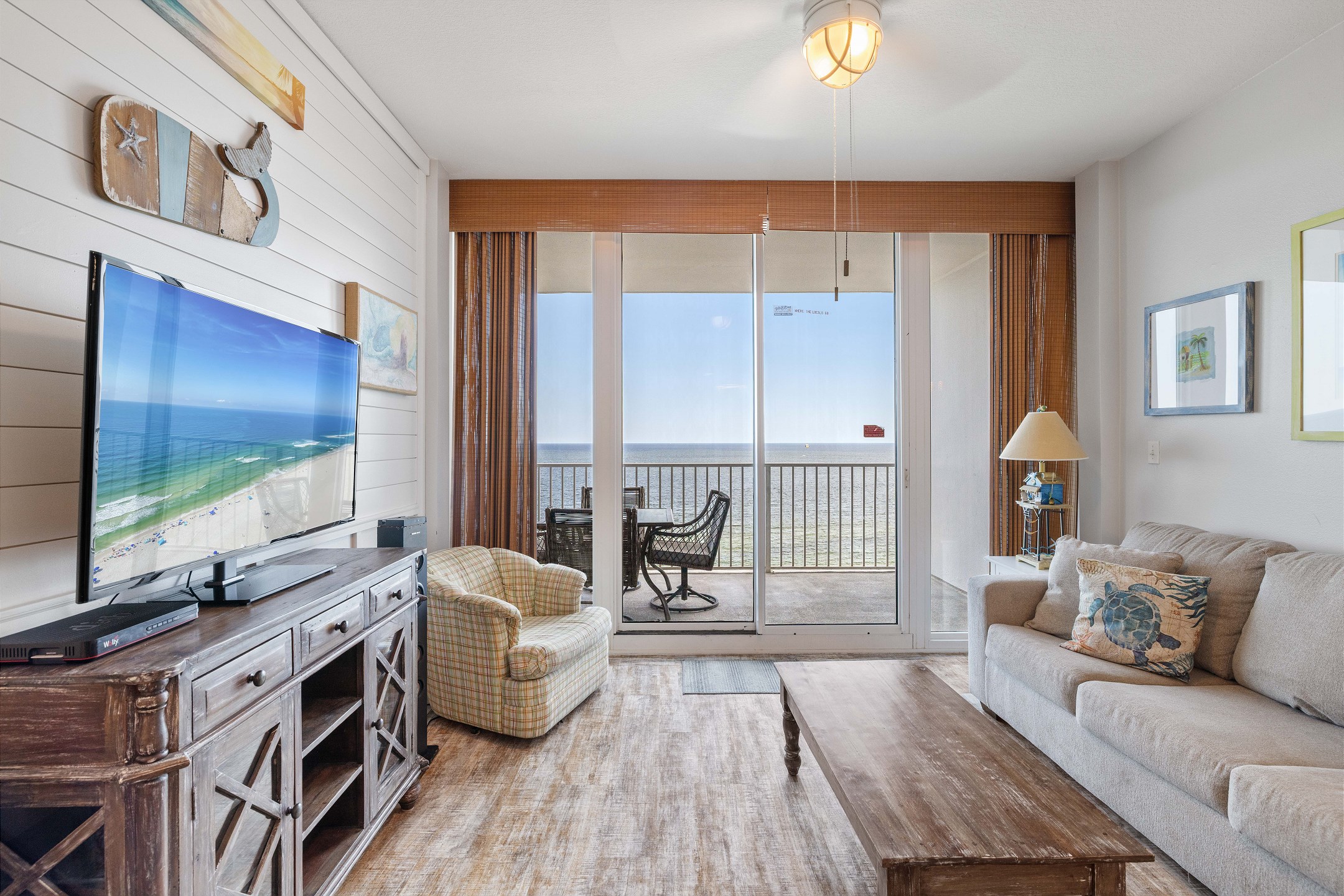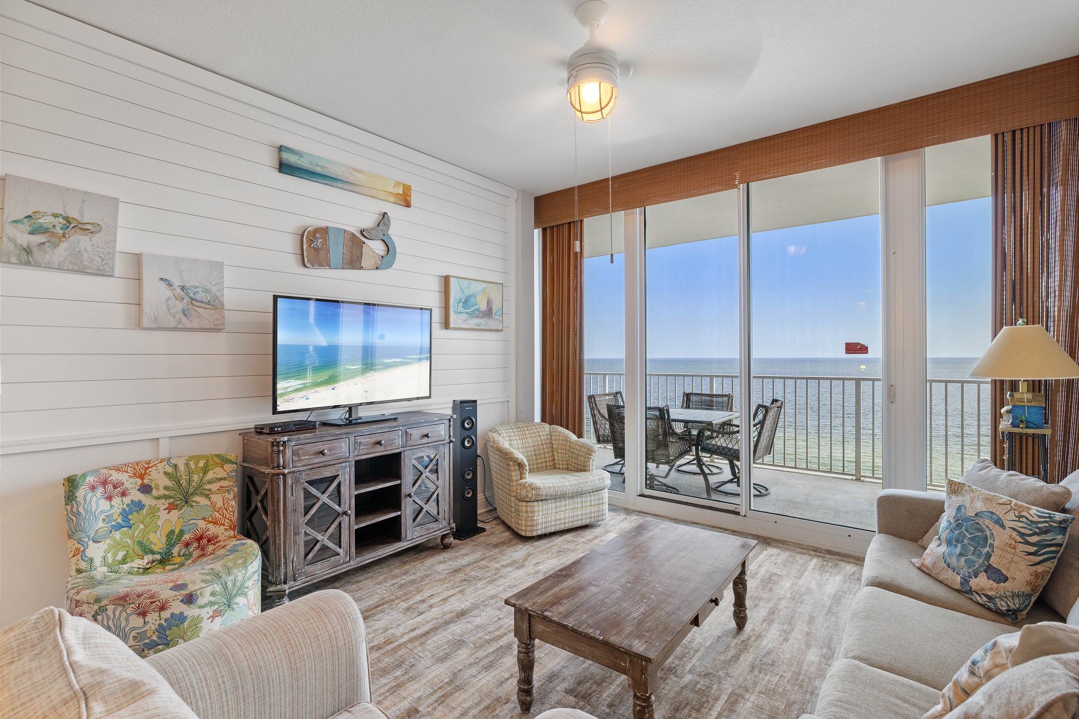 Upon entering, you're greeted by a beautifully appointed living area that opens onto a private balcony. Here, you can relish magnificent views of the Gulf, making it the perfect spot for morning coffee or evening relaxation. The balcony is accessible from both the living area and the Primary suite, ensuring a seamless connection with the serene beach atmosphere.