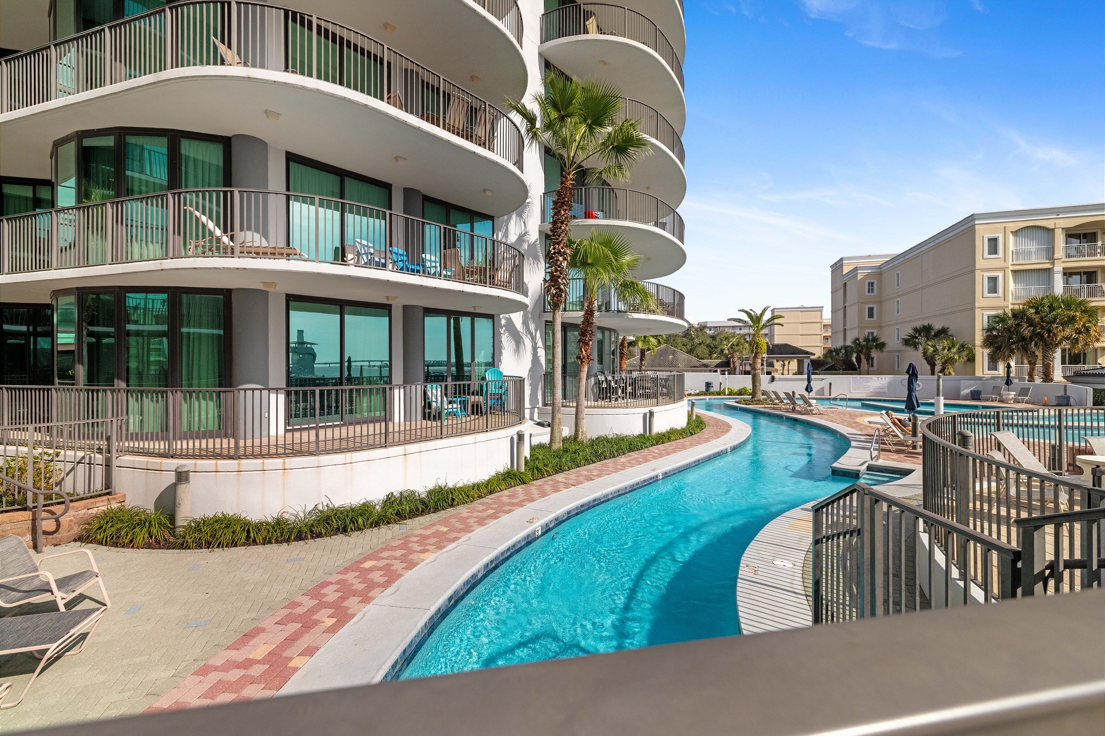 This property is so nice. We loved that we were able to park right on the level with our room. So no waiting on elevators. The weight room was right there, so my son and husband got to use it easily. The view was nice (though slightly blocked by a palm tree which is not the fault of the condo owner.) We LOVED the pool. The lazy river was EVERYTHING. Even though we are used to renting condos that are directly on the beach, it didnt take long to get to a beach that we have been too. The only negatives: We were told to go straight to our condo, but we later found out we were supposed to go straight to security to check in. The advertisement on vrbo showed a sliding board (which was part of the reason we chose the condo). It was removed a couple of years ago, but no one seemed to be able to tell us this (not the management company or security). The ad needs to be updated. Lastly, the listing says sleeps 6, but there is only bathroom access for those sleeping in the bedrooms. My 10yr old daughter and her friend would have to go through my 17yo sons room or our room. Overall, the negatives would not outweigh the positives! Great weekend!