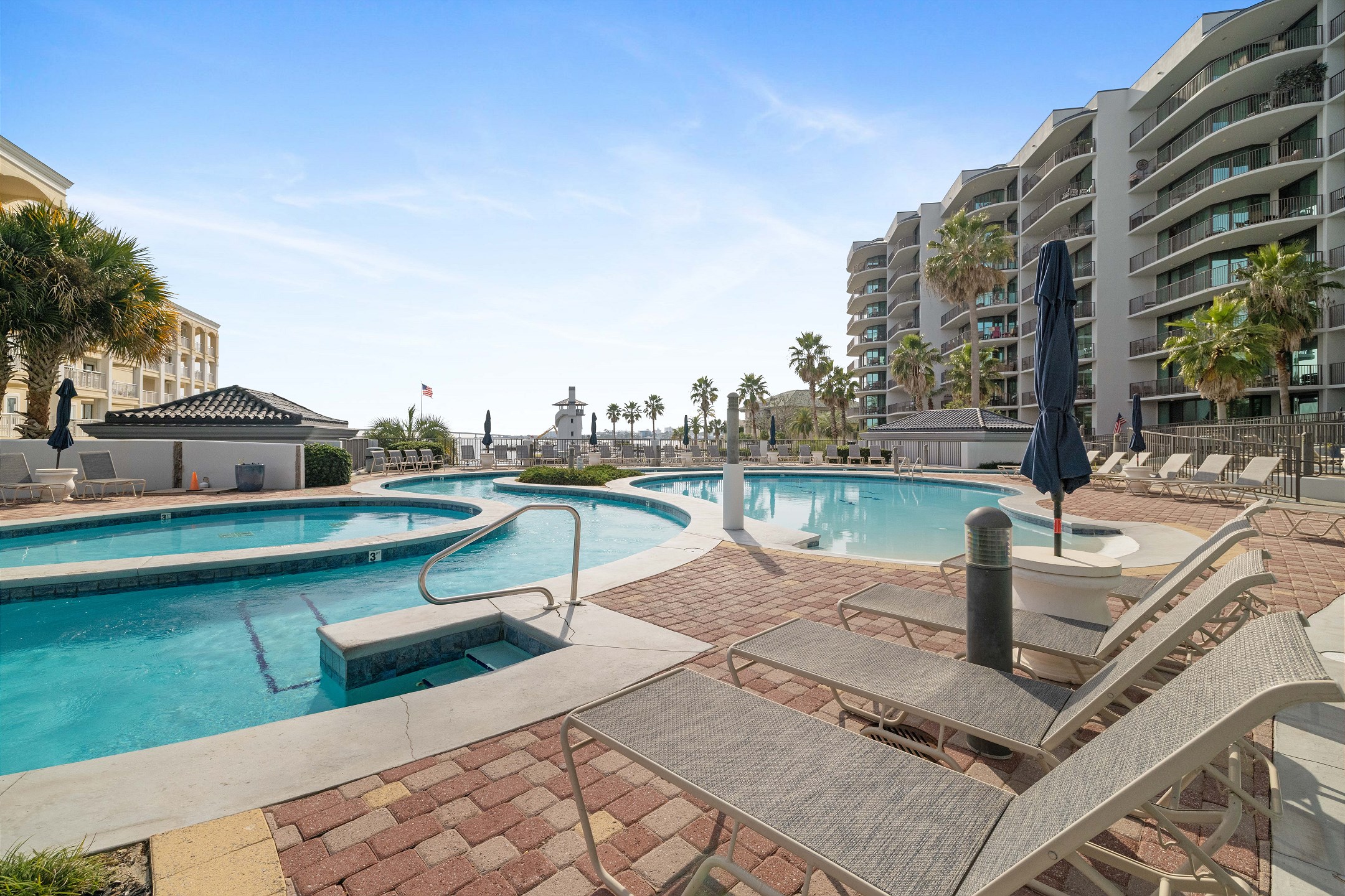 Lighthouse on the Bay is a haven of spectacular waterfront views and fabulous amenities, ensuring a delightful stay. Guests can indulge in the pleasure of floating in the lazy river, a relaxing and fun way to enjoy the scenic surroundings. The kiddie pool is perfect for little ones to splash and play safely, while the zero-entry pool provides an easy and enjoyable swimming experience for all ages. For those who prefer swimming indoors or during cooler months, the indoor heated pool offers year-round enjoyment. The hot tubs are a serene escape, ideal for unwinding and soaking in relaxation. Tennis courts are available for guests seeking some active fun and a bit of friendly competition. Additionally, the grilling area presents a wonderful opportunity for outdoor cooking, allowing you to savor meals in the fresh air.