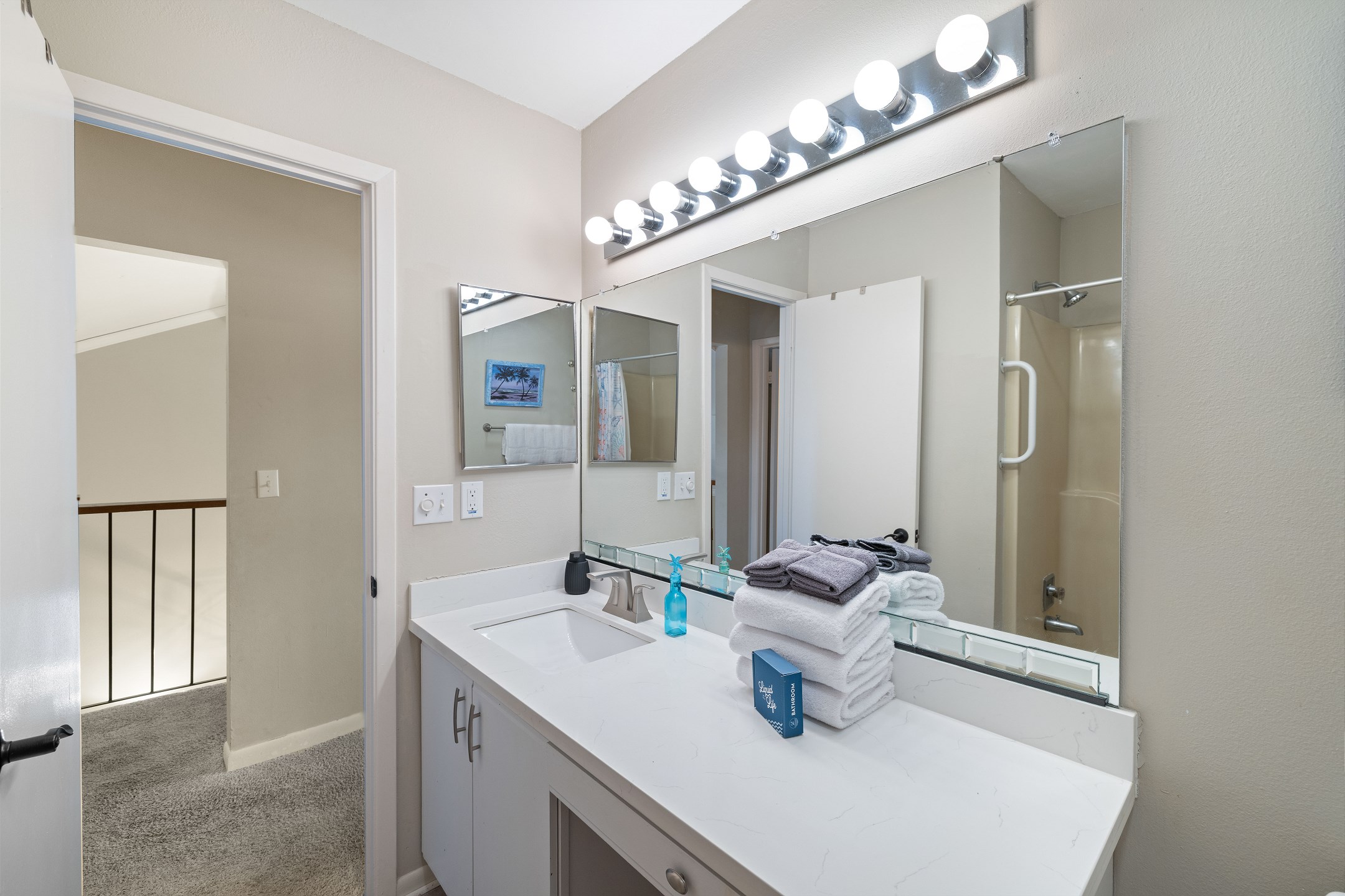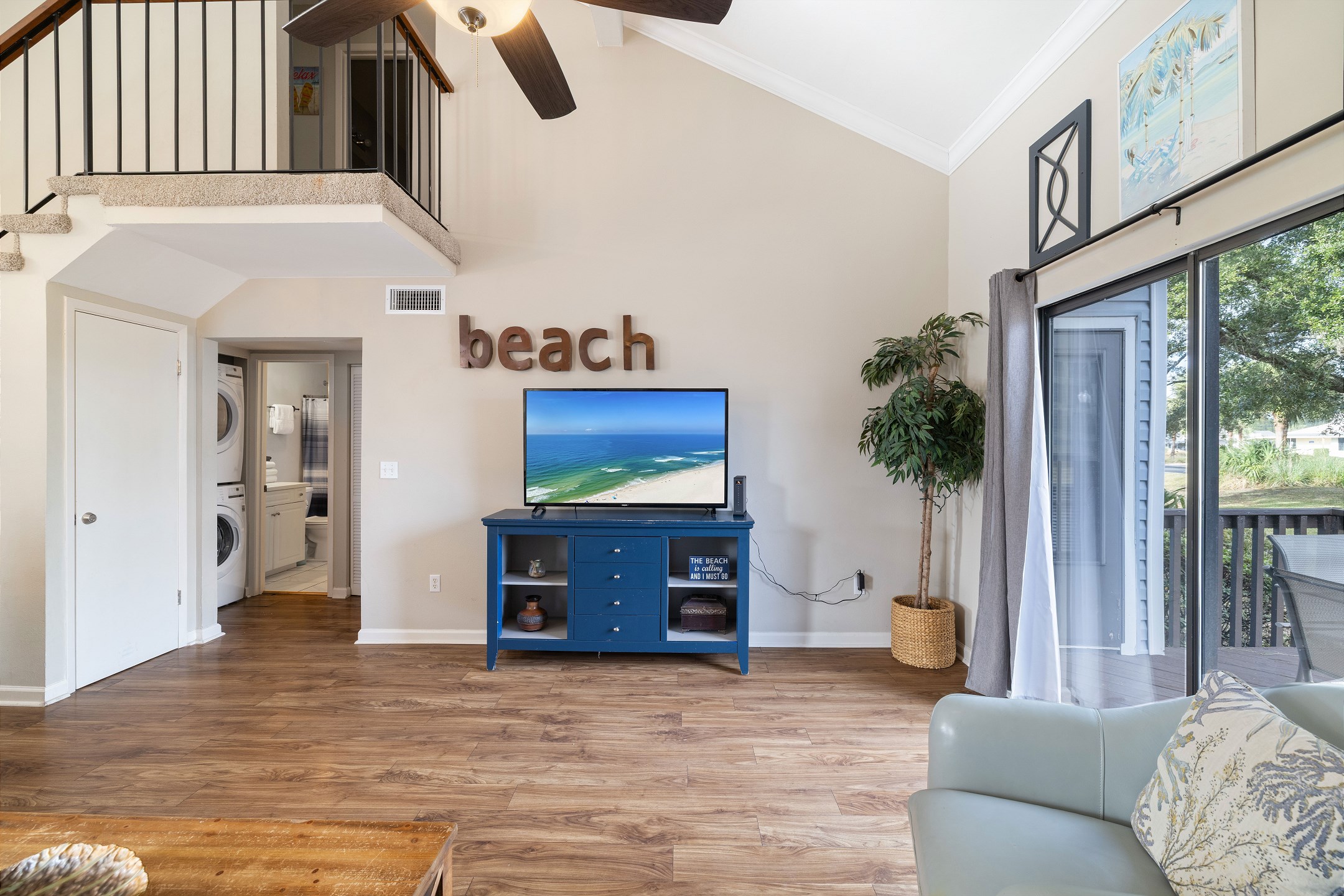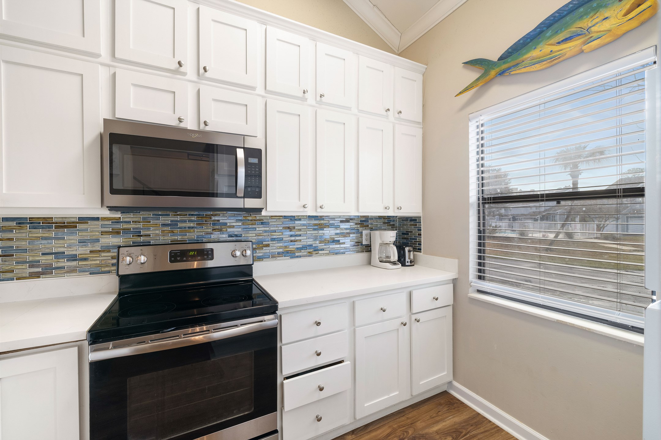 The fully equipped kitchen has everything you need to prepare home cooked meals when you are not savoring the wonderful restaurants just moments away. Start your mornings with a cup of coffee from the drip style maker on your private deck, a peaceful spot for quiet moments, or return in the afternoon for a refreshing cocktail.
