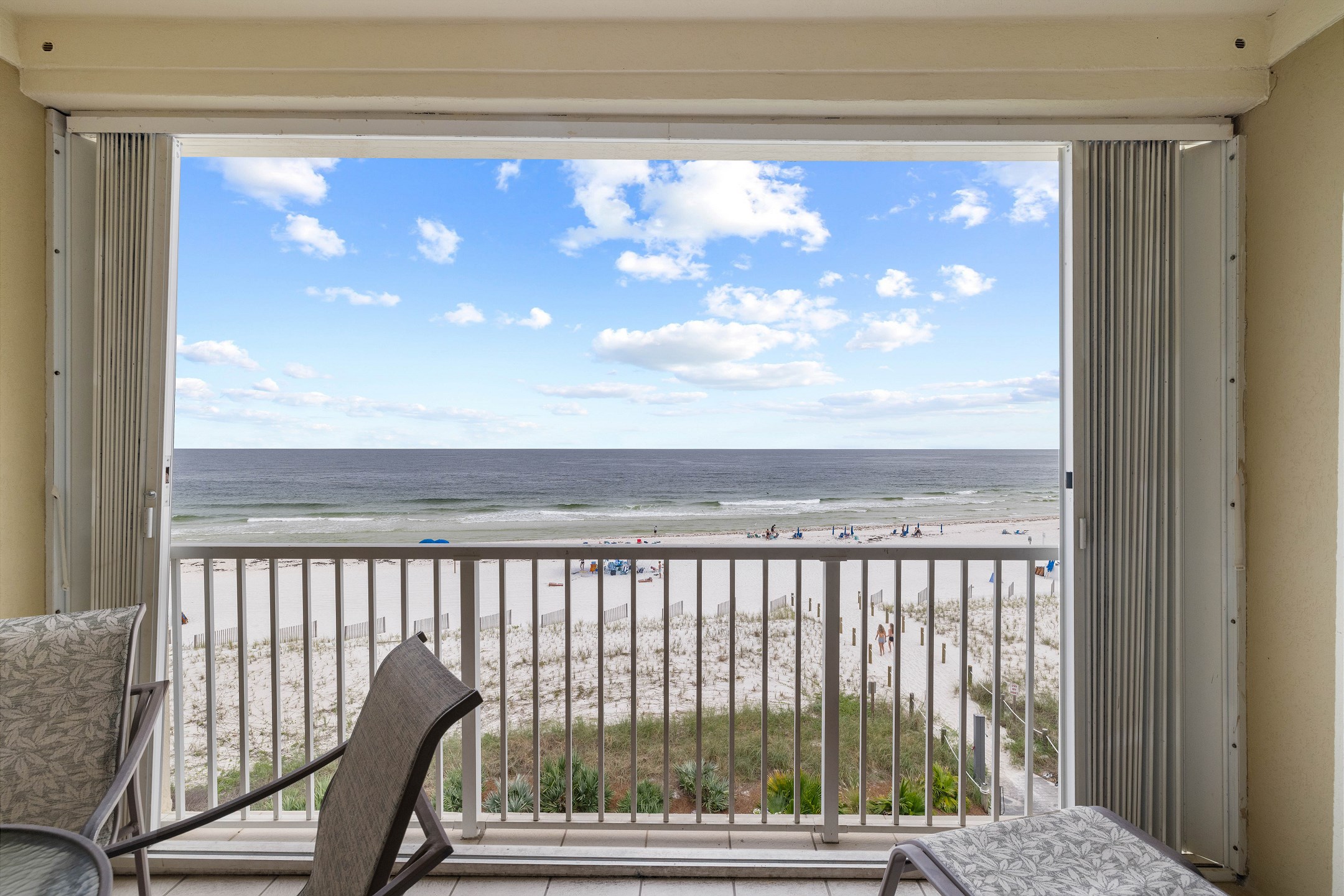 Step onto the private balcony to enjoy breathtaking views. This direct gulf-front condo provides an unparalleled vantage point to soak in the scenery. With the building being a low rise (only 5 stories), it feels like having your own private beach.