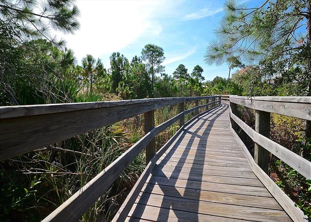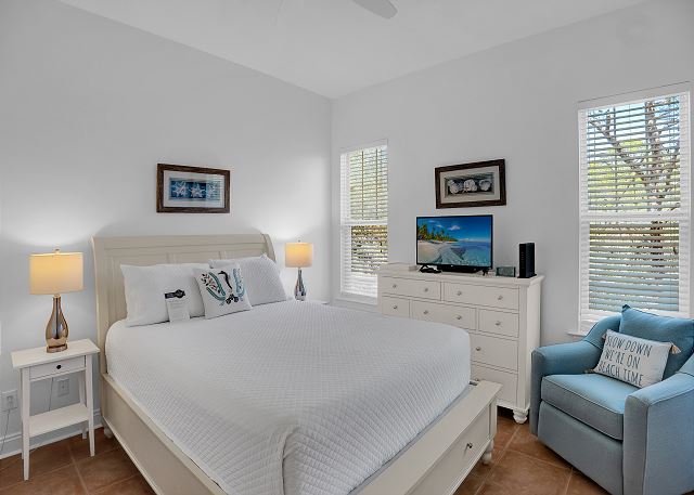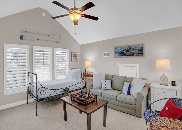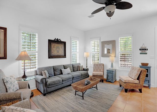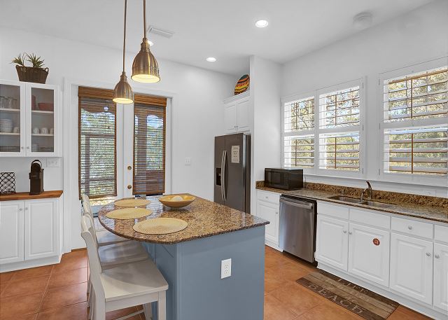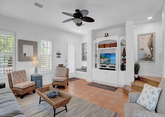The property is ideal for exploring and enjoying the surroundings. Take a leisurely bike ride (bring your own, or rent one nearby) or hop on the four-person golf cart to discover this unique beach community.