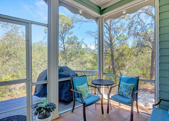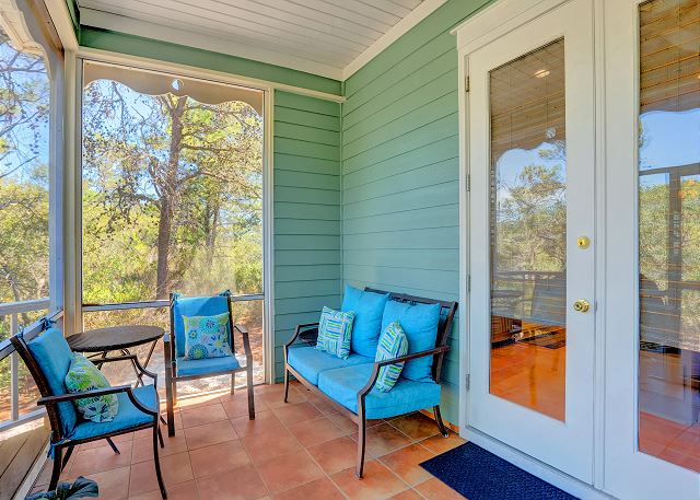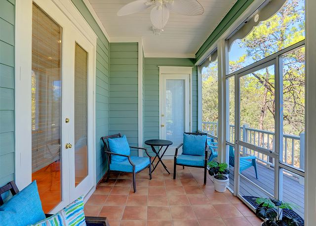 Convenience is key, and this home includes an in-unit washer and dryer, making laundry a breeze during your stay. Step outside to your screened-in patio, a peaceful space to enjoy your morning coffee or evening drinks while taking in the tranquil surroundings of the resort.