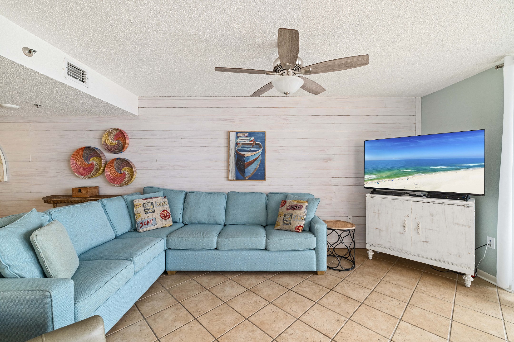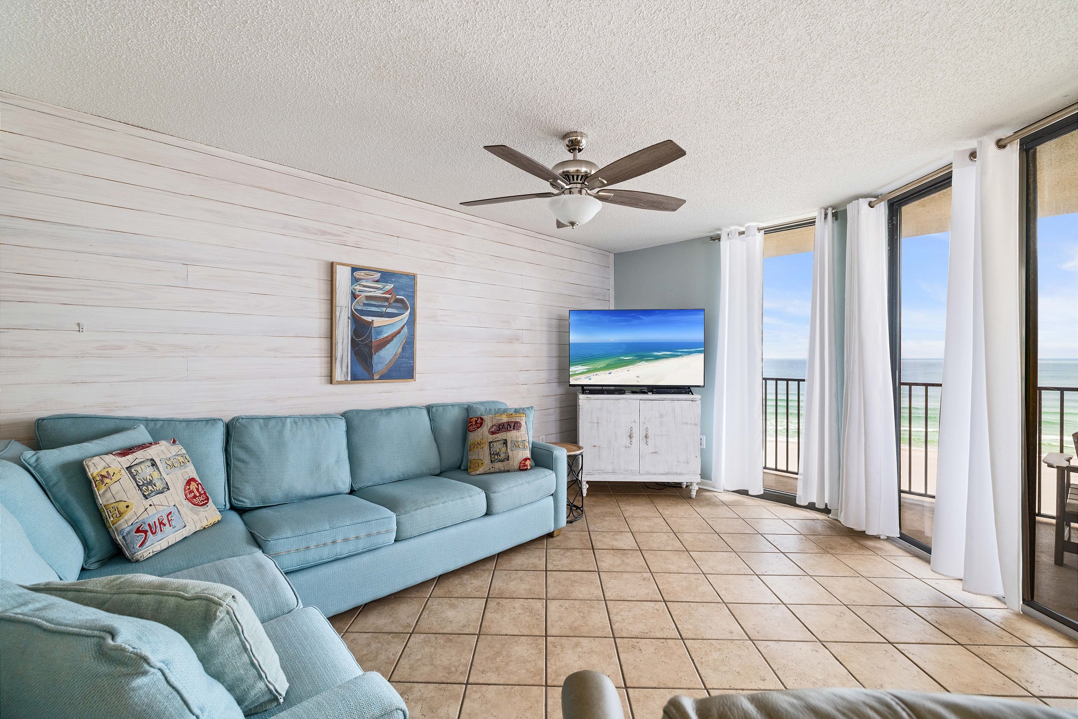 The condo was perfect for our Ladies Weekend. We passed up many condos we researched because they weren’t “beachy.” The decor in this condo was softly beachy - very understated and classy. (Some were gaudy and tacky). Beds were comfy, llinens soft and all the extras in the kitchen were all we could ask for. Loved it being on the corner with the wrap around balcony. Perfect! We will be back! (We’ve always gone in late spring - decided October is much better. Weather was perfect.Mary Jane M. - Posted: 10/10/2019
