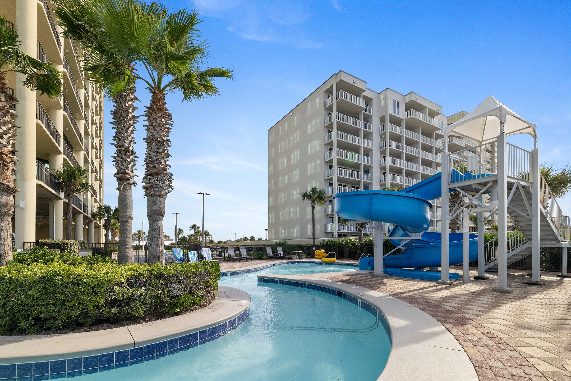 Phoenix West offers a range of amenities for a fulfilling beach vacation. This complex features a lazy river and twisty water slide, catering to fun for all ages. The zero-entry pool and kiddie pool provide swimming options for everyone. Tennis courts are available for guests who enjoy active leisure. The indoor heated pool, complemented by indoor and outdoor hot tubs, offers relaxation opportunities. For outdoor dining enthusiasts, there's a grilling area. The complex also includes a boardwalk with an outdoor shower for easy beach access. An exercise room and a sauna are available for fitness and relaxation needs.