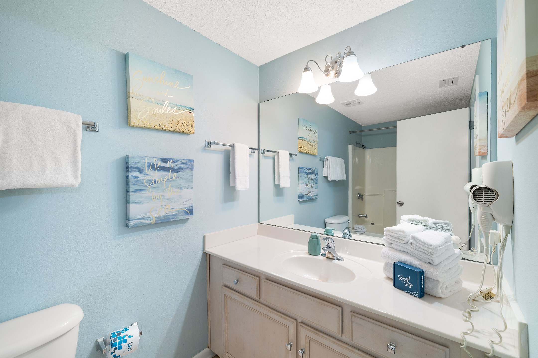 Every Linen, Every Time: Liquid Life washes every linen for every guest. Every linen means every towel, every sheet, every quilt, and every pillow sham – every time. Inside our commercial laundry care facility, all linens are washed in our high-heat (150 degrees) commercial washers with our select, EPA-approved detergents to ensure complete sanitation. Liquid Life also follows specialized procedures to contain soiled linens and protect clean linens for every guest.