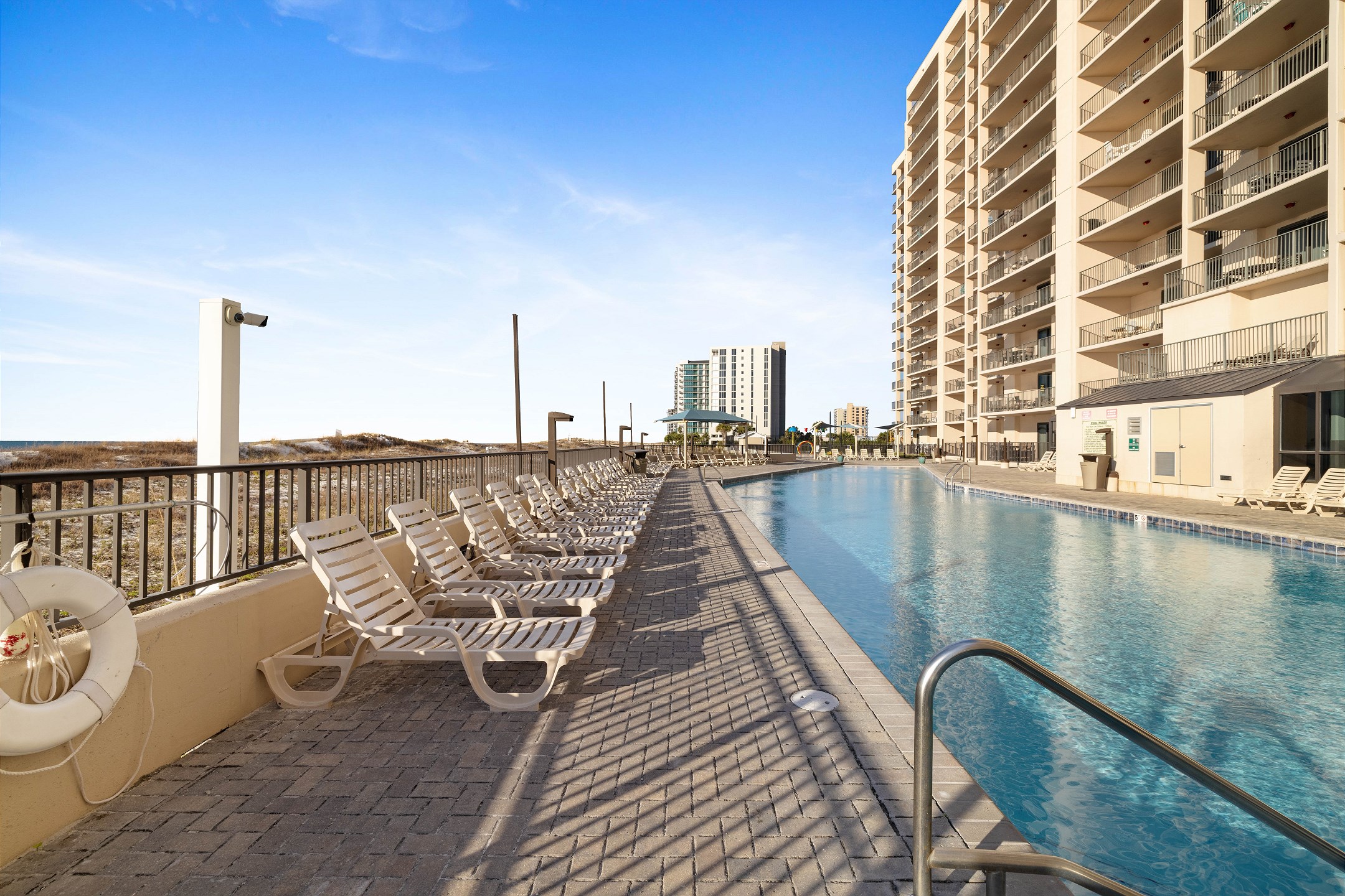 Phoenix X complex, situated next door to the world famous Flora-Bama, offers an array of amenities to enrich your stay. Dive into relaxation with both outdoor and indoor pools, unwind in the indoor hot tub, or choose from two saunas for a soothing experience. A standout feature of Phoenix X is the zero-entry pool, complete with a waterfall, providing a unique and visually stunning swimming experience. For those keen on fitness, the exercise room is well-equipped to meet your workout needs. The BBQ area offers a perfect setting for outdoor dining, adding to the pleasure of a beachside vacation. Racquetball courts are available for guests who enjoy sporting activities.