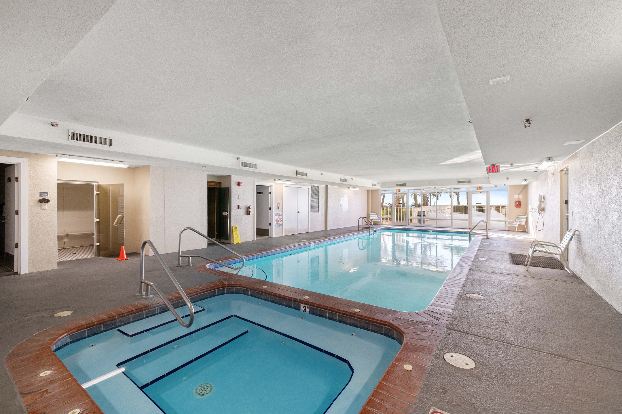 Regency Isle provides a range of amenities for a fulfilling and enjoyable beach vacation. The complex features an outdoor pool, perfect for both swimming and sunbathing. Guests can relax in the outdoor and indoor hot tubs, offering a peaceful retreat. An indoor heated pool ensures comfortable swimming in any weather, while the grilling area is great for outdoor cooking and social gatherings. For wellness and relaxation, there's a sauna and steam room, creating a spa-like atmosphere for rejuvenation. The fitness center is available for guests who want to keep up with their exercise routine, and the activity room with a TV provides a casual space for leisure. The property includes a deeded boardwalk leading directly to the beach, equipped with outdoor faucets and a shower for convenience after beach activities. Complimentary WiFi throughout ensures guests can stay connected during their stay.