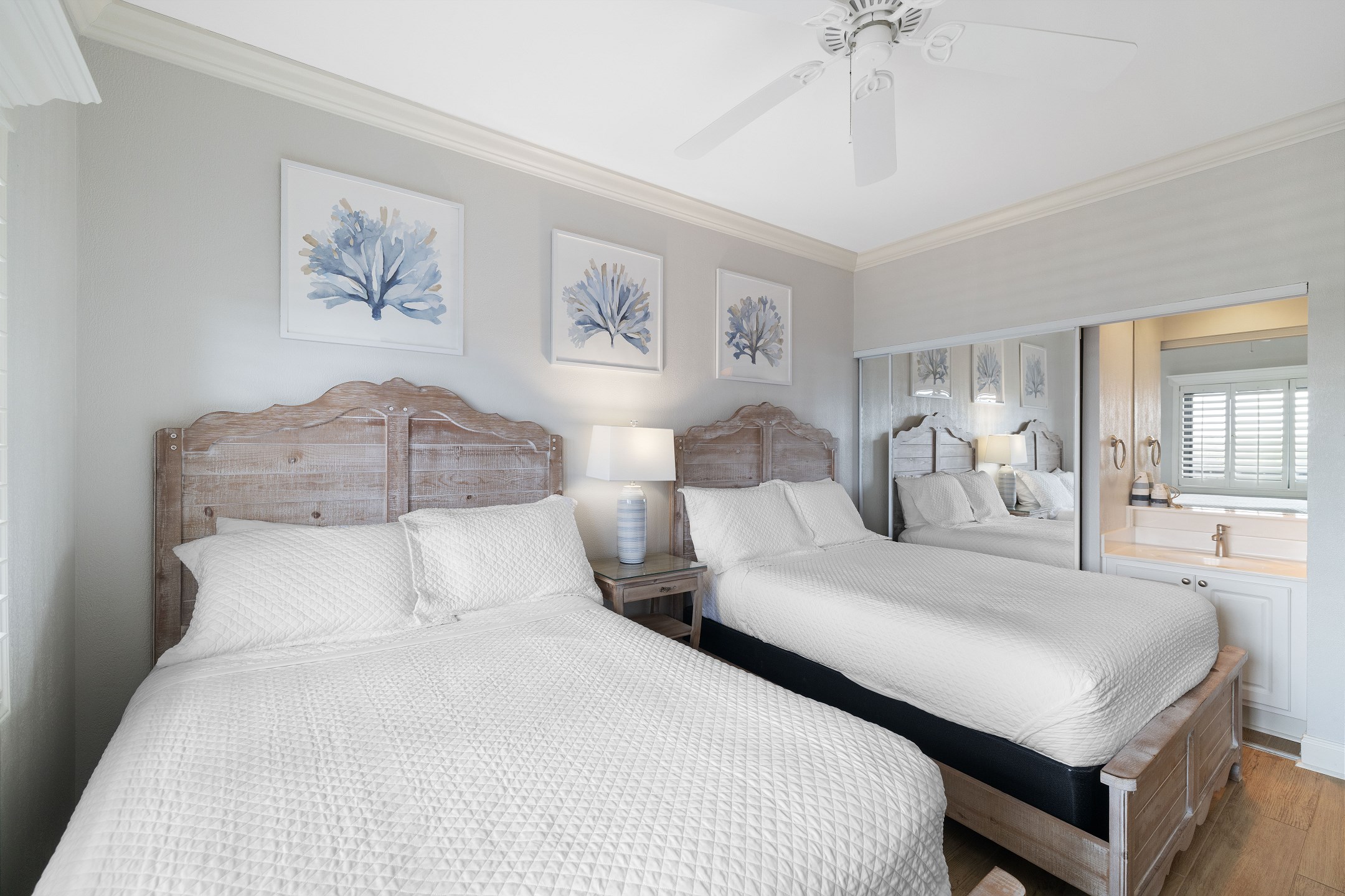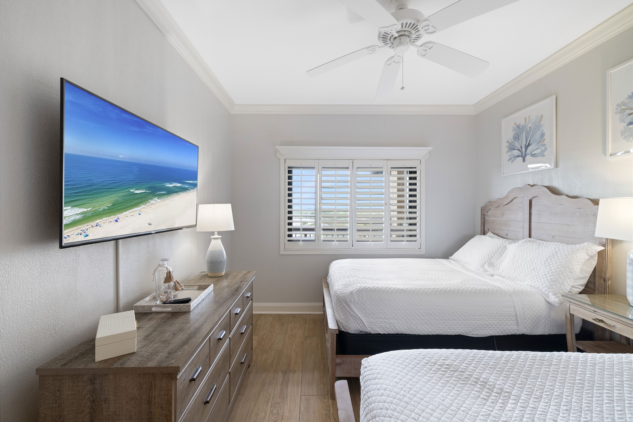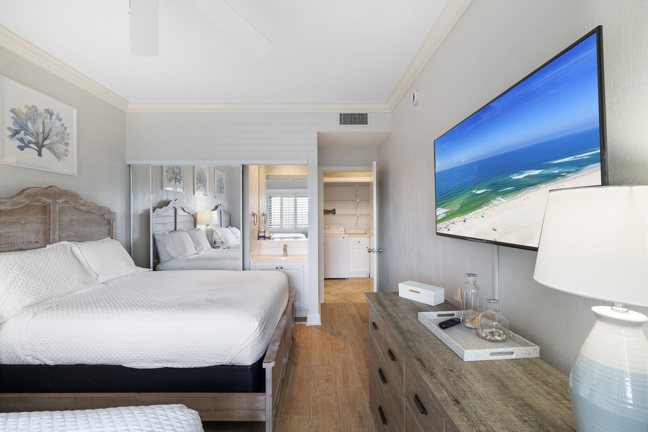 Indulge in the comfort of the Primary suite, boasting a King-sized bed and a flat-screen TV. The ensuite bathroom features a garden tub shower combo. The second guest room offers a cozy King-sized bed, while the third bedroom, which has two Double-sized beds, is perfect for kids or extra guests. Both guest rooms are equipped with flat-screen TVs and share a guest bathroom fitted with a shower tub combo.