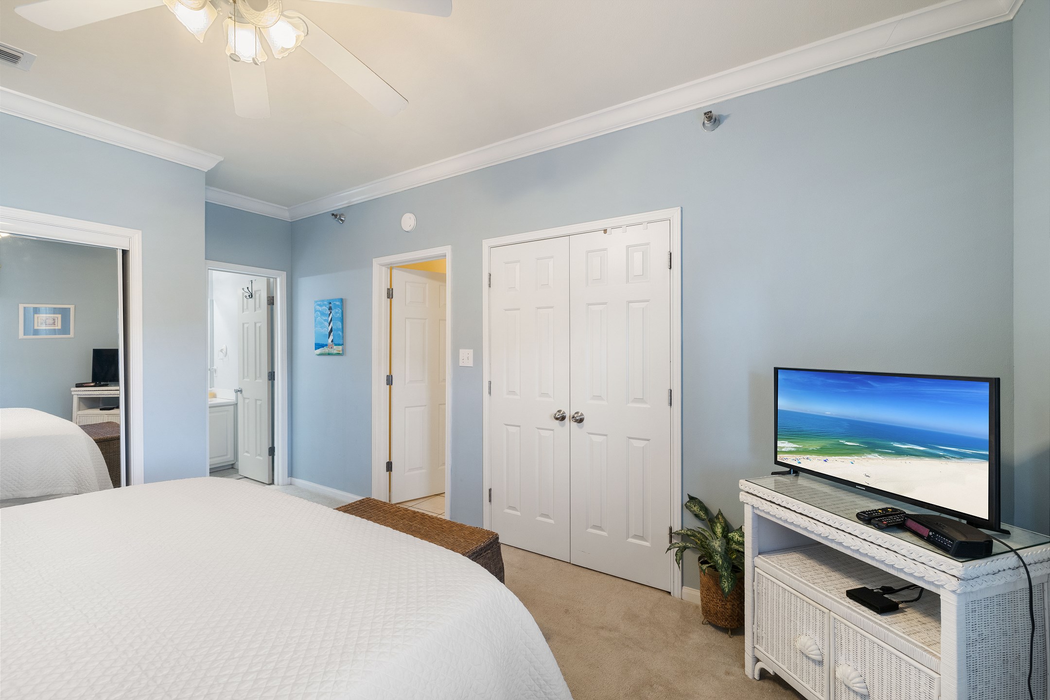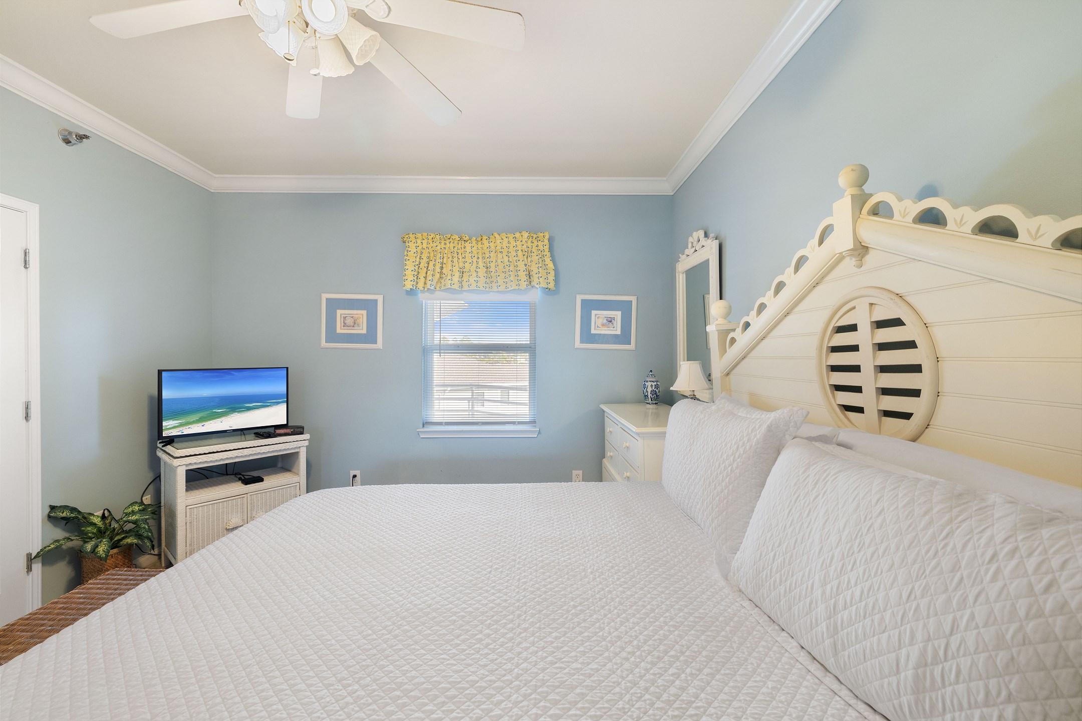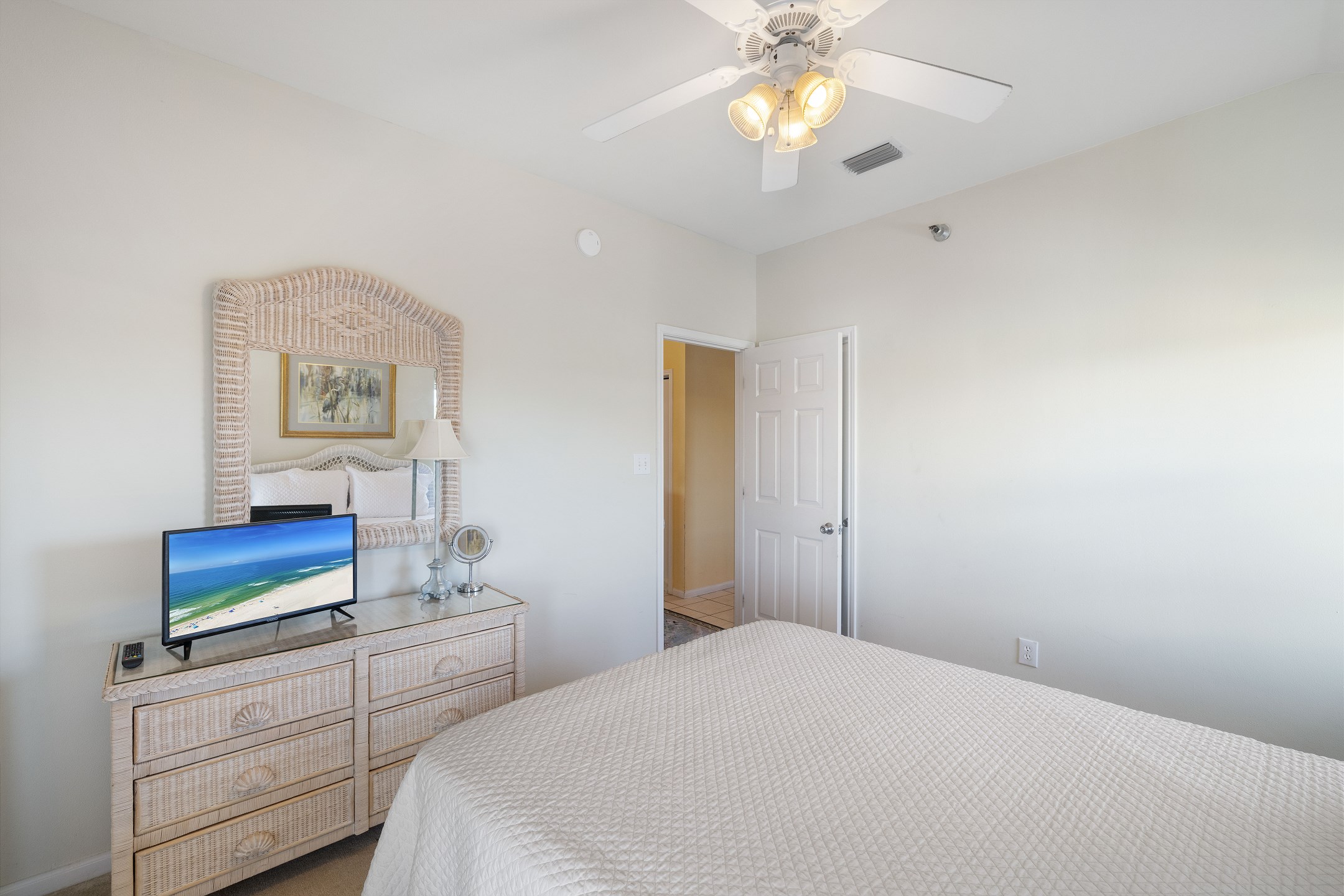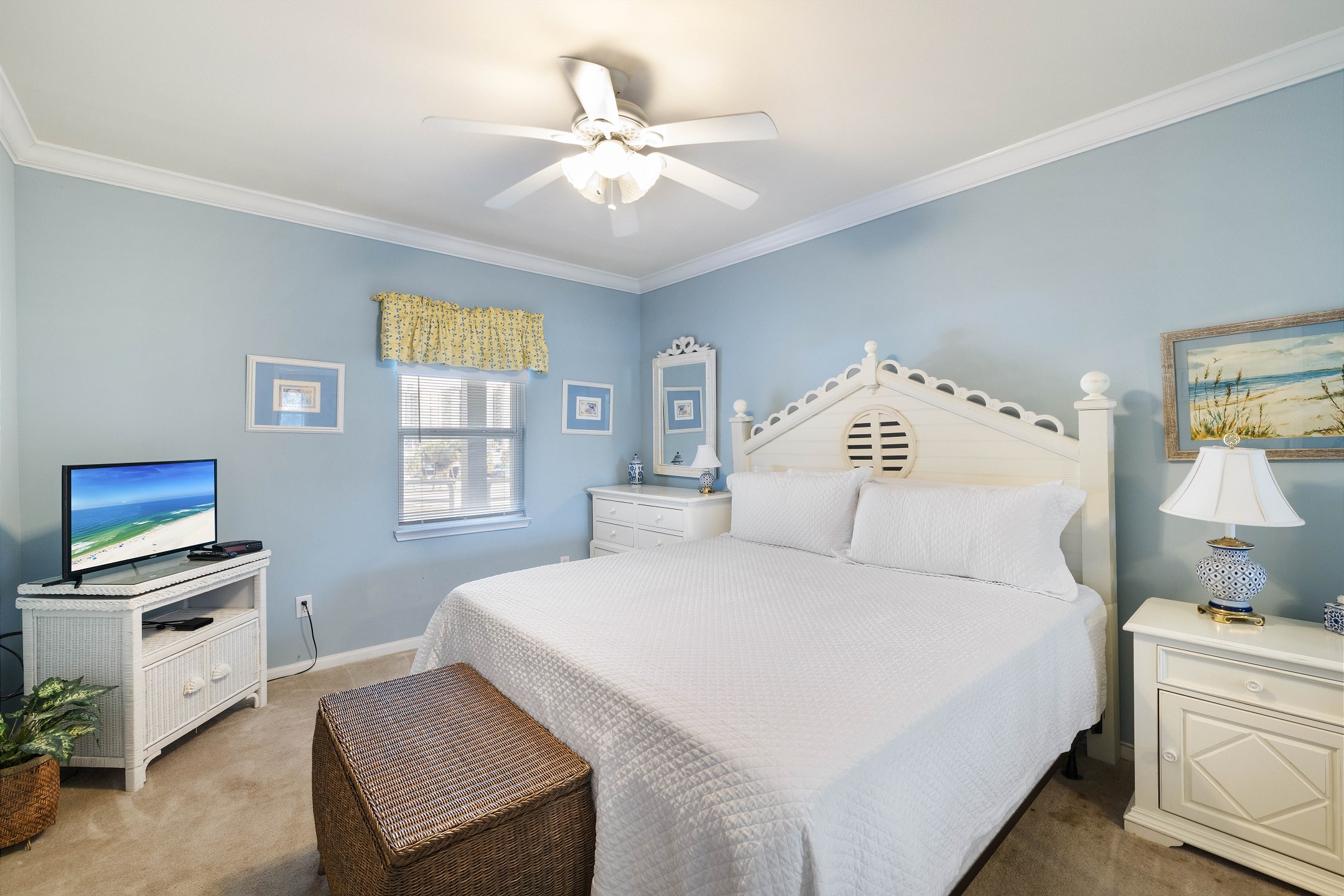 The primary bedroom features a king bed for a restful night's sleep. The second bedroom includes a queen bed, and the third bedroom also offers a queen bed, giving everyone their own cozy place to relax.