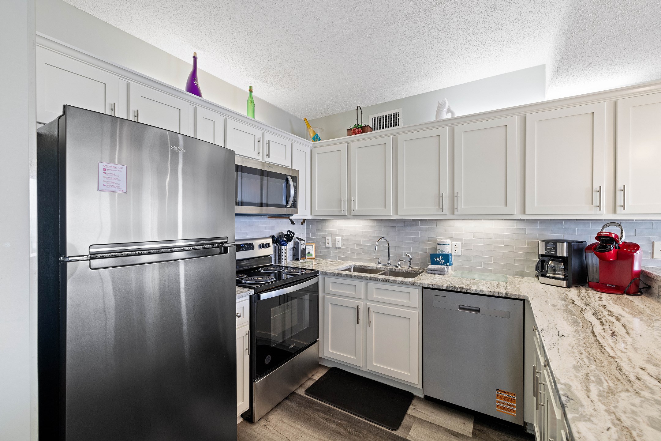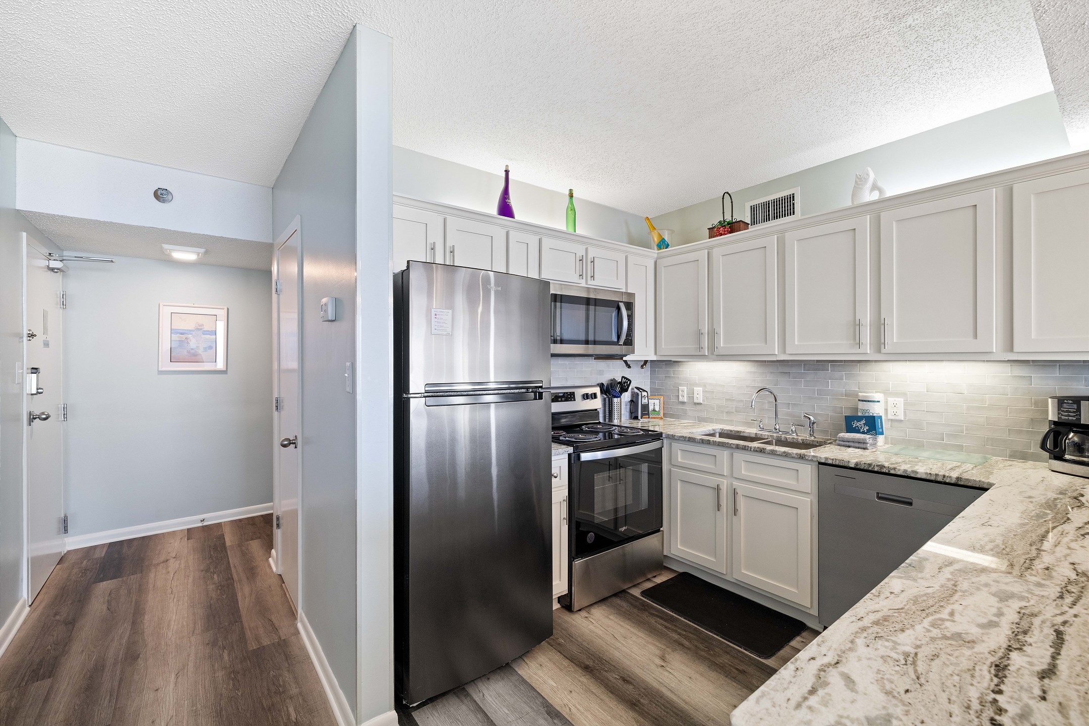 Other amenities include an in-unit washer and dryer, making it easy to keep up with laundry during your stay.