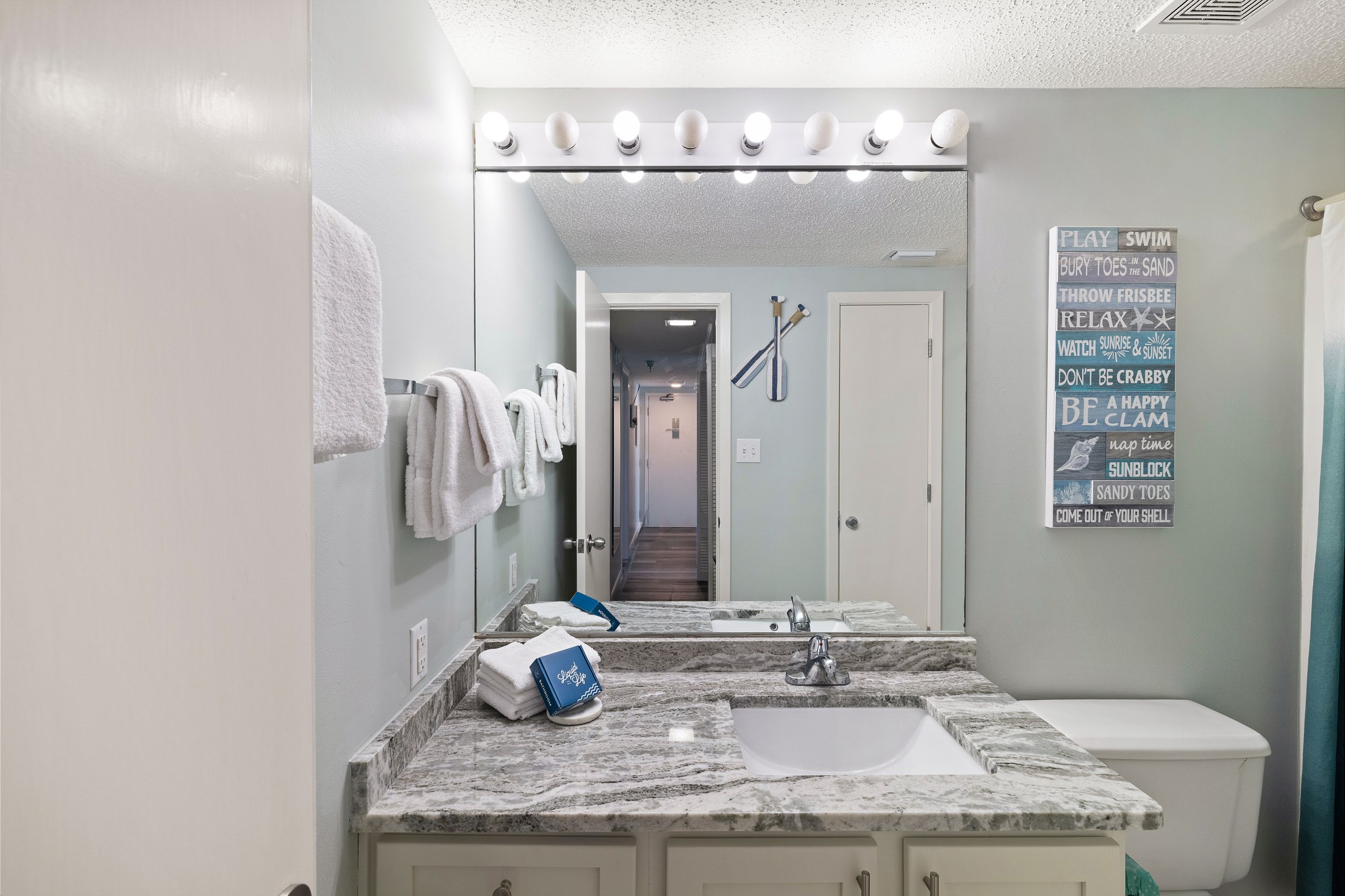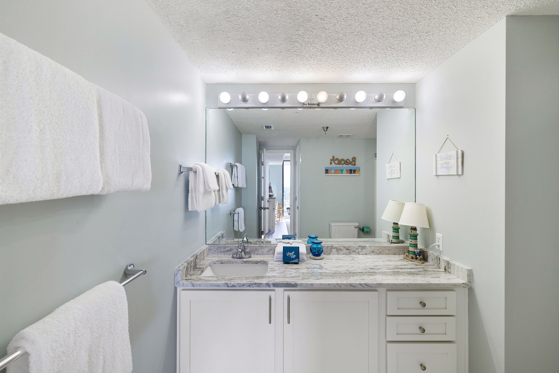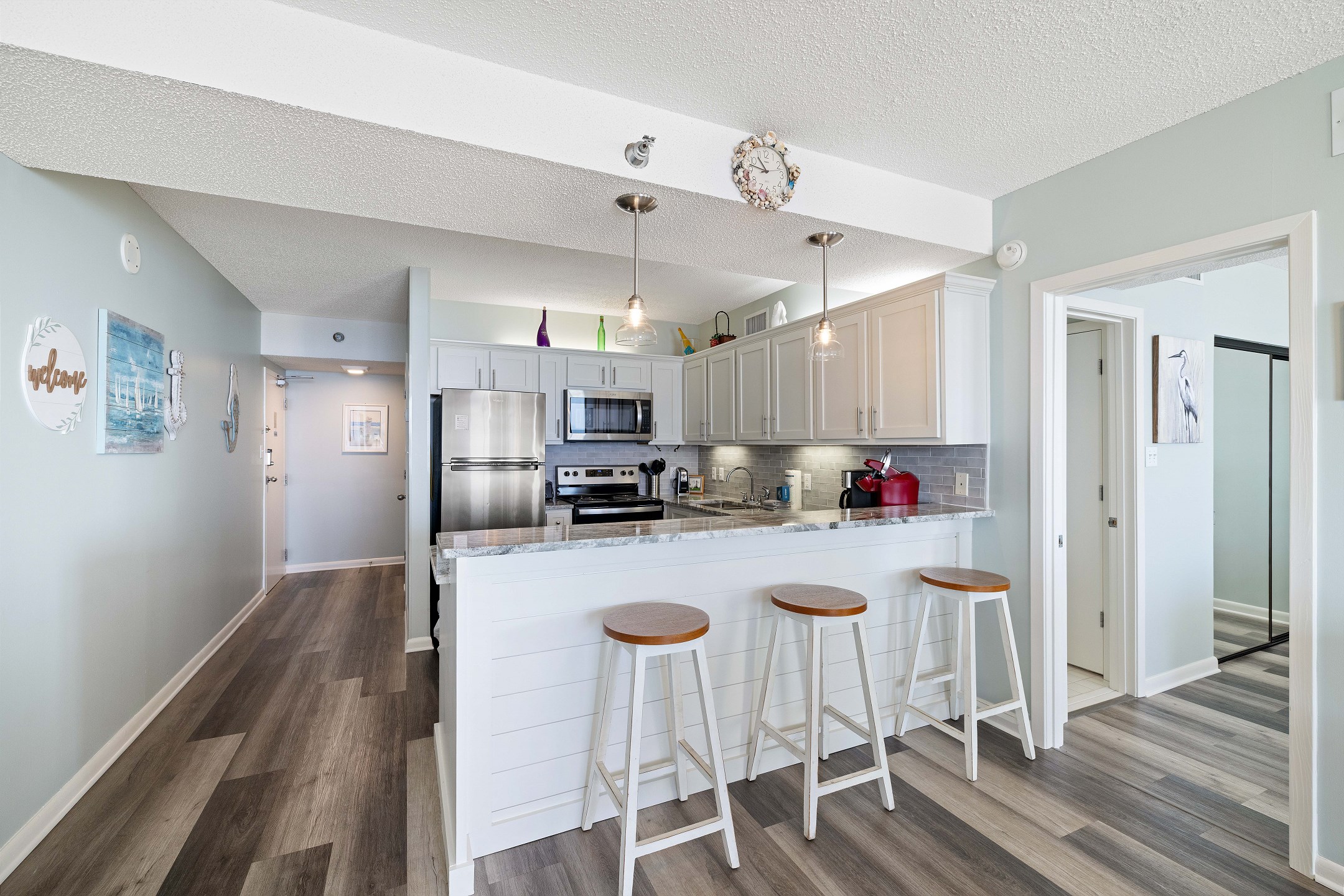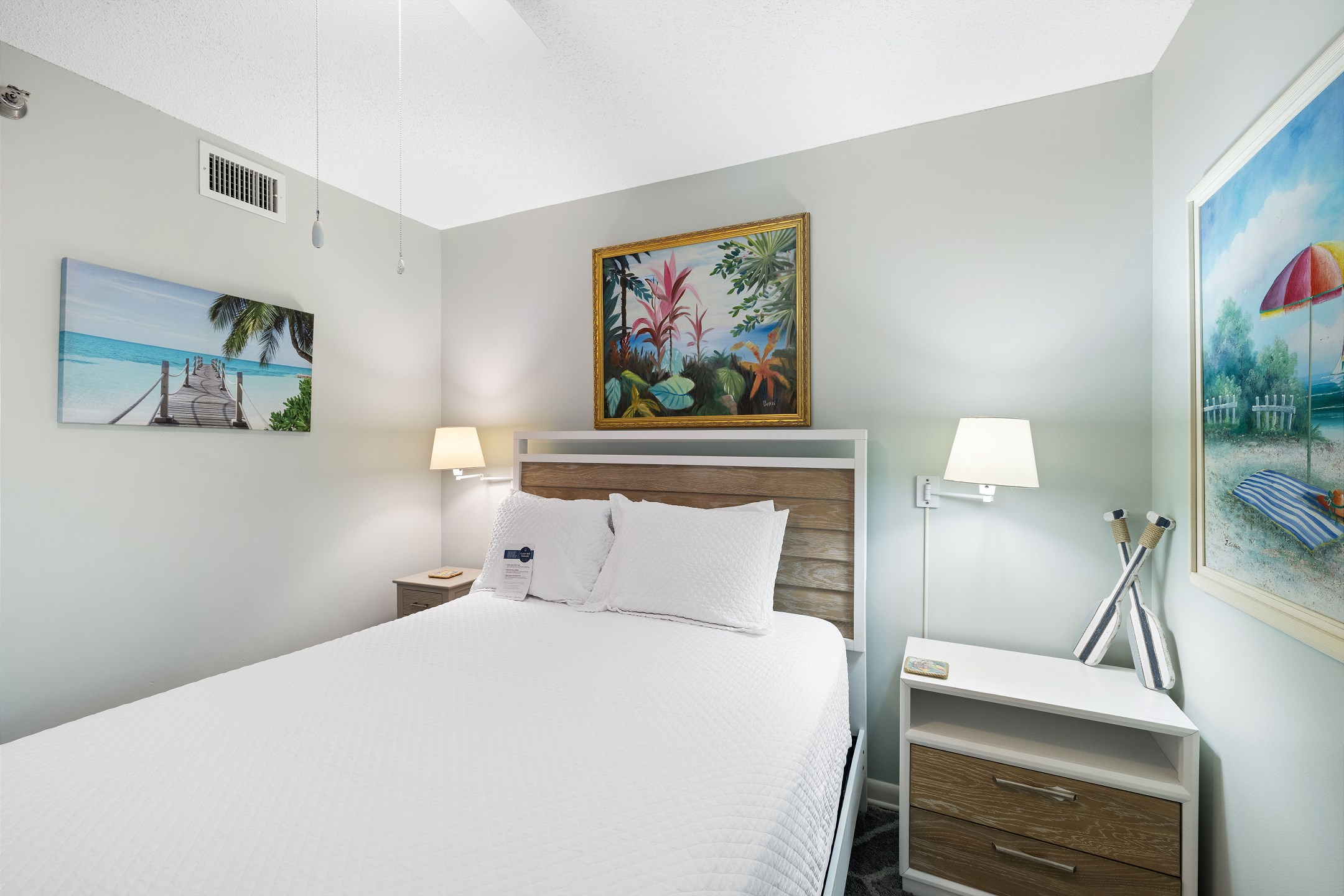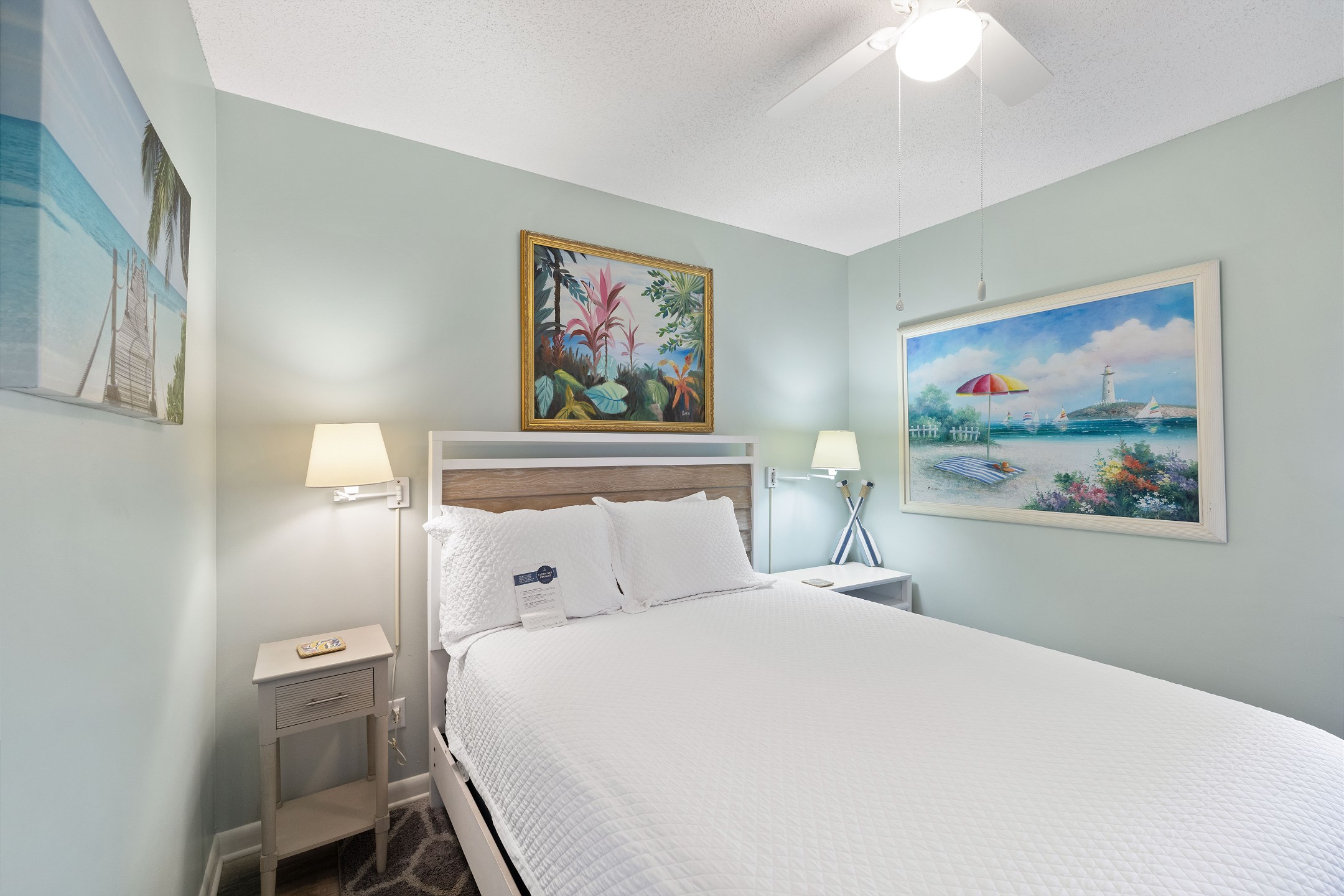 The primary bedroom includes a king bed, private balcony access, and an ensuite bathroom for added convenience. The second and third bedrooms both have queen beds. For additional sleeping arrangements, there is a full-size sofa sleeper in the living room.