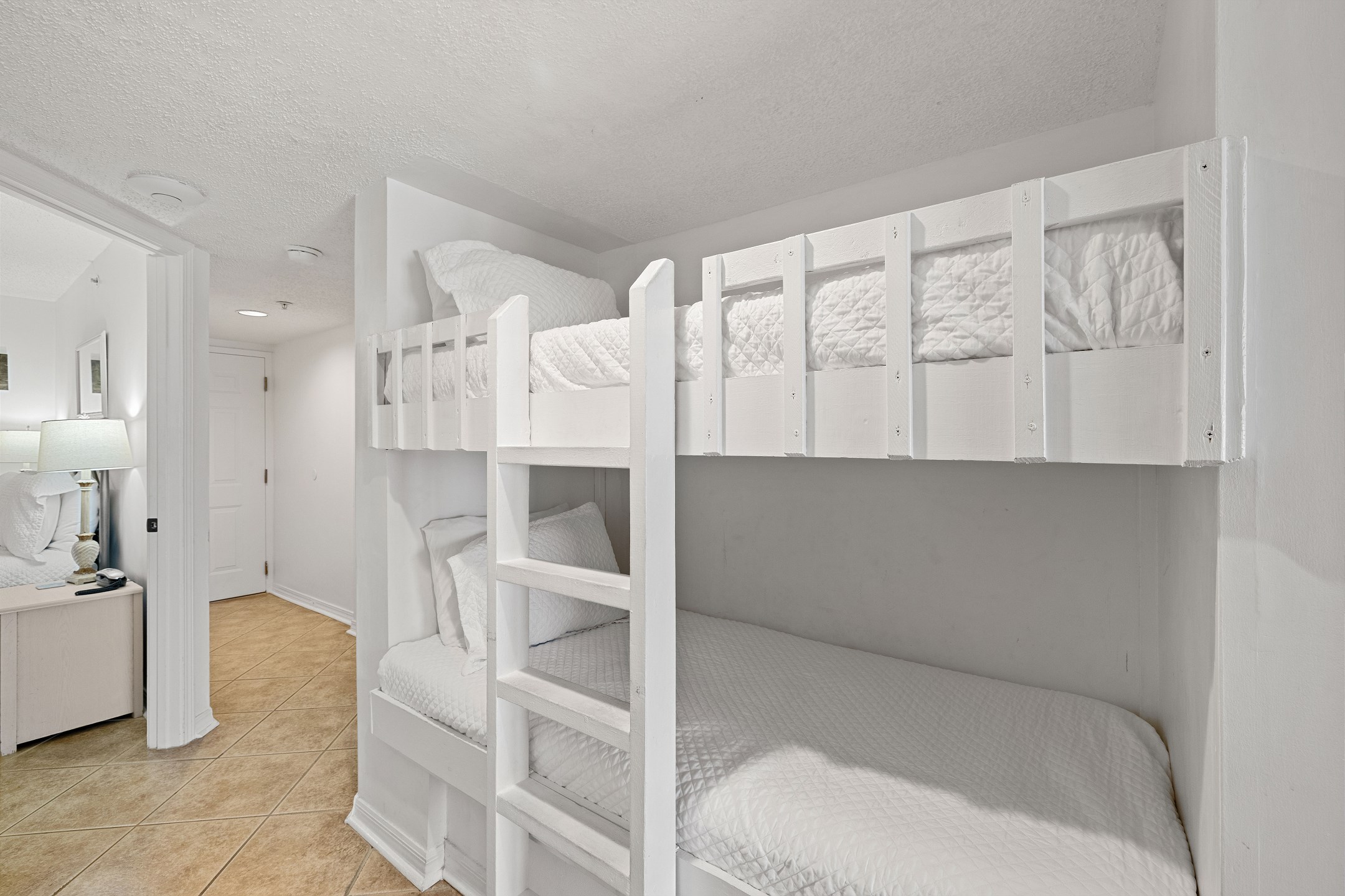 Step into the living room that leads to a private balcony, perfect for taking in beautiful shoreline views. The living space also includes a convenient twin-over-twin trundle bed for extra guests.