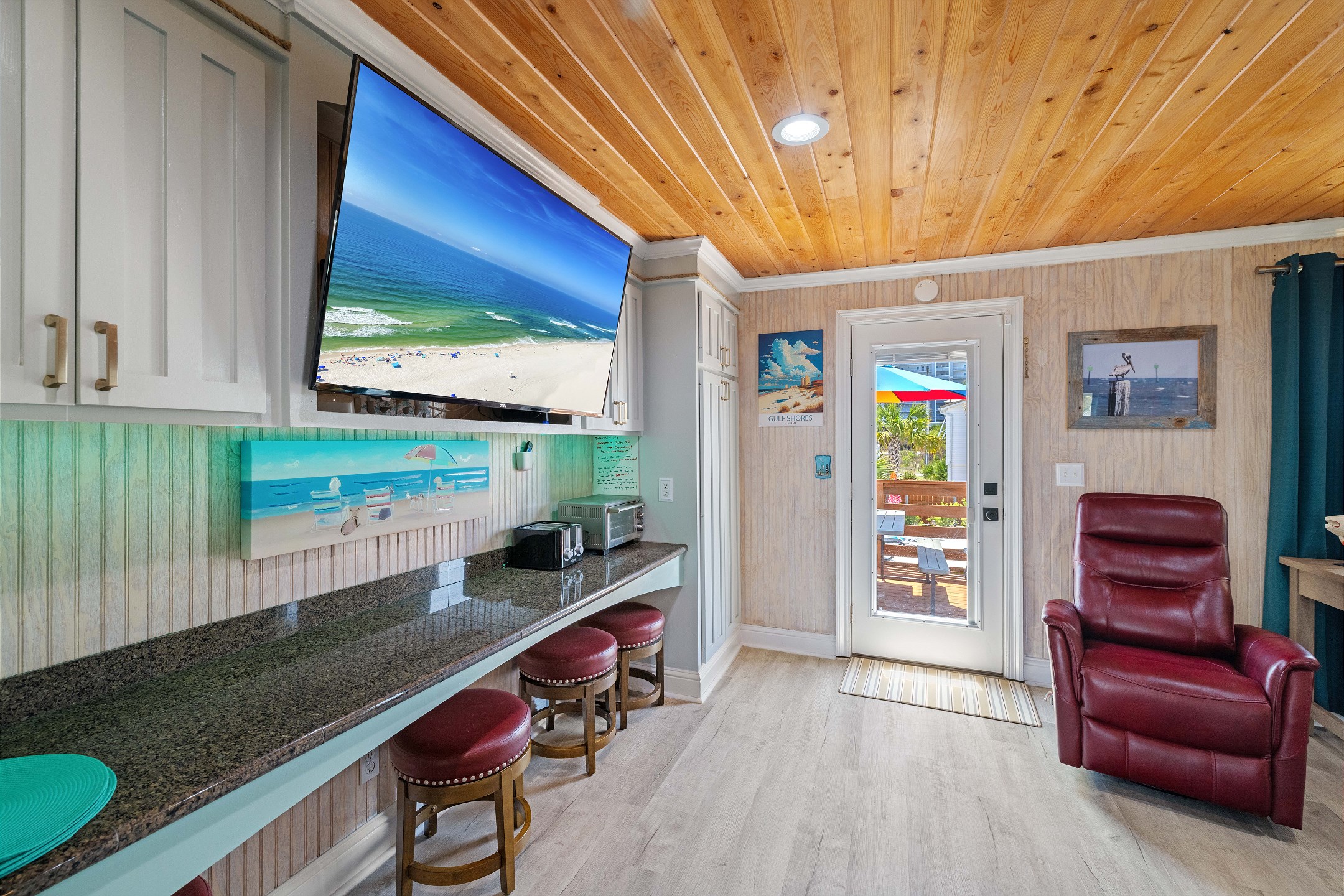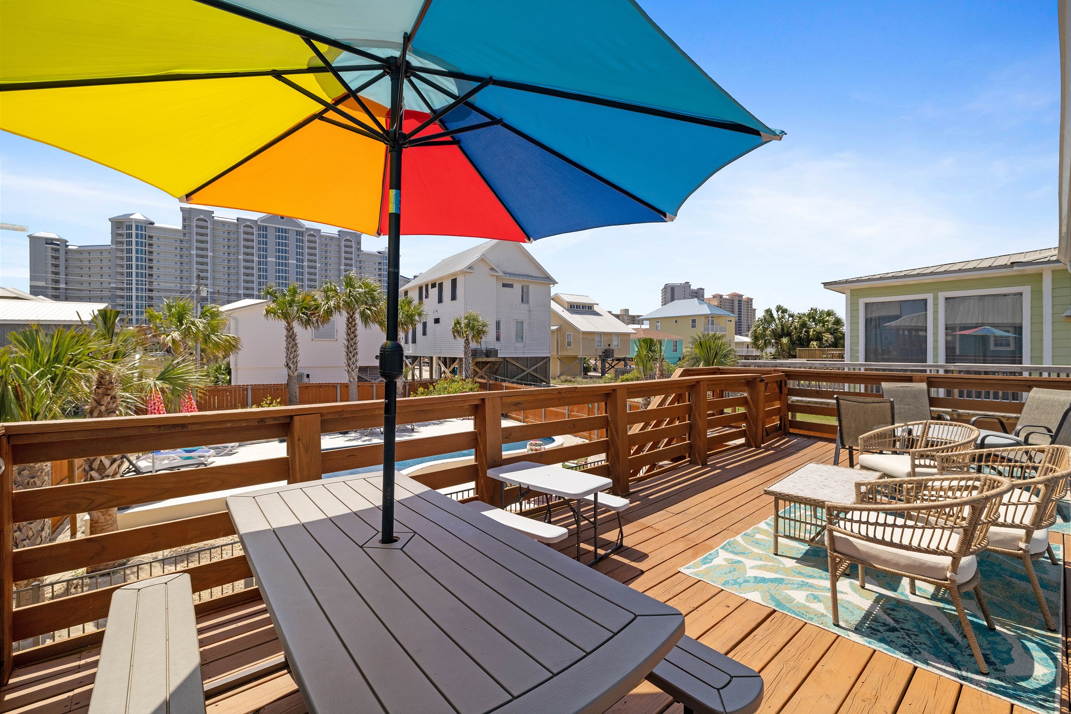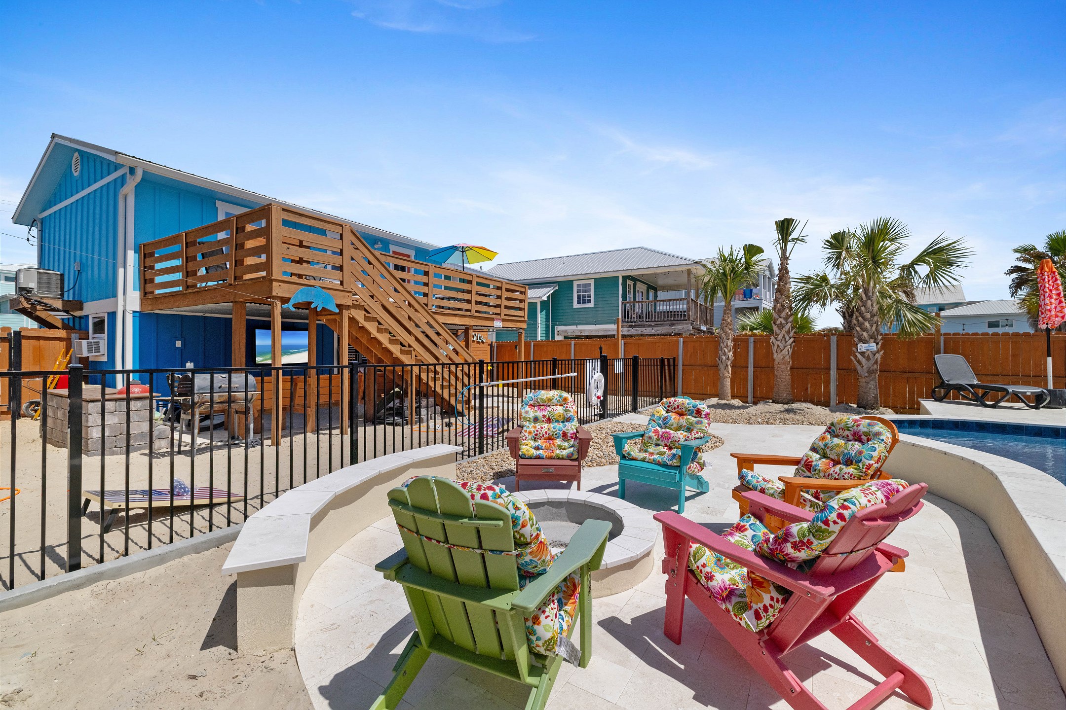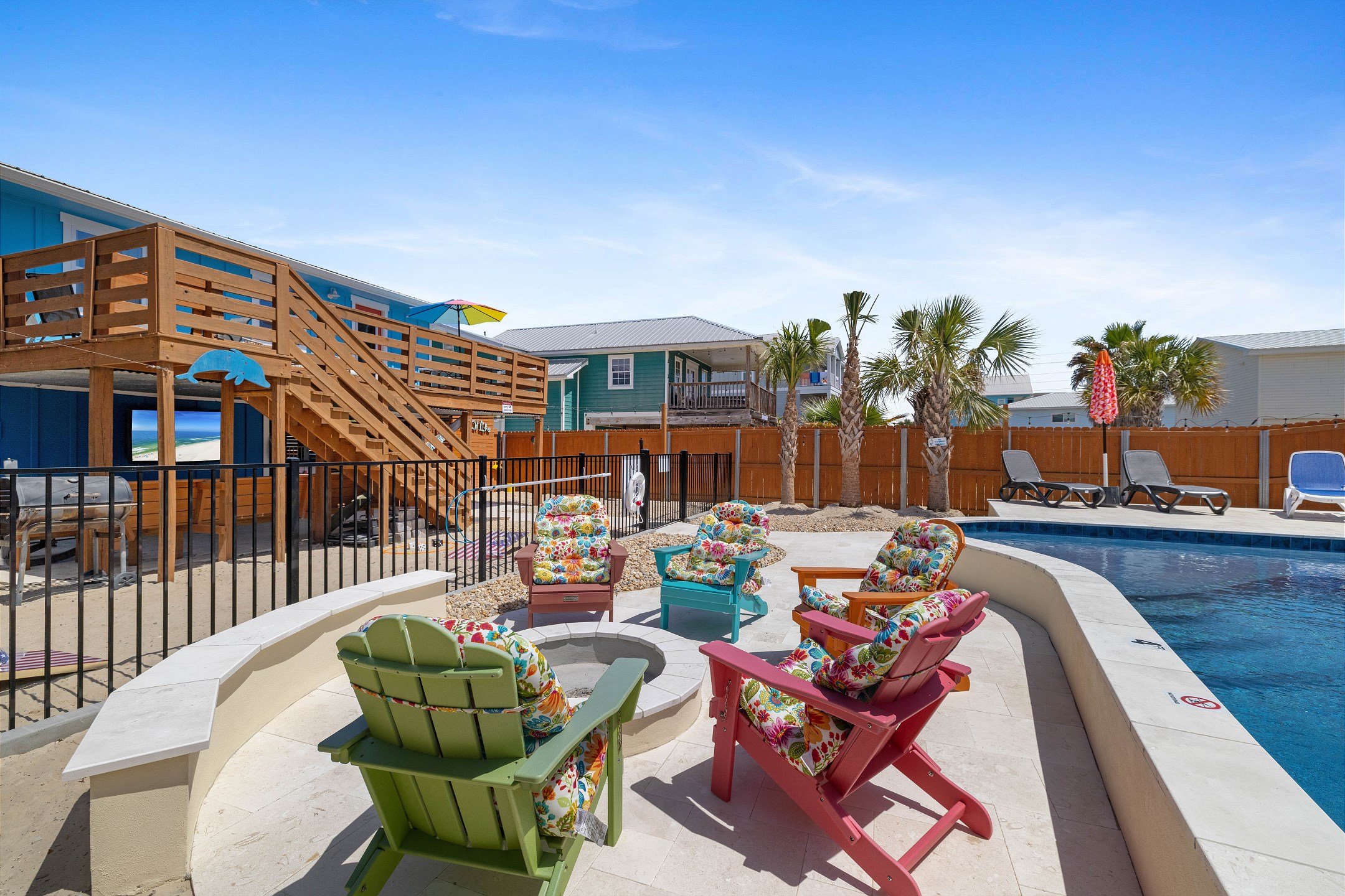 Step outside to the deck and patio areas to enjoy the fresh Gulf breezes, and fire up the charcoal grill (bring your own charcoal) for some beachside grilling. The fully fenced property ensures privacy. This unit is dog-friendly! A non-refundable pet fee of $150 applies for guests bringing a dog. Please notify our office in advance if you plan to bring one. This unit allows a maximum of two dogs. Most beaches in the area do not allow dogs, but there is a dog-friendly beach down Fort Morgan.