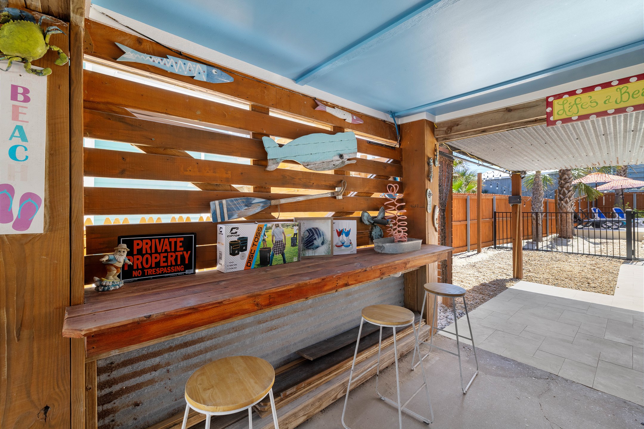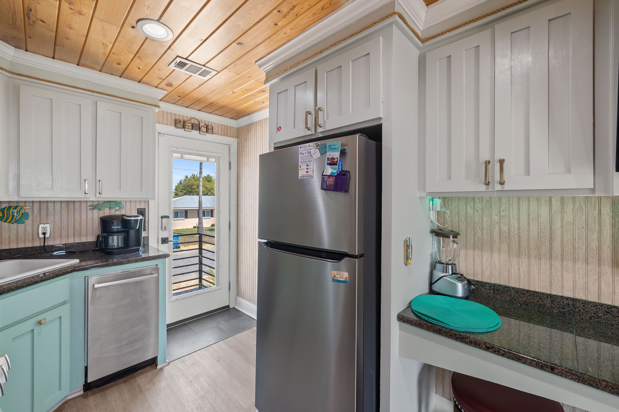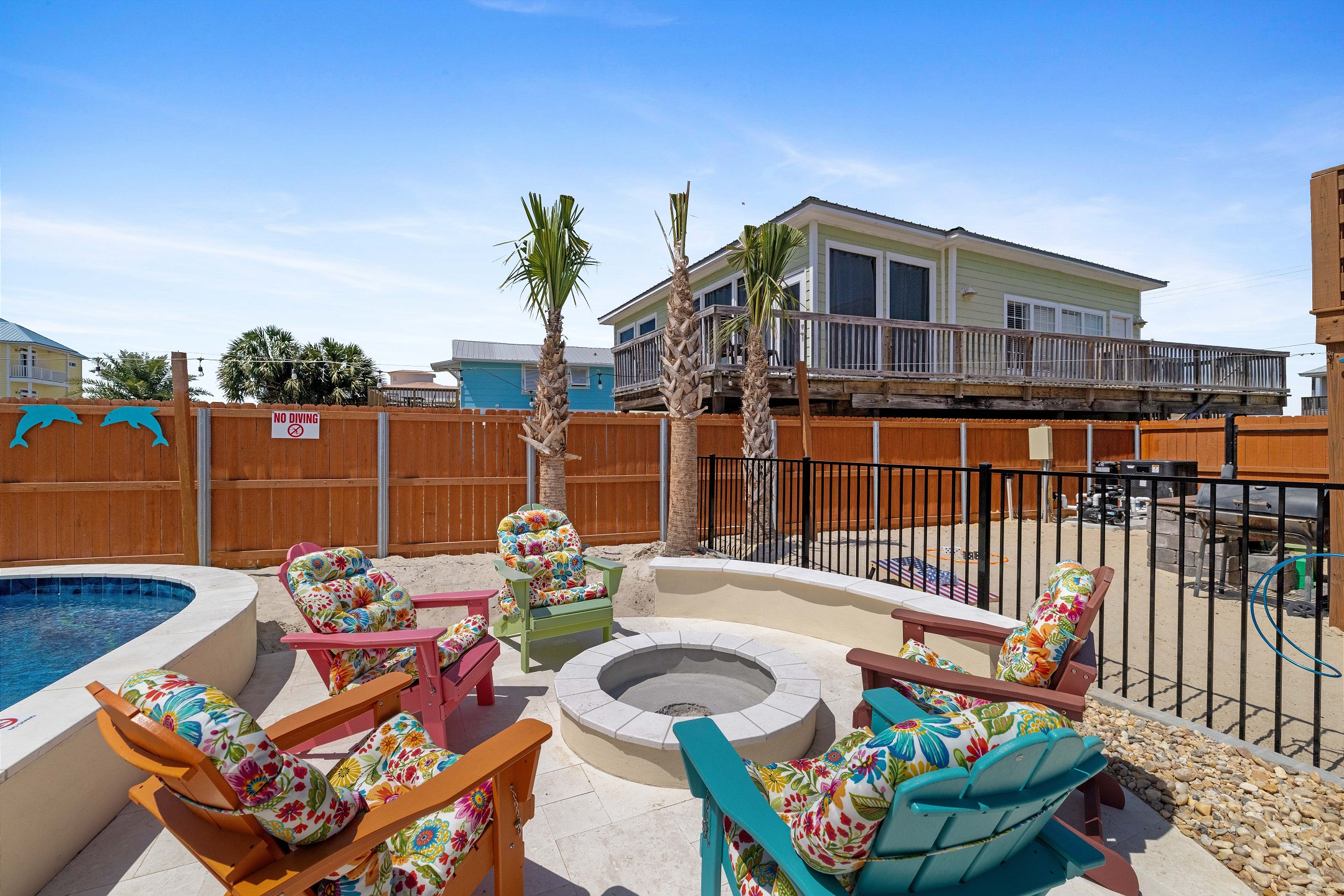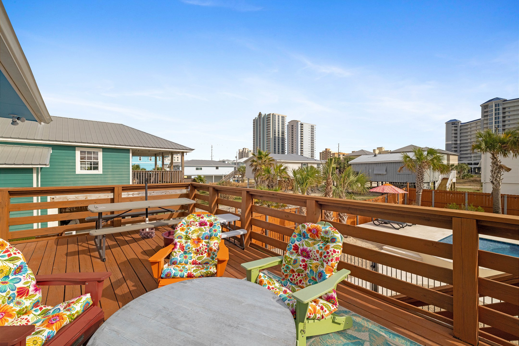 Step outside to the deck and patio areas to enjoy the fresh Gulf breezes, and fire up the charcoal grill (bring your own charcoal) for some beachside grilling. The fully fenced property ensures privacy. This unit is dog-friendly! A non-refundable pet fee of $150 applies for guests bringing a dog. Please notify our office in advance if you plan to bring one. This unit allows a maximum of two dogs. Most beaches in the area do not allow dogs, but there is a dog-friendly beach down Fort Morgan.
