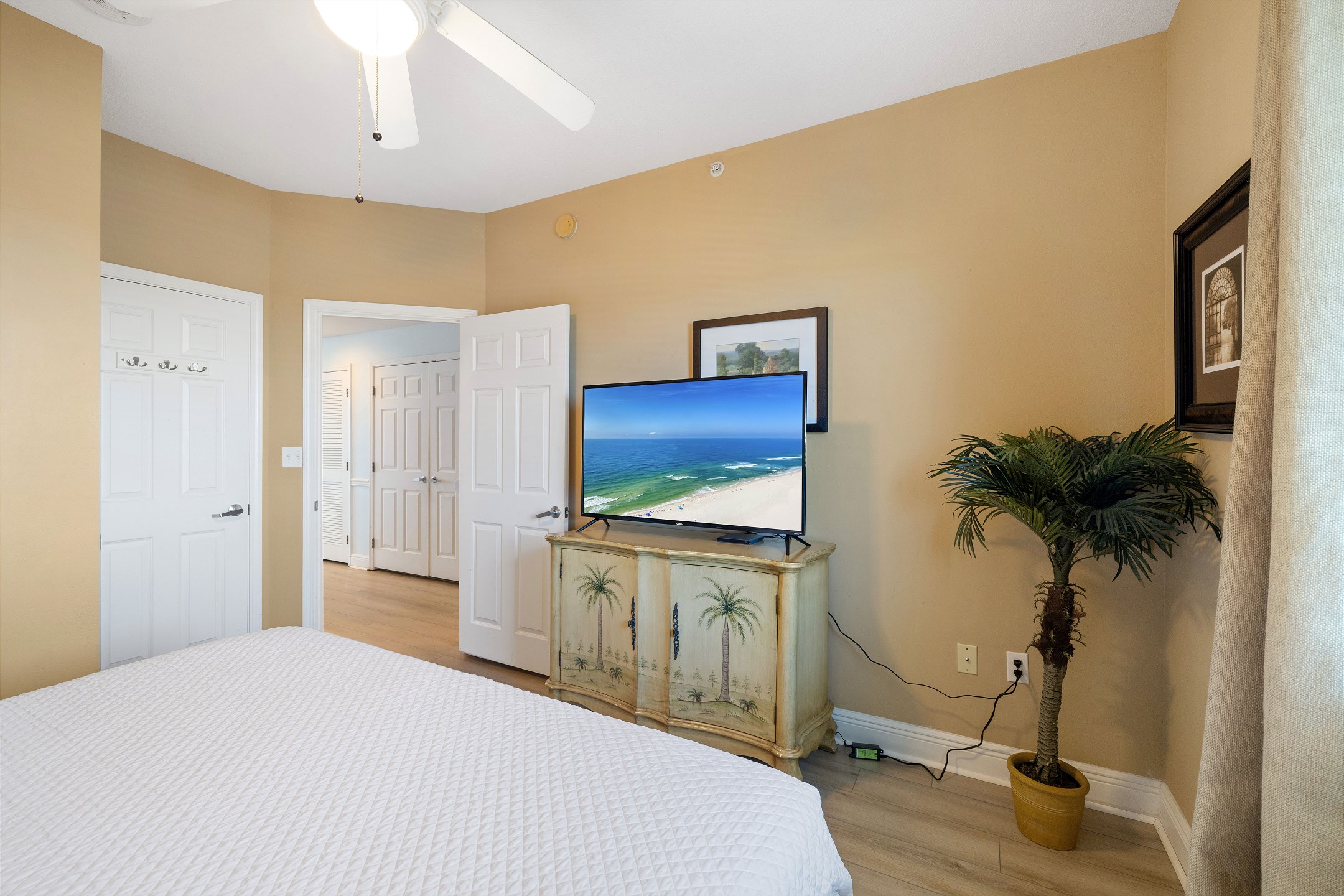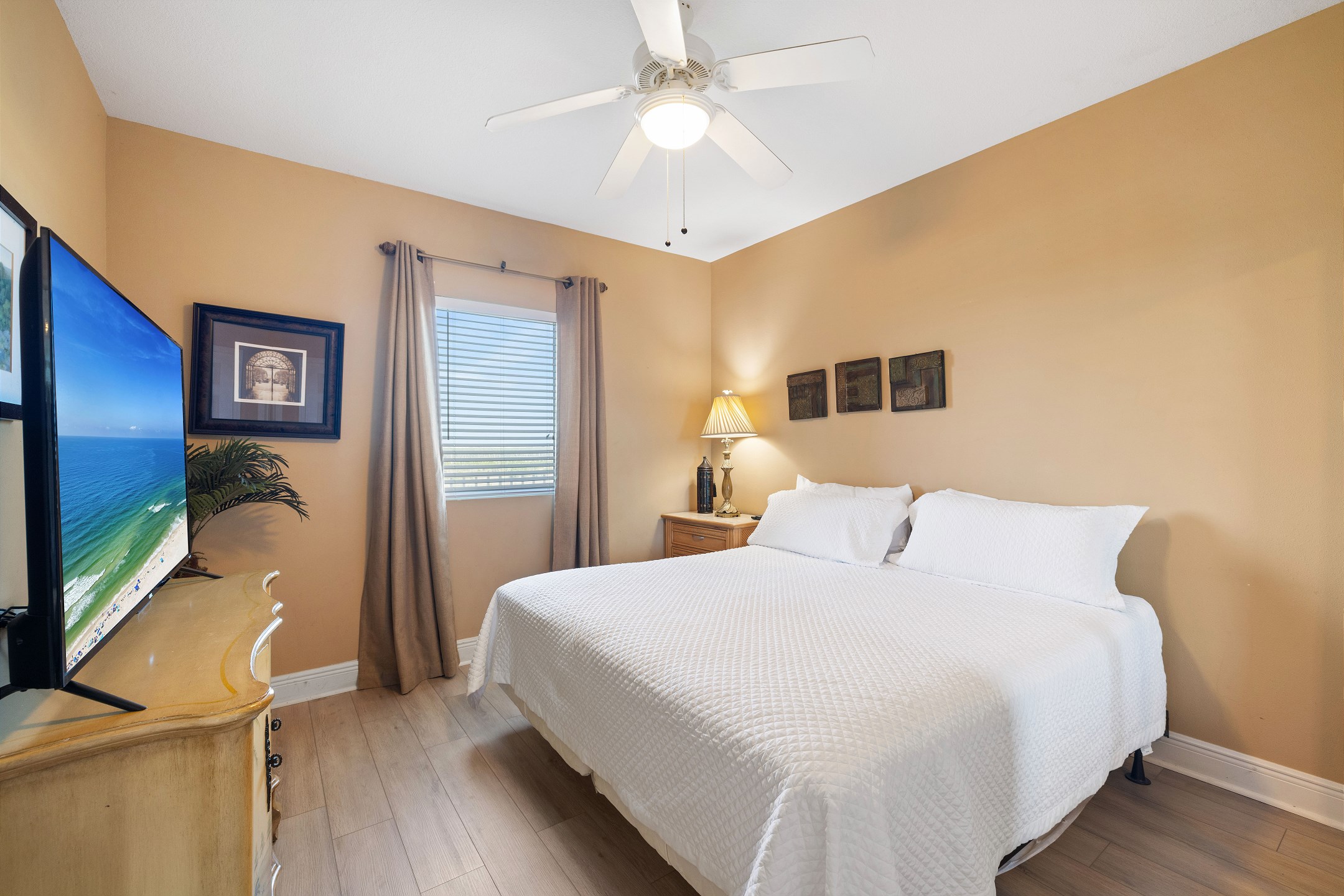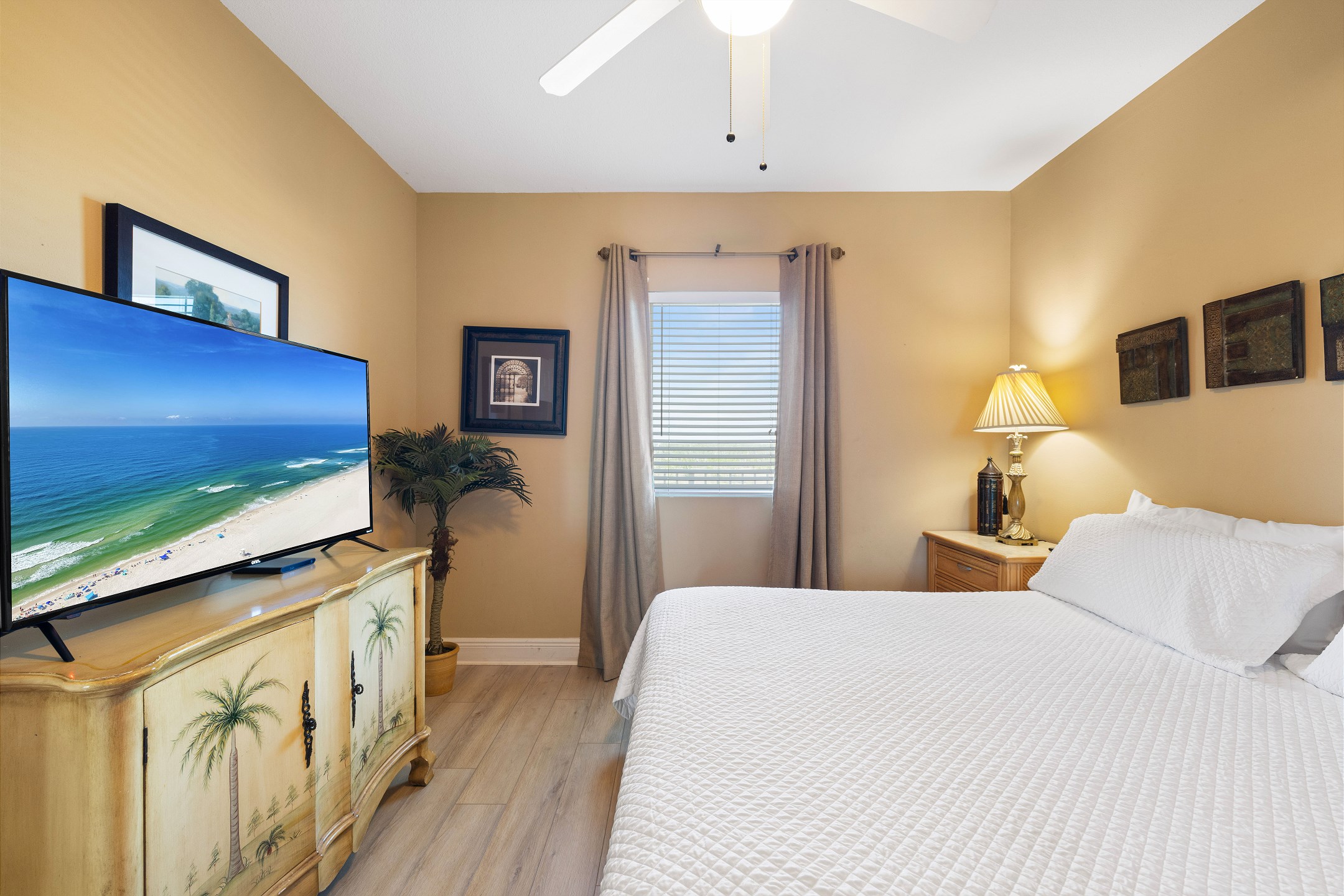 Step into the Primary suite, where you'll find a spacious King-sized bed inviting you to unwind and relax after a day of sun-soaked adventures. Enjoy direct access to the large private balcony, where you can sip your morning coffee while soaking in the panoramic views of the Gulf. Indulge in the ensuite bathroom, complete with a rejuvenating Jacuzzi tub and a luxurious walk-in shower, offering the ultimate in relaxation and tranquility.