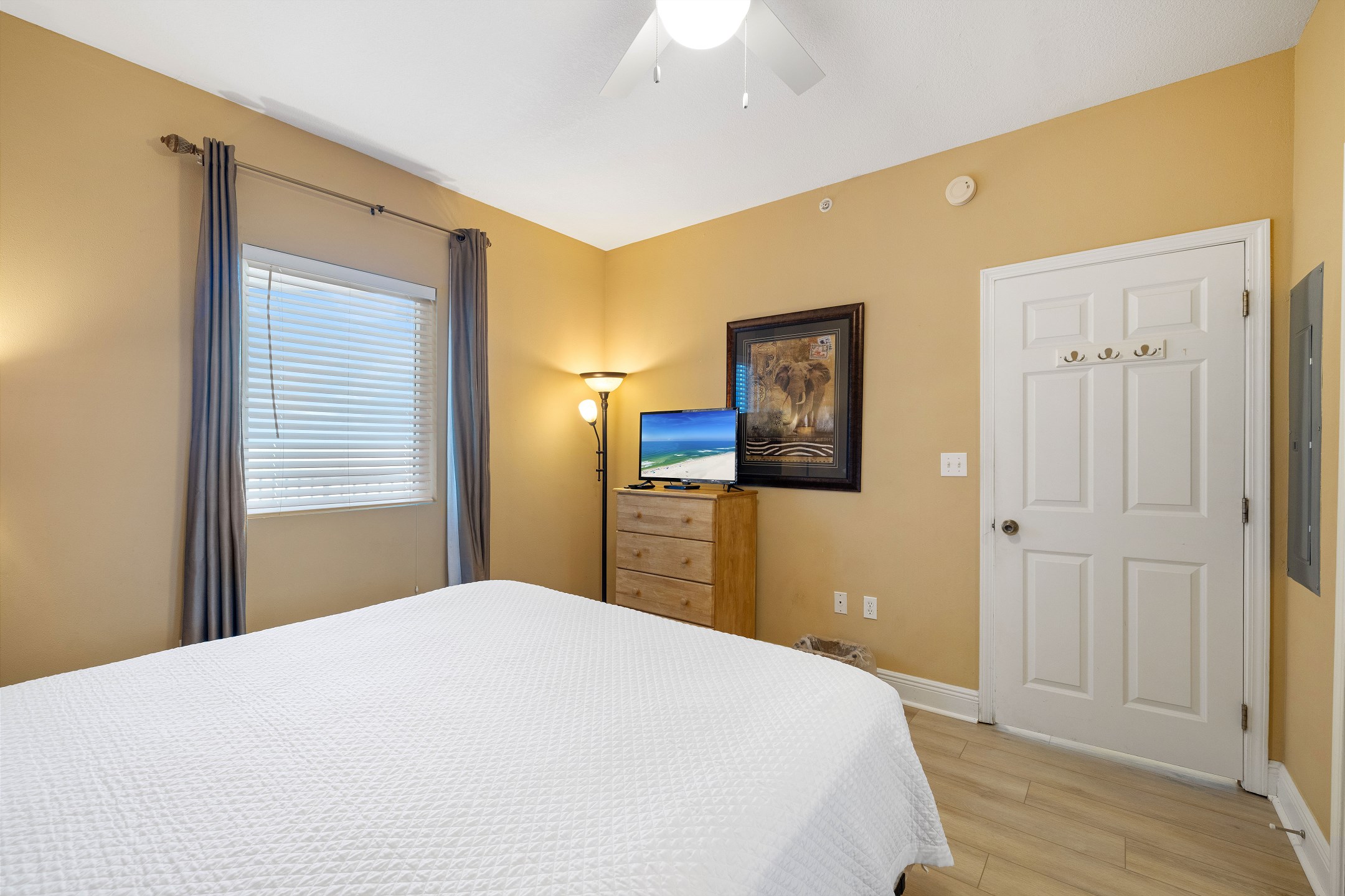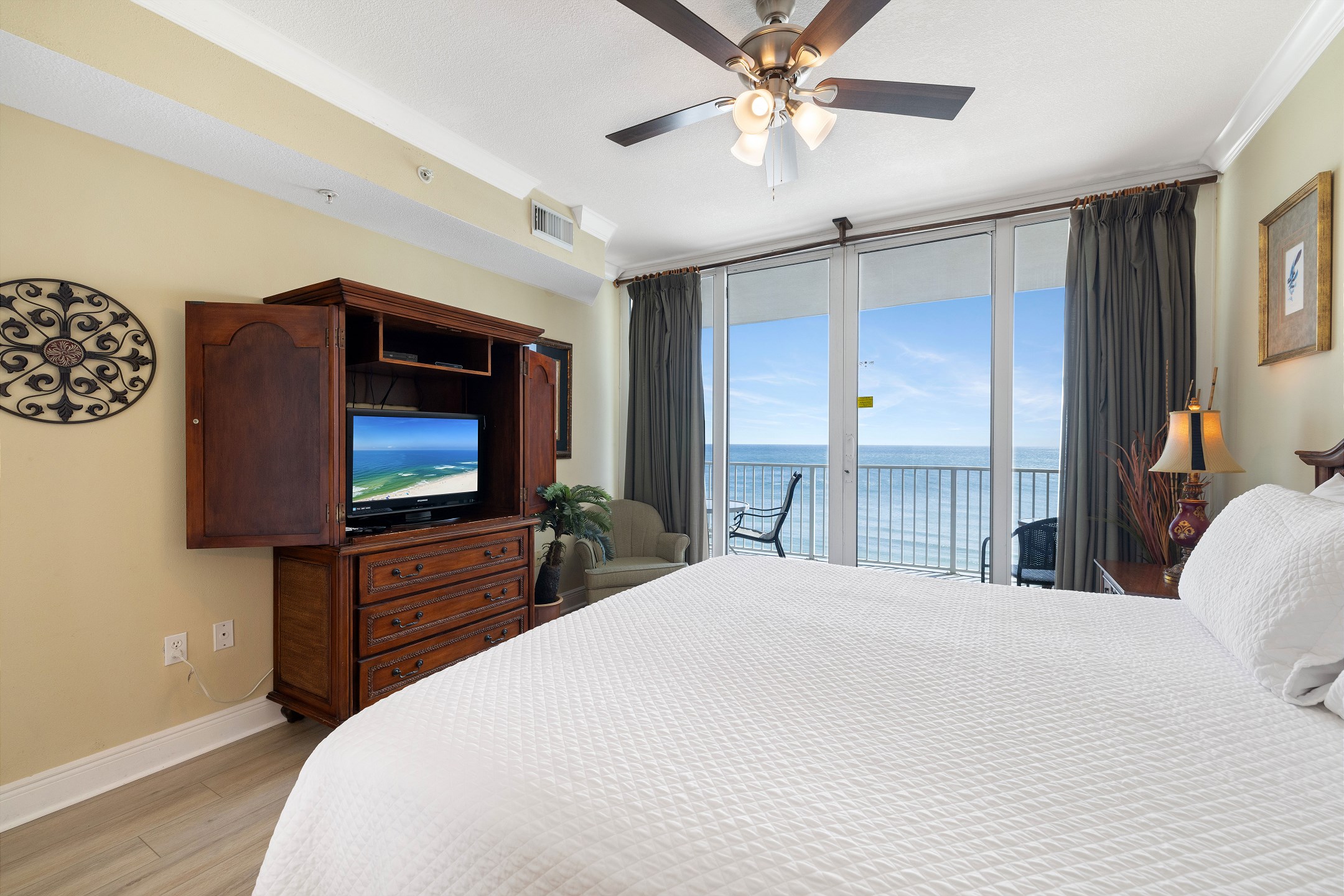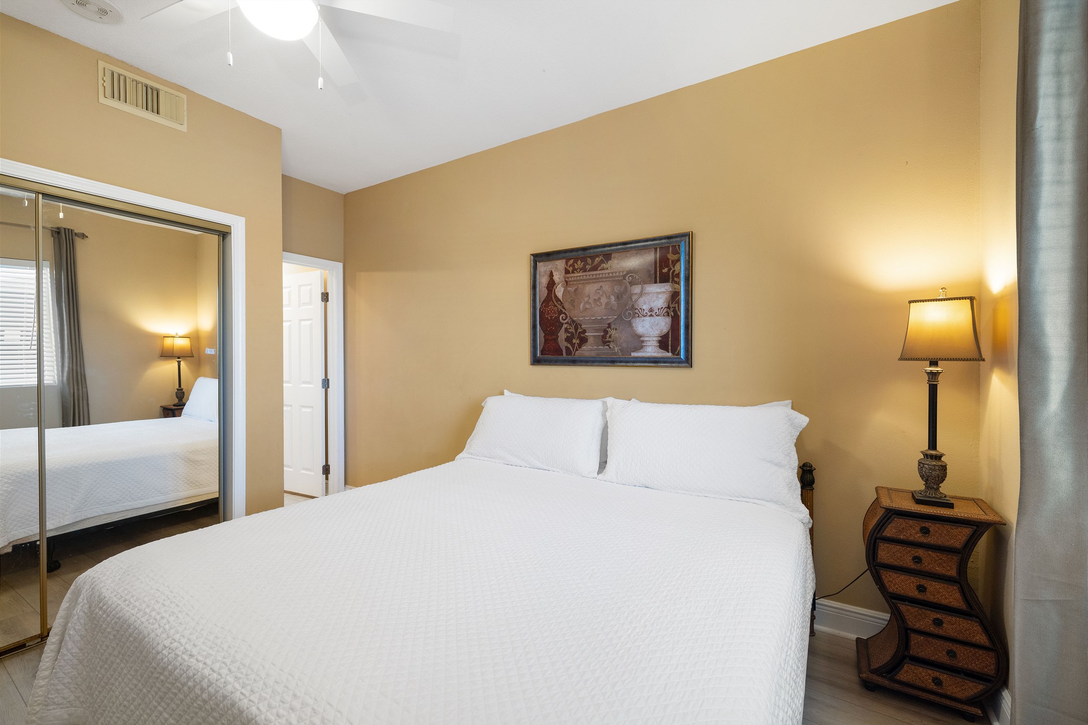 Step into the Primary suite, where you'll find a spacious King-sized bed inviting you to unwind and relax after a day of sun-soaked adventures. Enjoy direct access to the large private balcony, where you can sip your morning coffee while soaking in the panoramic views of the Gulf. Indulge in the ensuite bathroom, complete with a rejuvenating Jacuzzi tub and a luxurious walk-in shower, offering the ultimate in relaxation and tranquility.