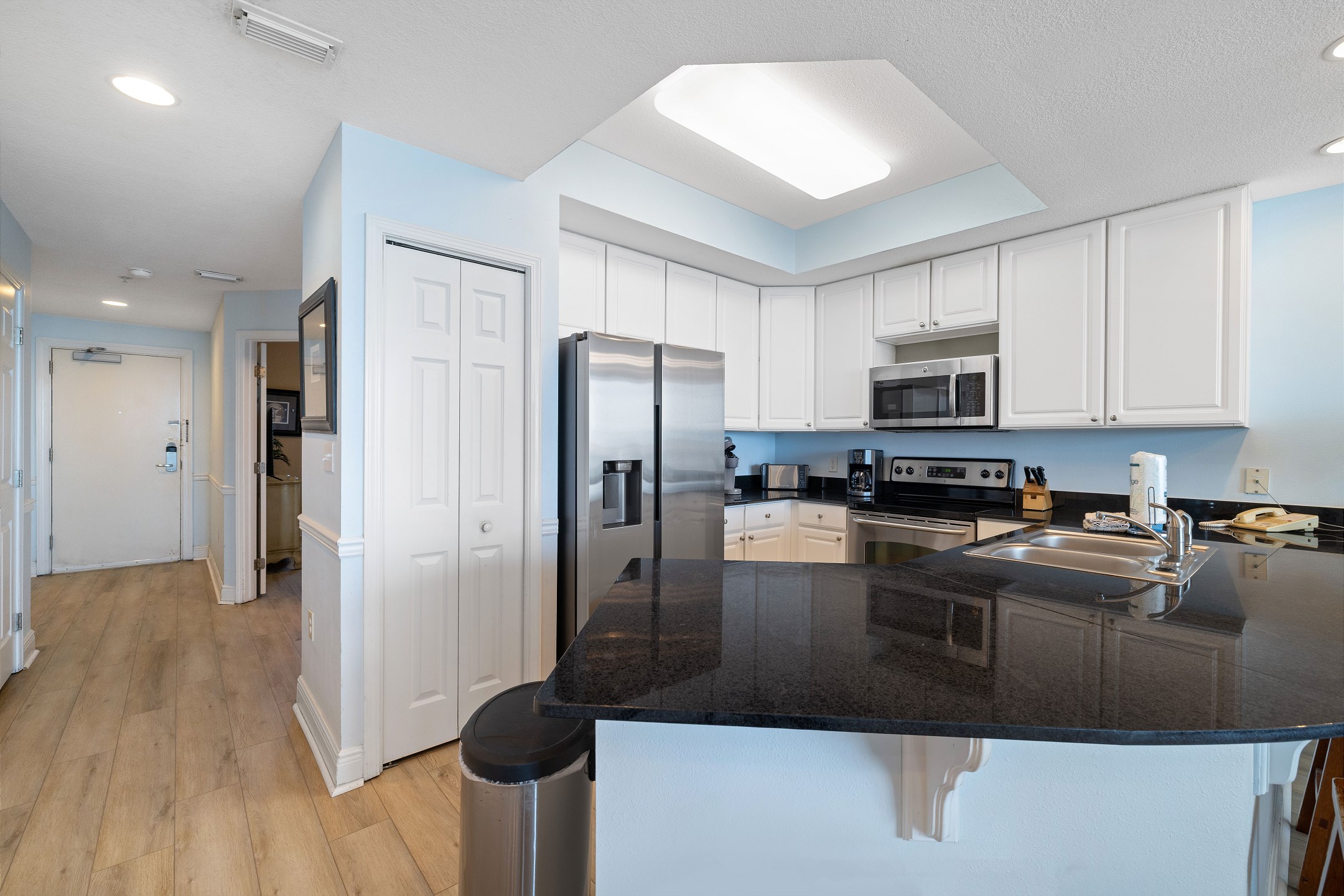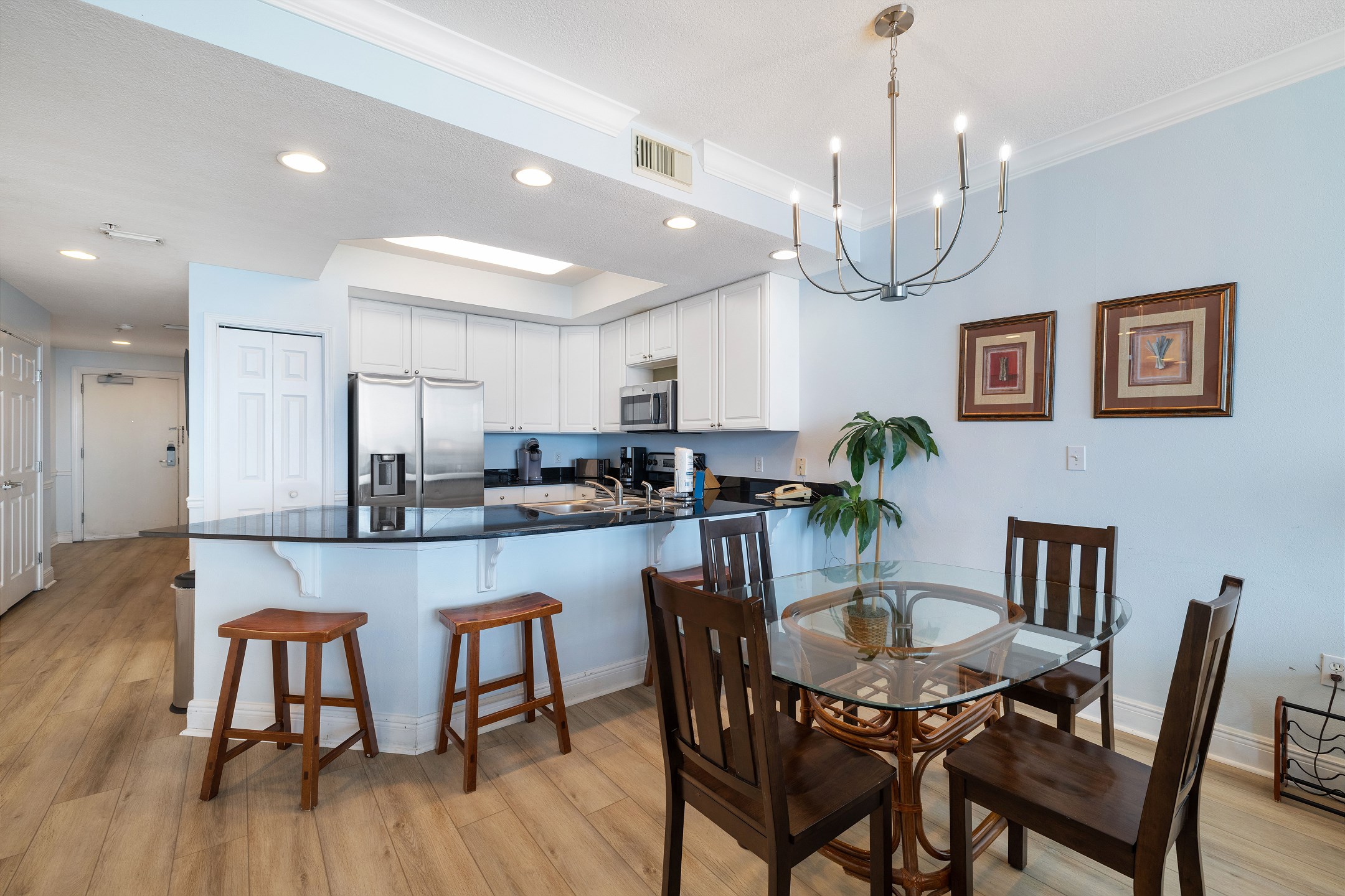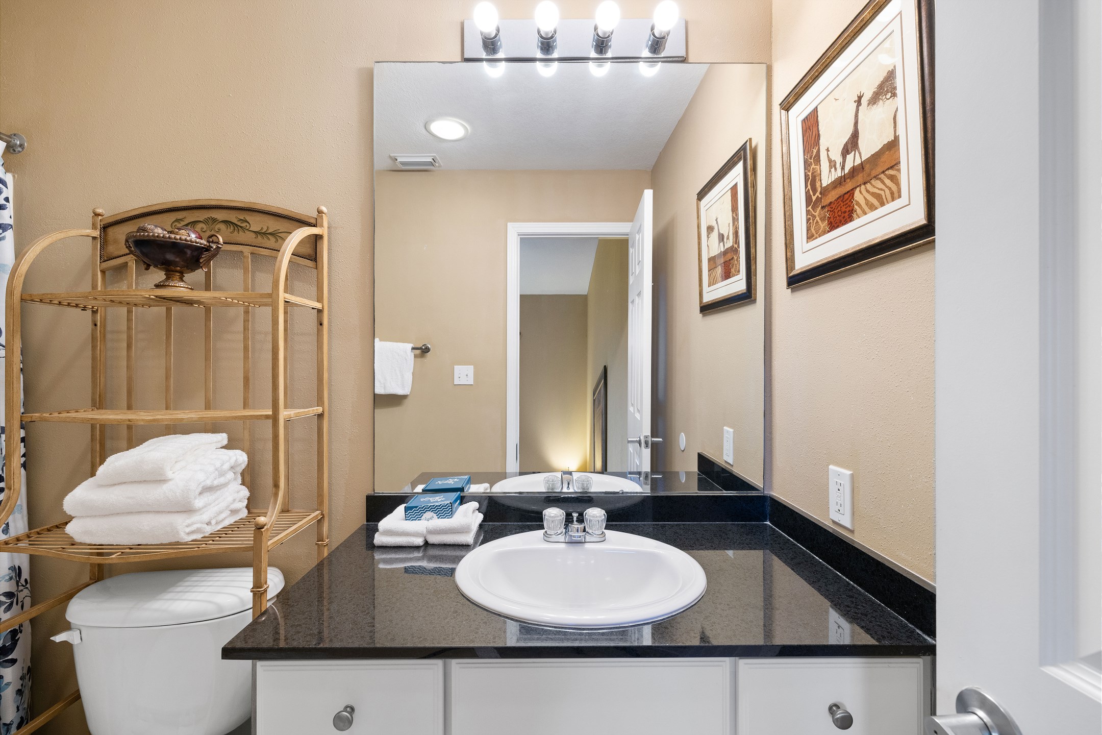 Prepare delicious meals in the fully equipped kitchen, complete with stainless steel appliances, granite countertops, and a large breakfast bar where you can enjoy casual meals with your loved ones.