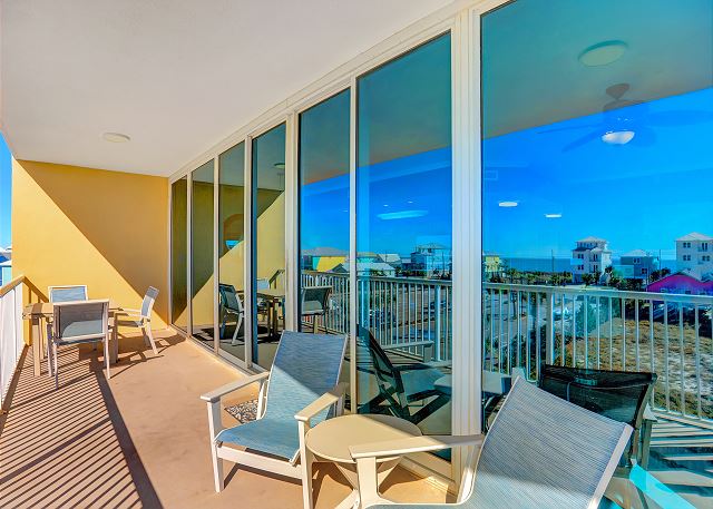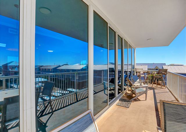 We had problems with outside furniture blowing again glass balcony windows and lots of banging throughout the high winds and storming. Storms blew 3 of the chairs off the balcony. So I was afraid to open it and move the table until wind calmed down. The cables from the roof got twisted up and banged again master bedroom balcony wall throughout the night Friday and Sat. I do understand it was the stormy weather. Which You have no control over, but was not a relaxing vacation at all. Nothing to do with the rental but my van got lots of hail damage. So this was our worst vacation to date.John W. - Posted: 4/20/2021