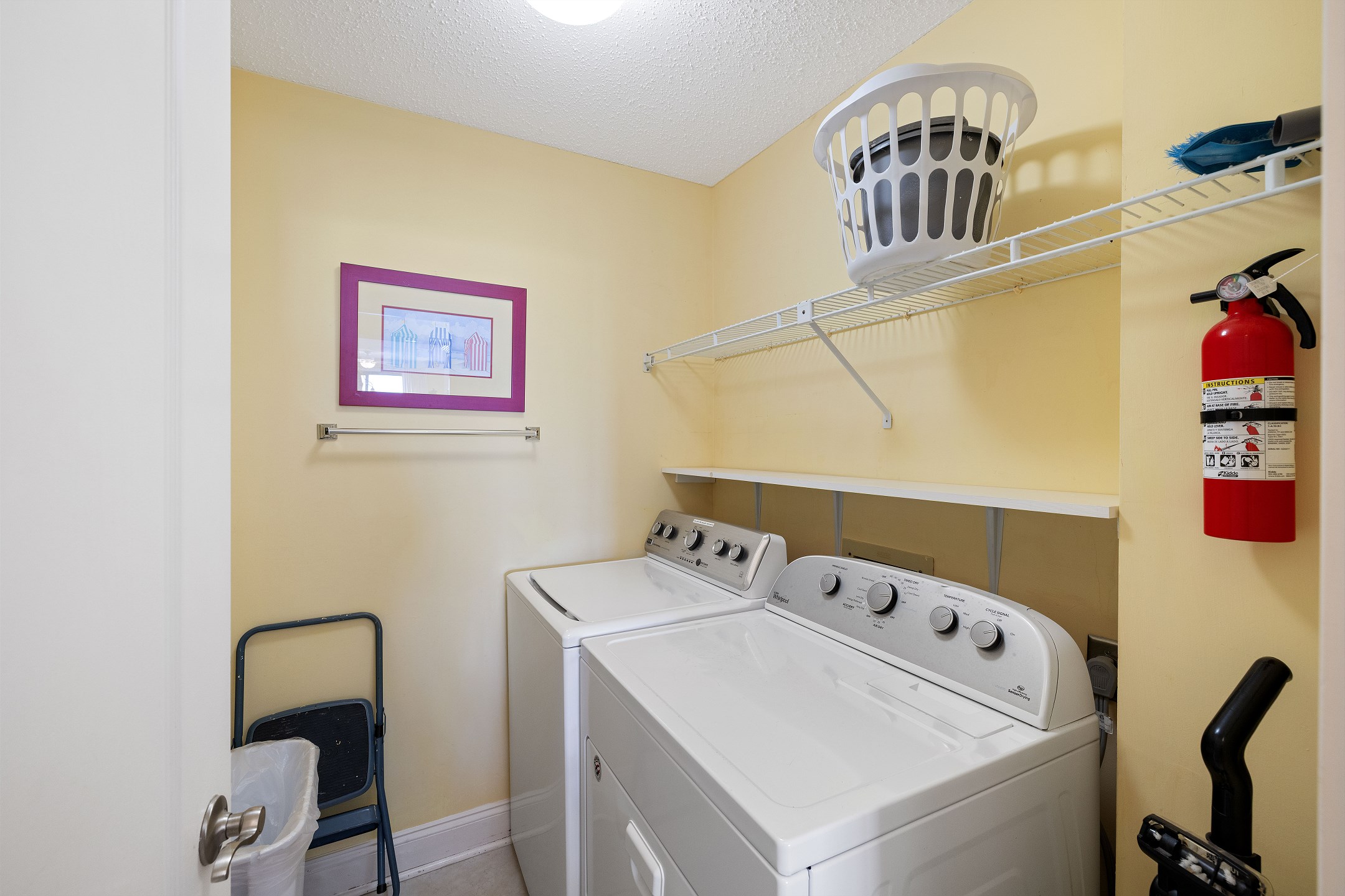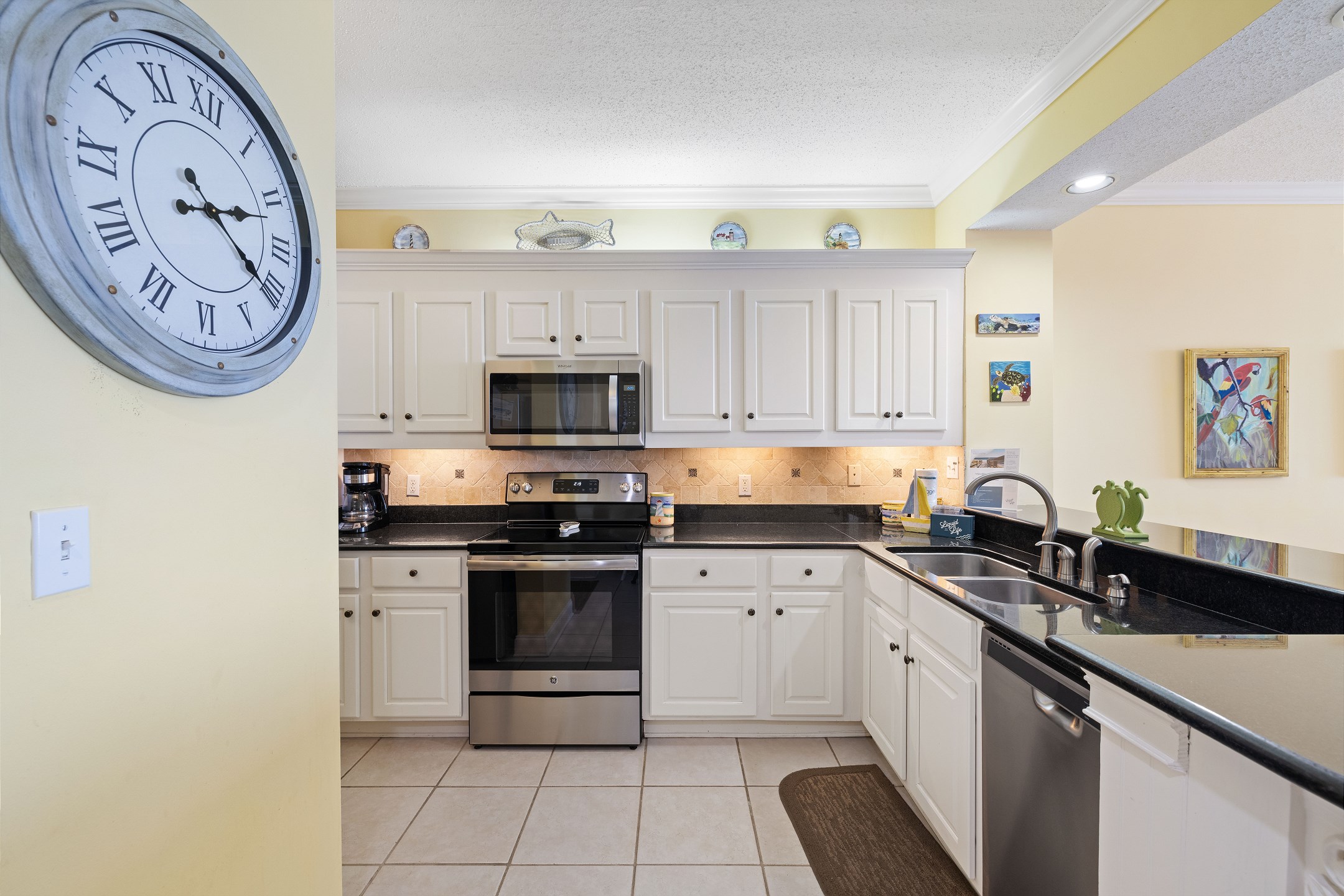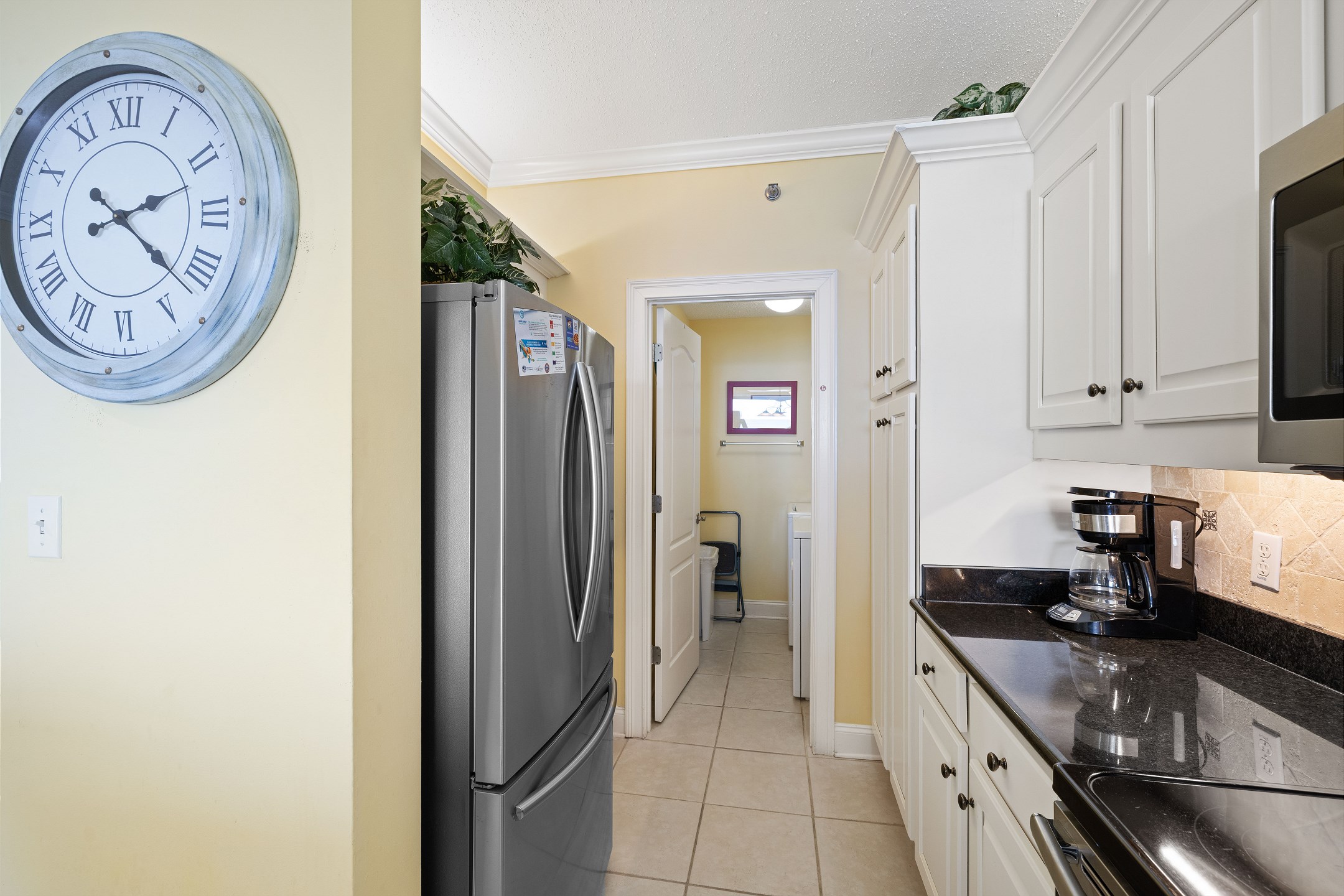 The fully equipped kitchen includes everything you need to prepare meals at home, along with a wet bar for added convenience. A full-sized washer and dryer make longer stays effortless and comfortable.