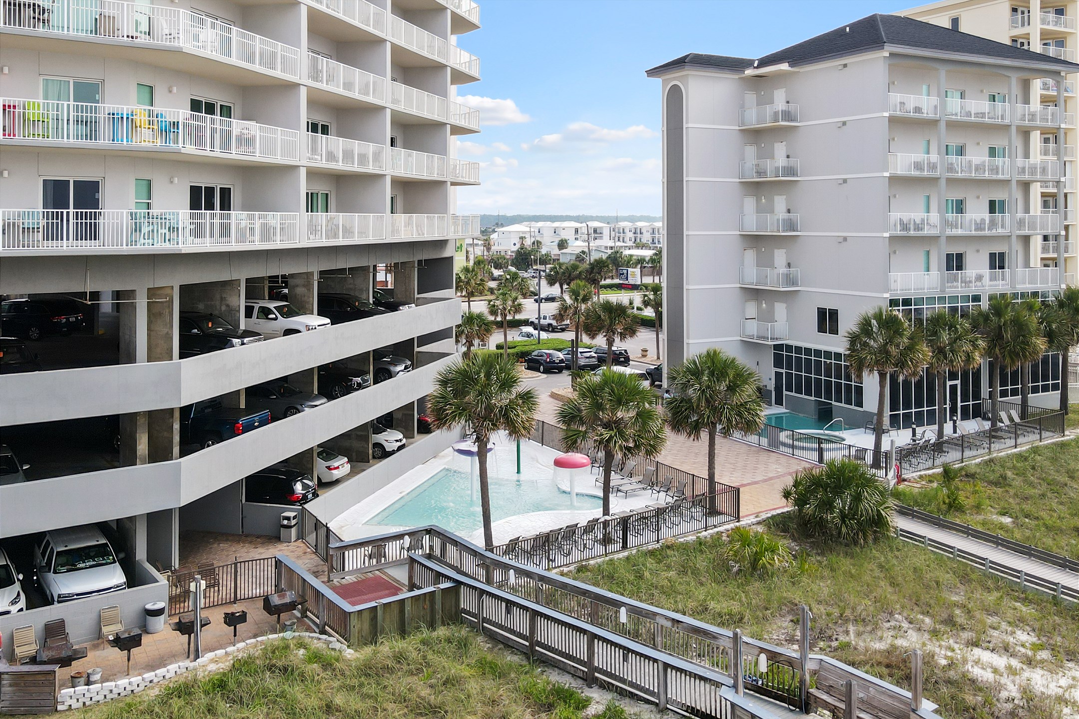 Seawind is a welcoming beachfront complex, offering a range of excellent amenities for a relaxing and enjoyable vacation. Guests can indulge in the unique indoor/outdoor swim-through pool, unwind in the hot tub, or have fun with the family in the zero-entry kiddie pool and splash pad. The complex also features a well-equipped fitness center for those who wish to stay active. For outdoor dining and socializing, there's a convenient grilling area.