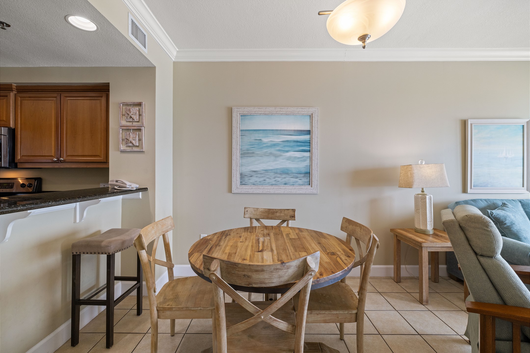 Prepare delicious meals in the fully equipped kitchen, featuring granite countertops, stainless steel appliances, and ample cabinet space for all your culinary needs. Share meals with loved ones at the dining table or savor a leisurely breakfast on the spacious private balcony, where gentle breezes and stunning Gulf views create the perfect backdrop for dining.