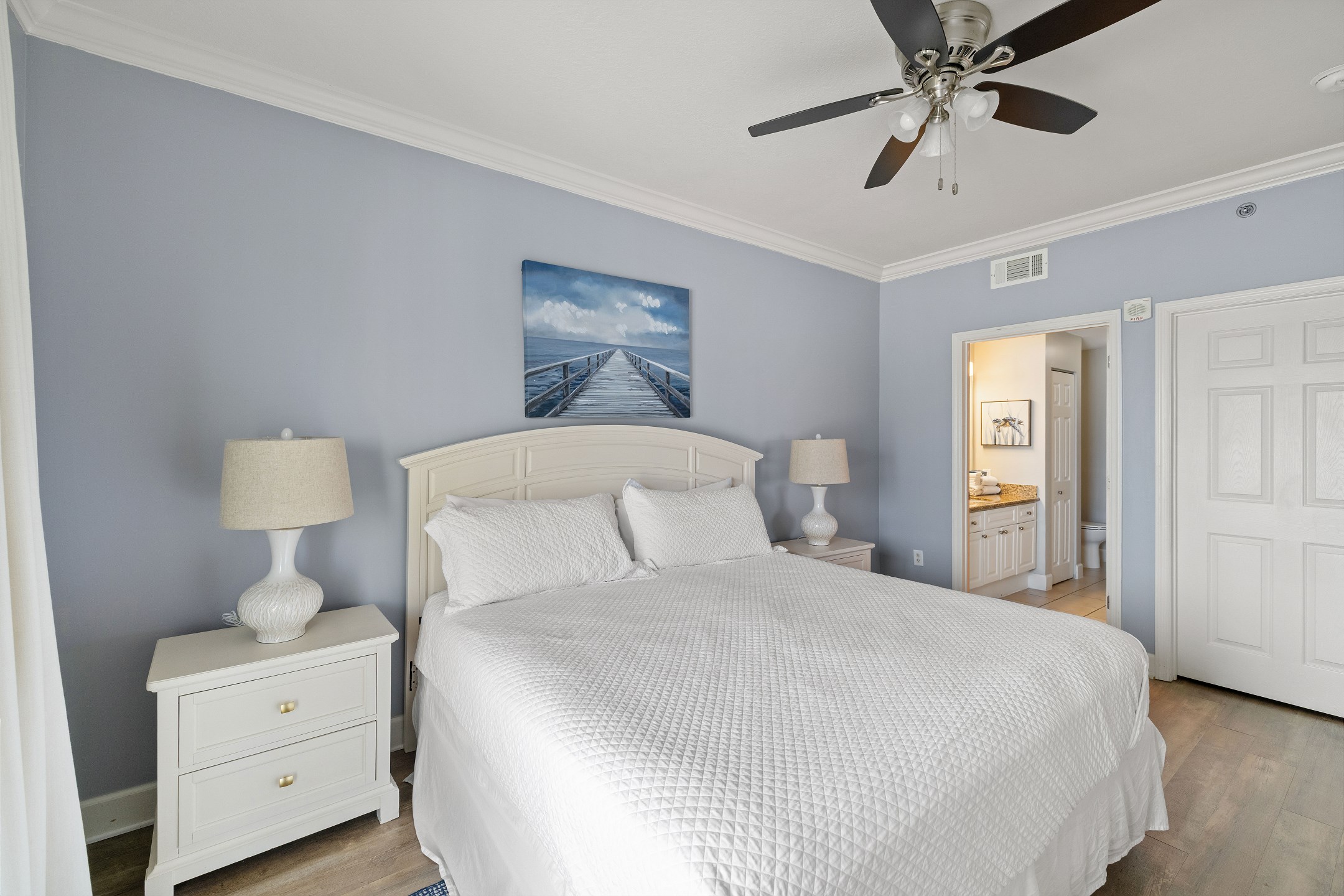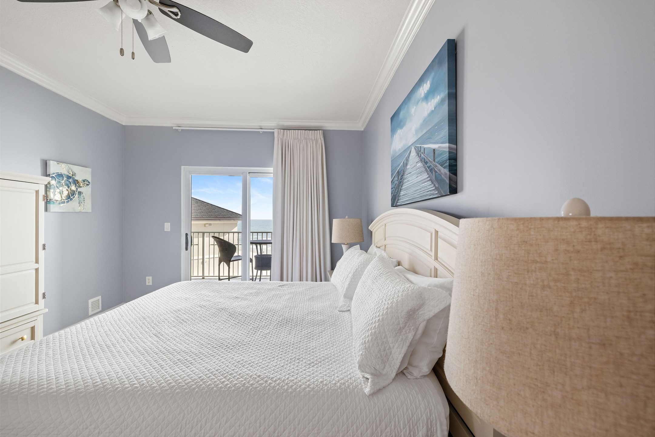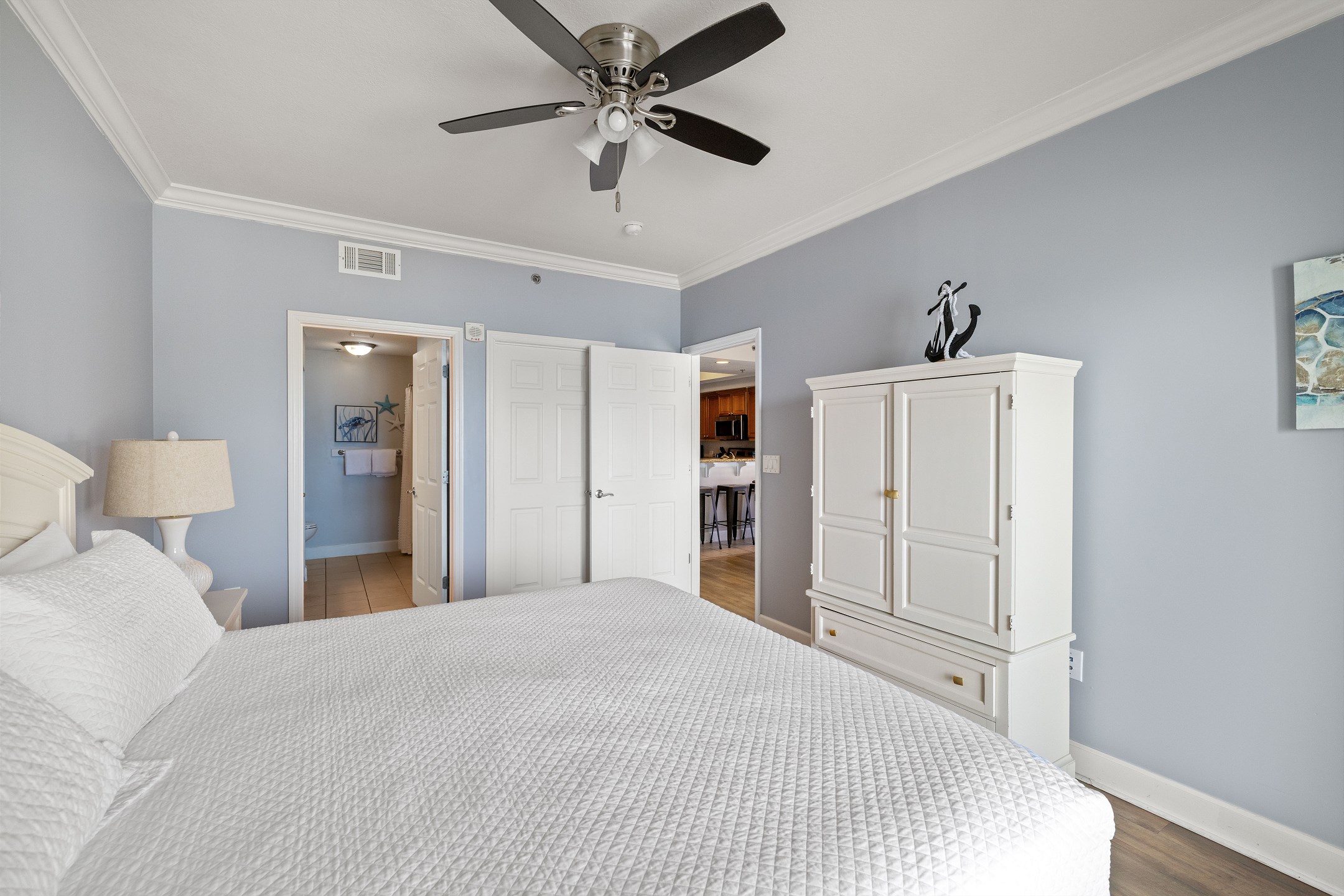 Step inside and immerse yourself in the serenity of the Primary suite, featuring a plush King bed, walk-in closet, flat-screen TV, and private balcony access. Indulge in relaxation as you unwind in the ensuite bathroom, complete with modern amenities and a soothing ambiance.