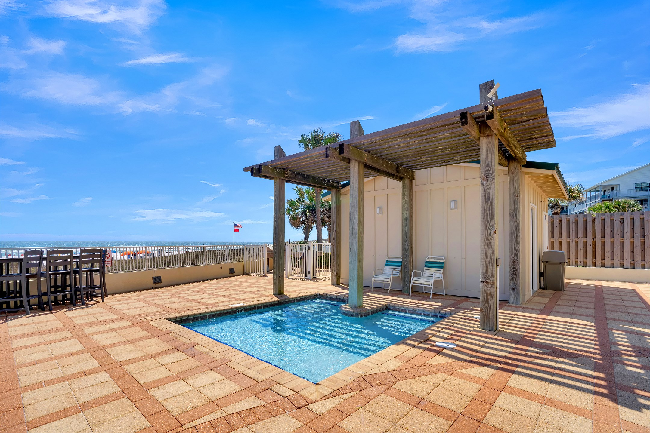 Prepare delicious meals in the fully equipped kitchen, complete with granite countertops and stainless steel appliances, and dine together at the dining table or breakfast bar. After a day of beach fun, unwind in the spacious living room, which boasts a large flat-screen TV and a comfortable sofa sleeper for additional guests.