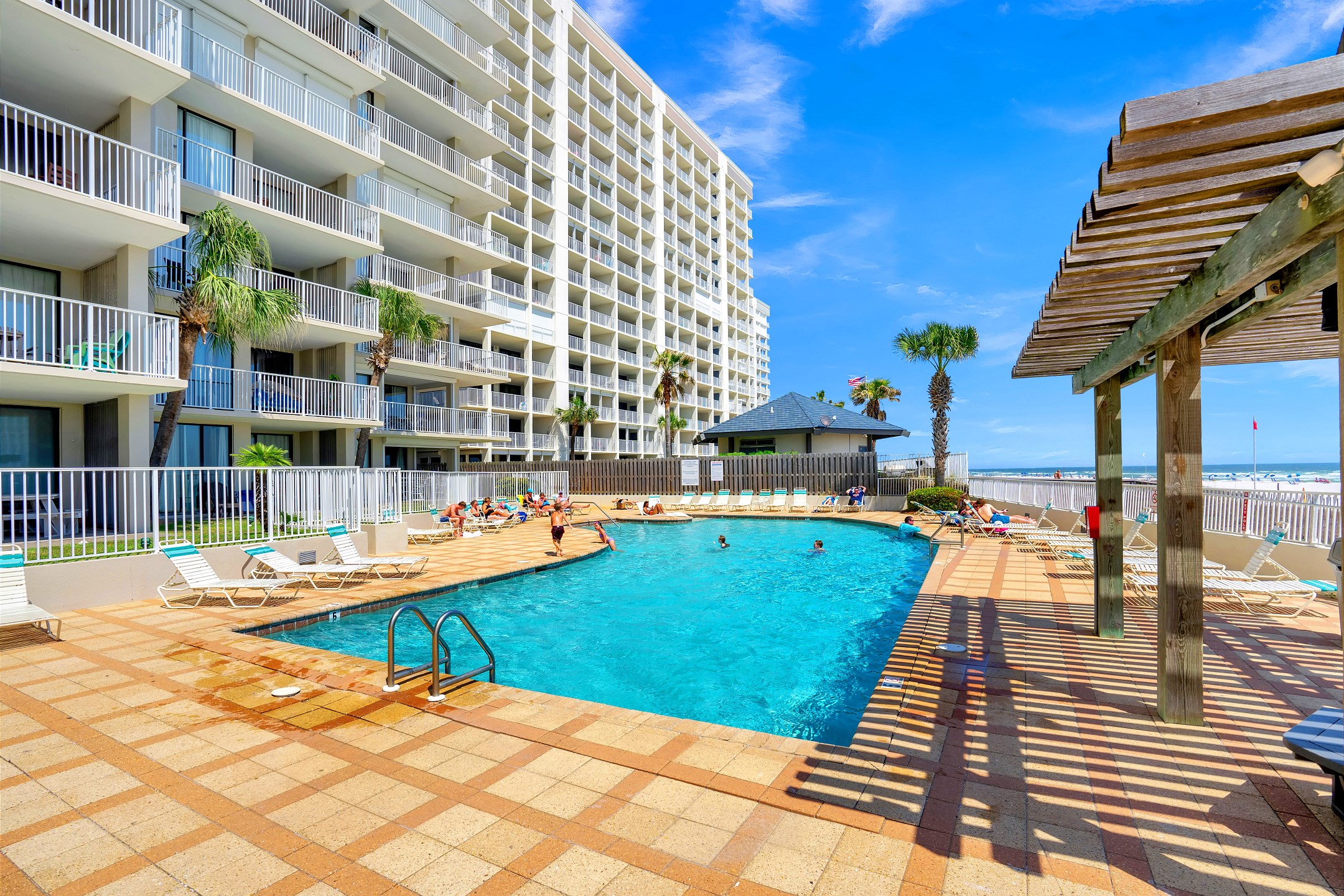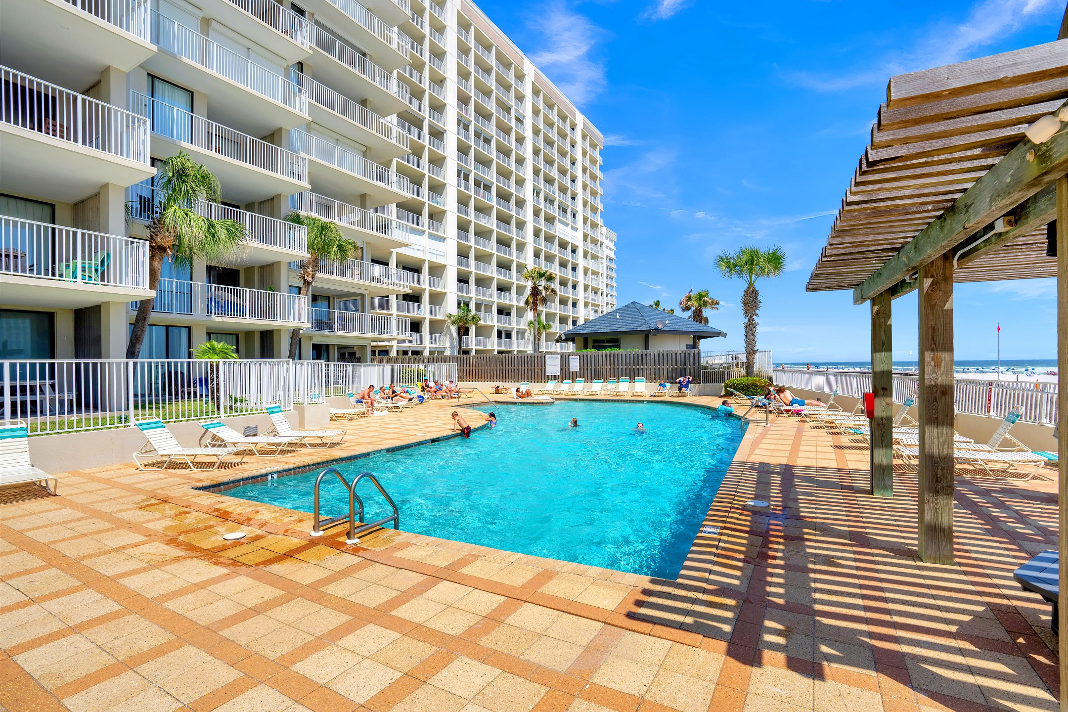 4 adults & 2 children stayed here, plenty of room. So nice to be able to look out the window and see the beach!! Saw dolphins swimming by several times. My grandson loved the pirate ship, and hearing the cannon shoot off. Would definitely recommend & hopefully return again in the future.