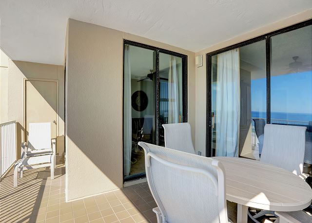 Start your day on the spacious balcony, enjoying your morning coffee while listening to the waves and taking in the sights and sounds of the beach.