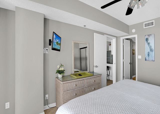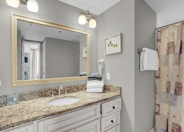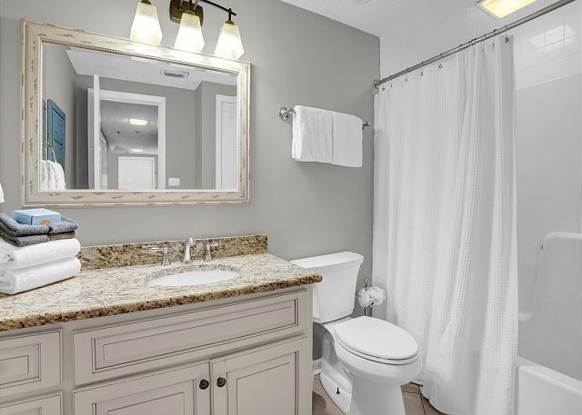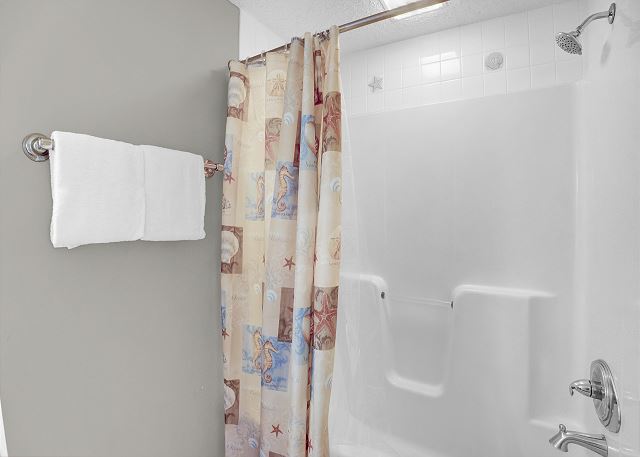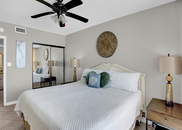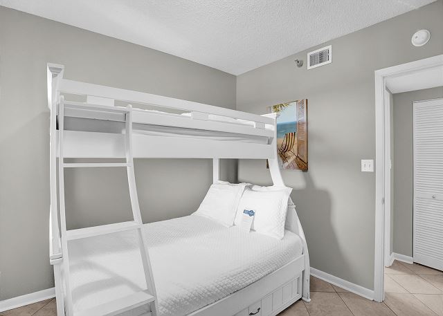The primary bedroom features a king bed and private balcony access, while the second bedroom has a queen bed. The third bedroom is perfect for families, offering a twin-over-full bunk bed. With beautiful beach views and everything you need for a relaxing stay, Shoalwater 802 is the ultimate vacation retreat.