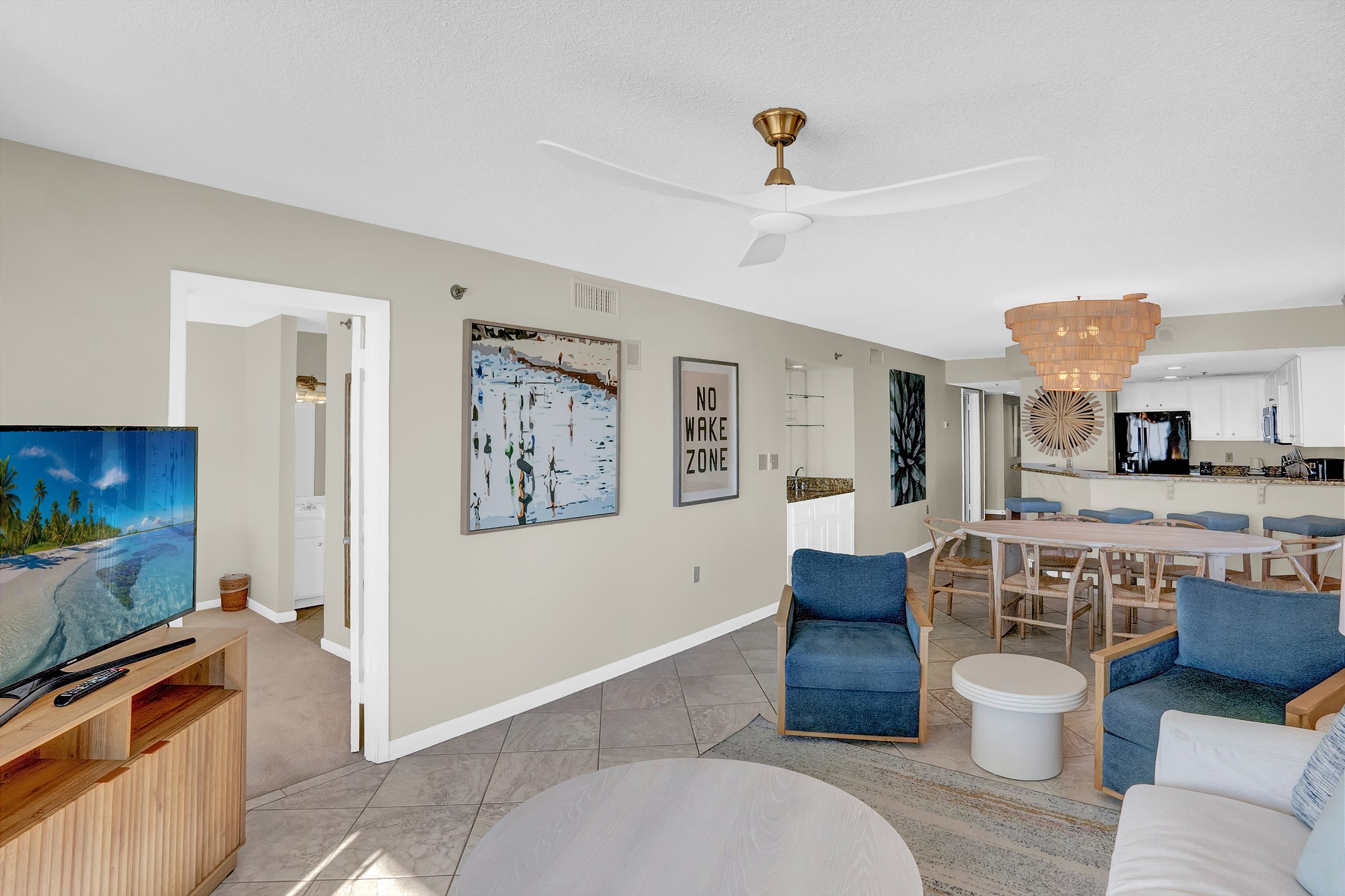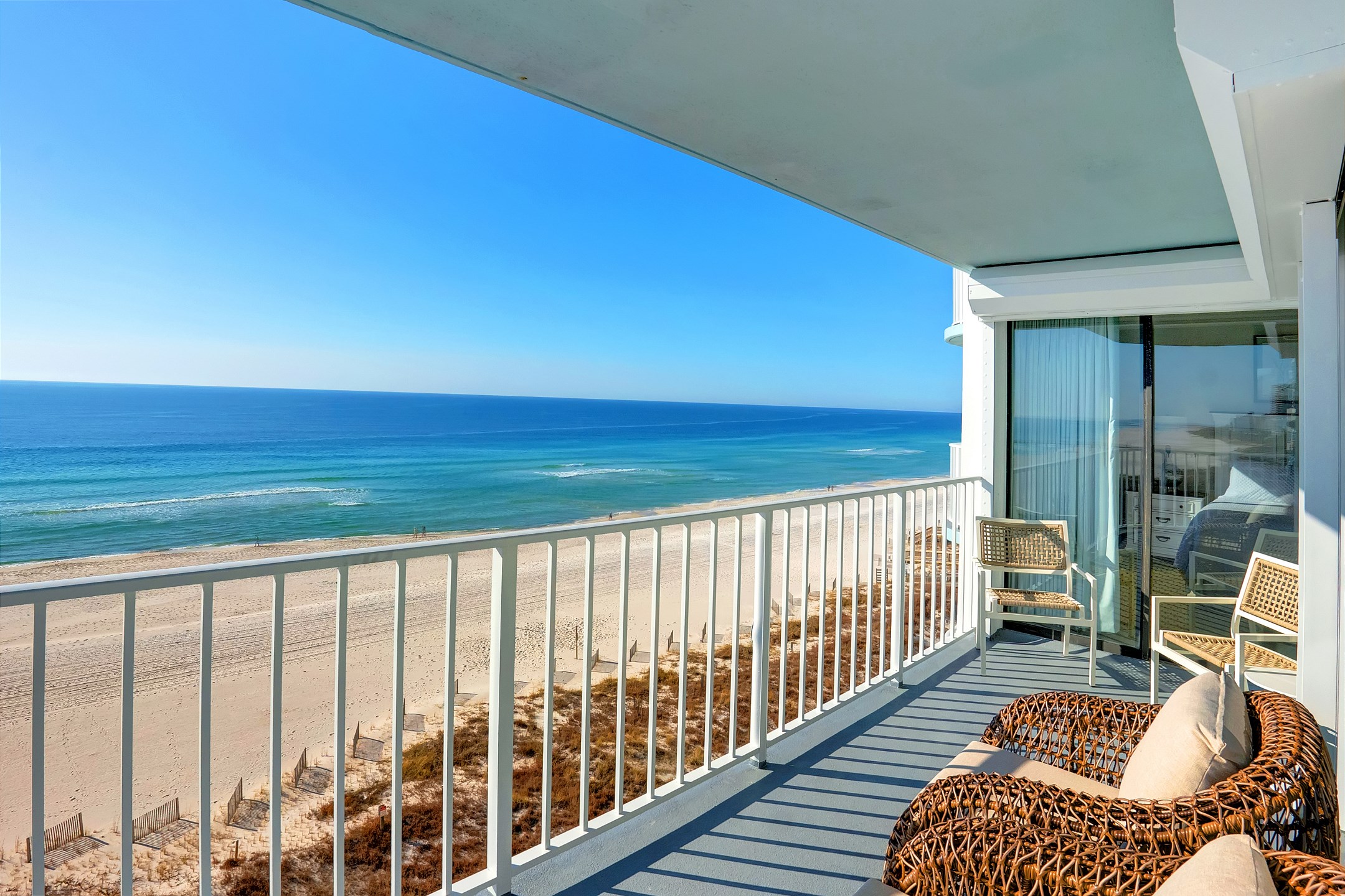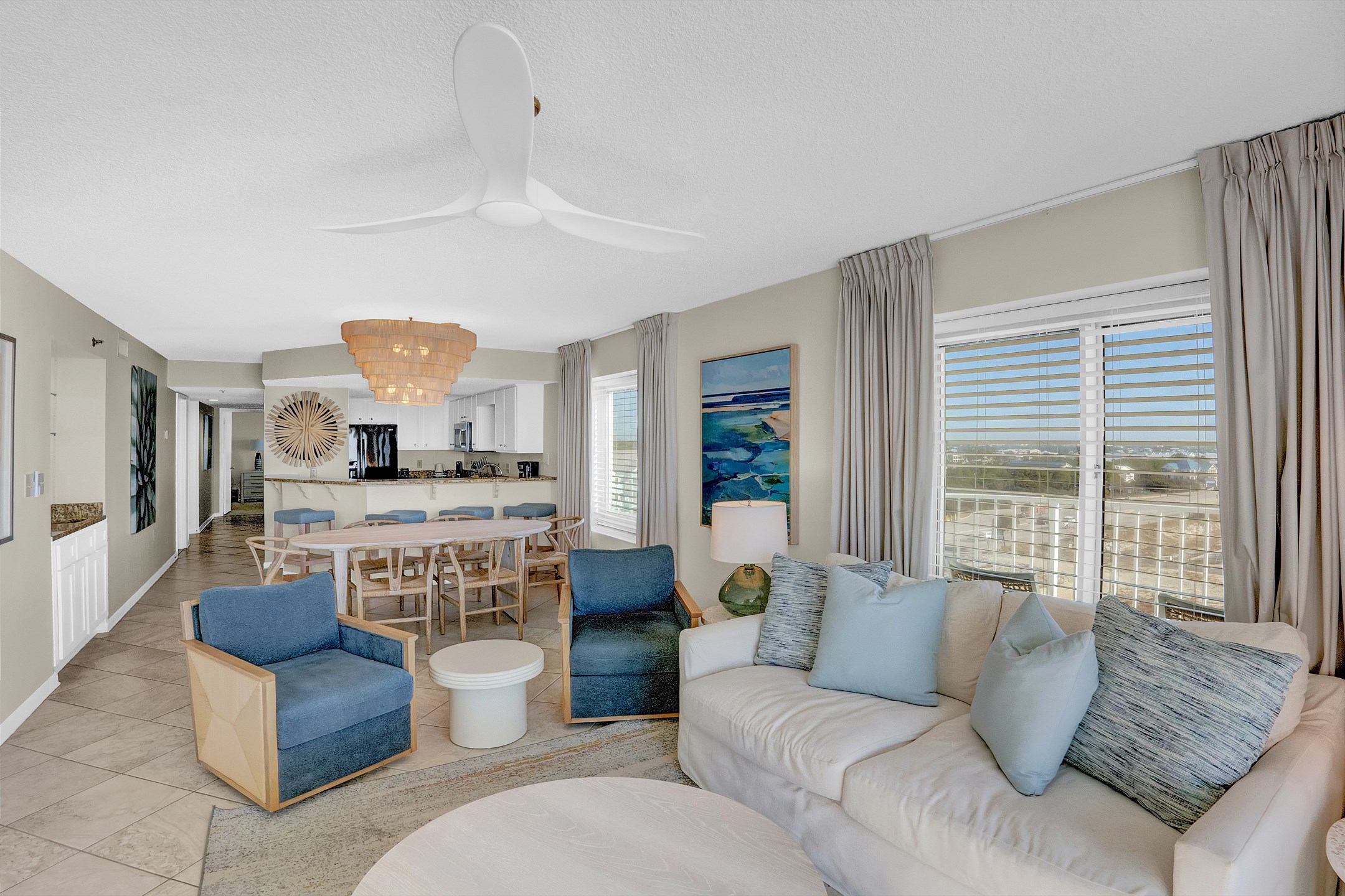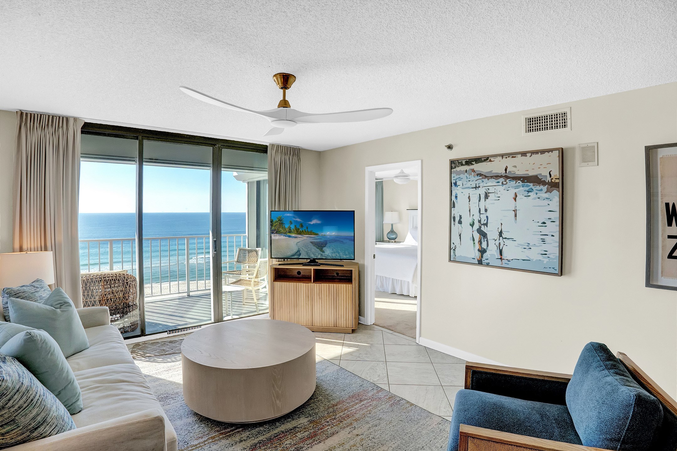 The living room, a focal point for relaxation and social gatherings, provides direct access to the private balcony. Here, breathtaking views of the Gulf unfold before your eyes, creating a picturesque backdrop for your stay. Whether you're watching the sunrise with your morning coffee or toasting to the sunset, the balcony is the perfect spot to savor the beauty of the beach.