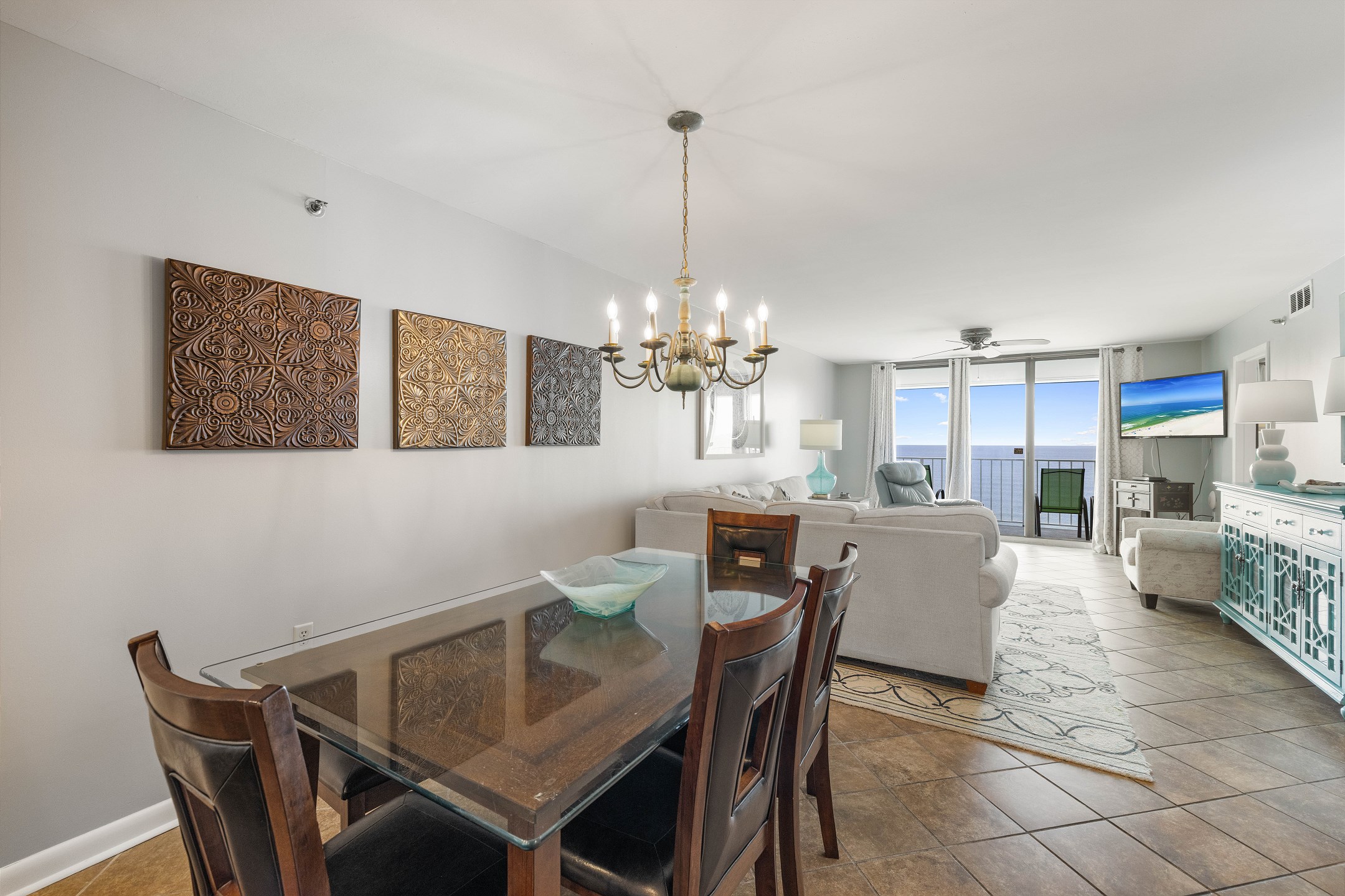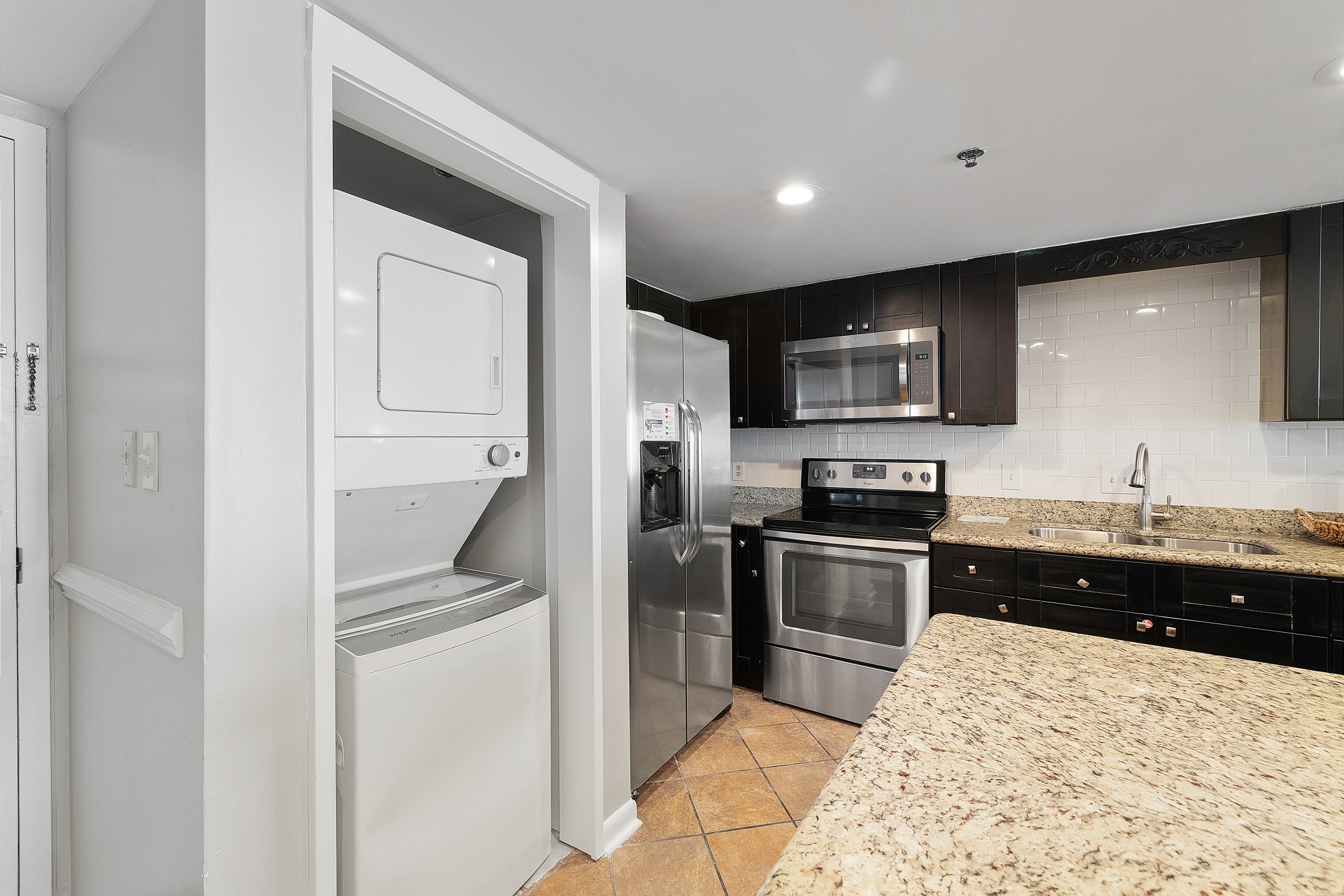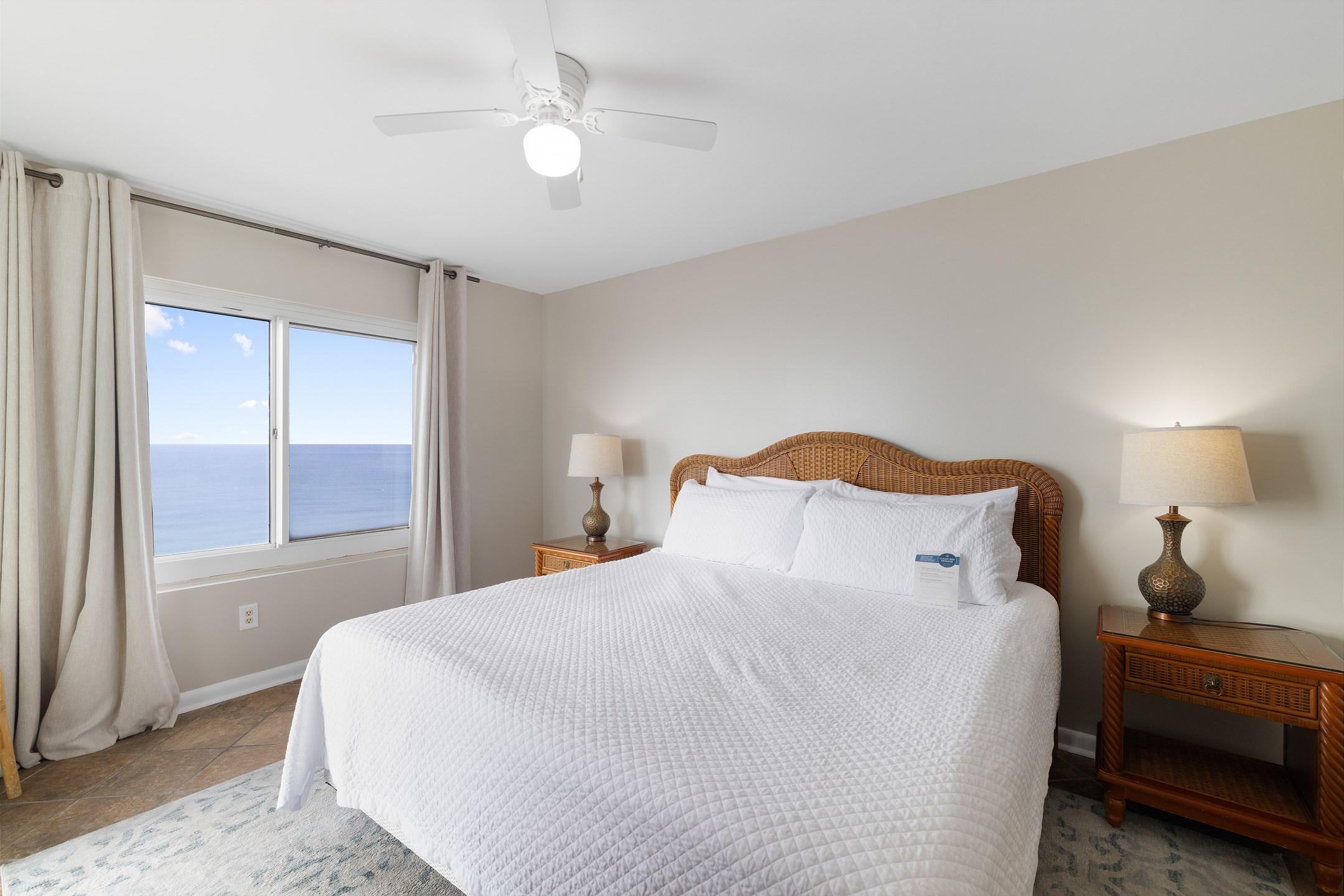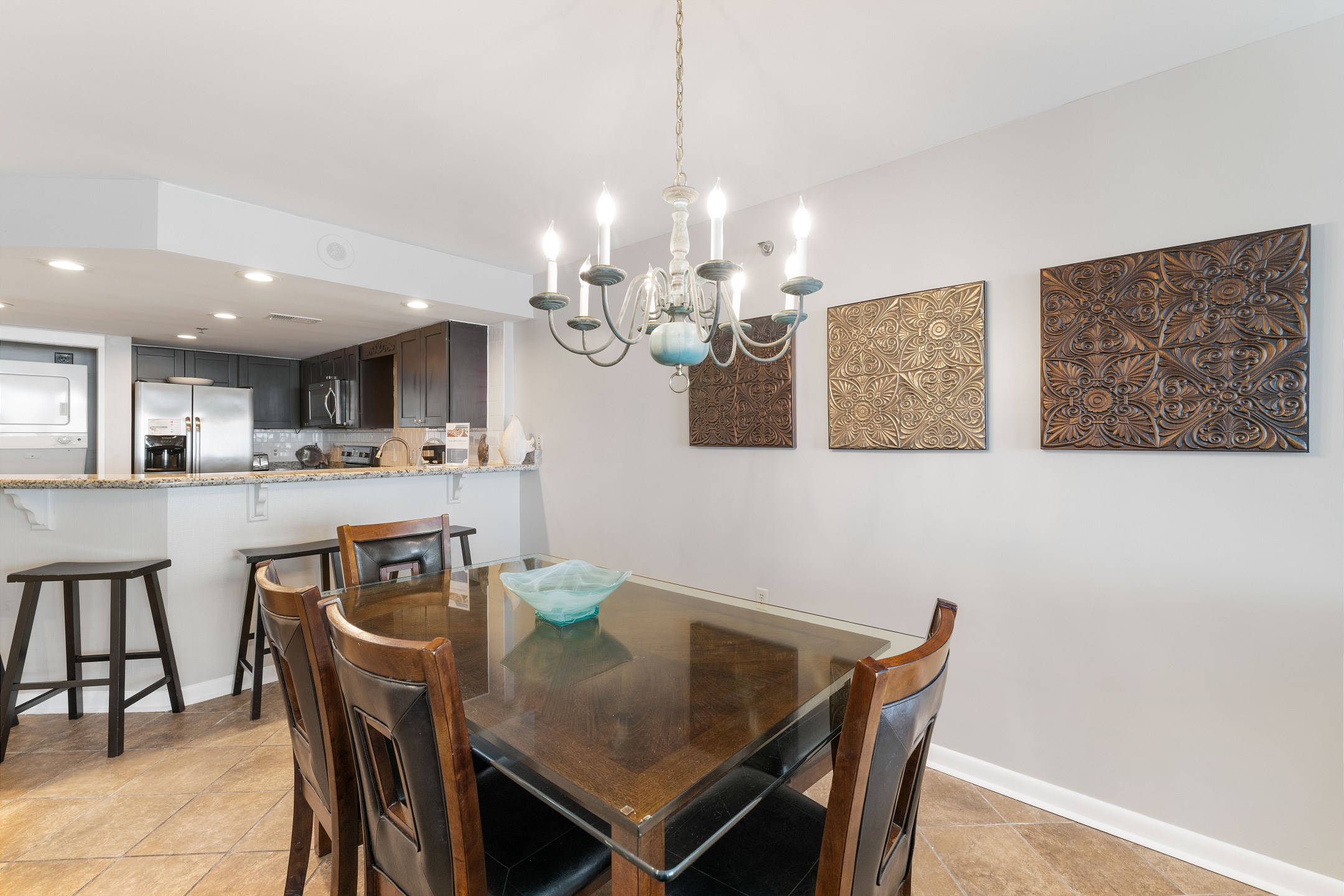 Elegance and comfort extend throughout the condo with tile floors, providing a cool respite from the beach's heat. Additionally, a washer and dryer add the convenience of home, making your stay both relaxing and practical.