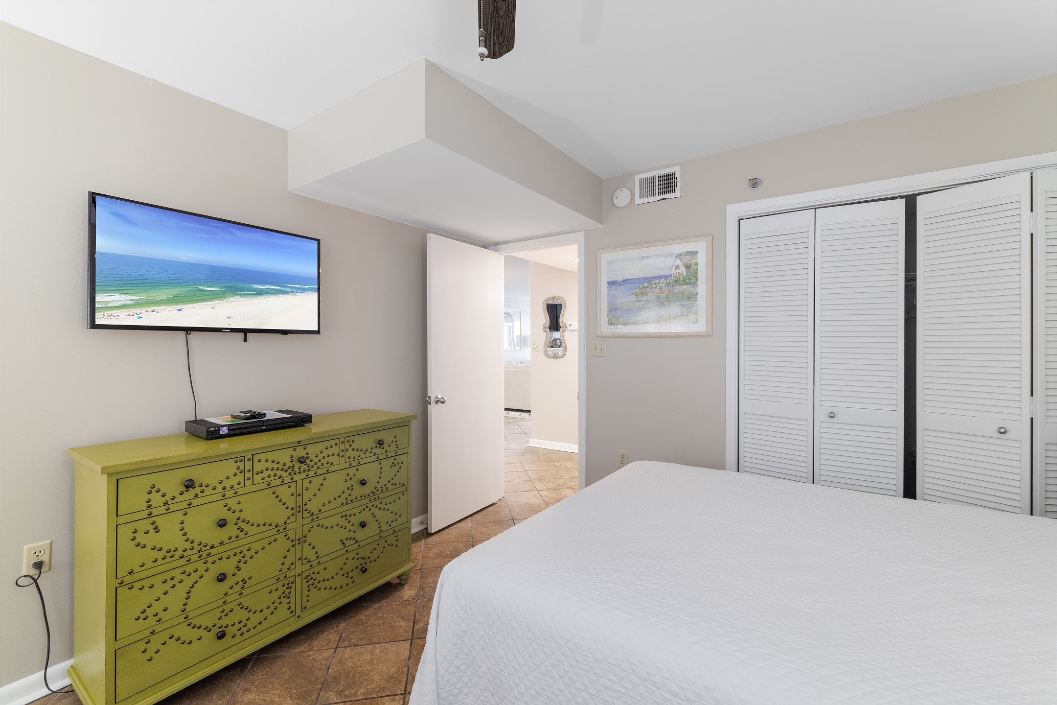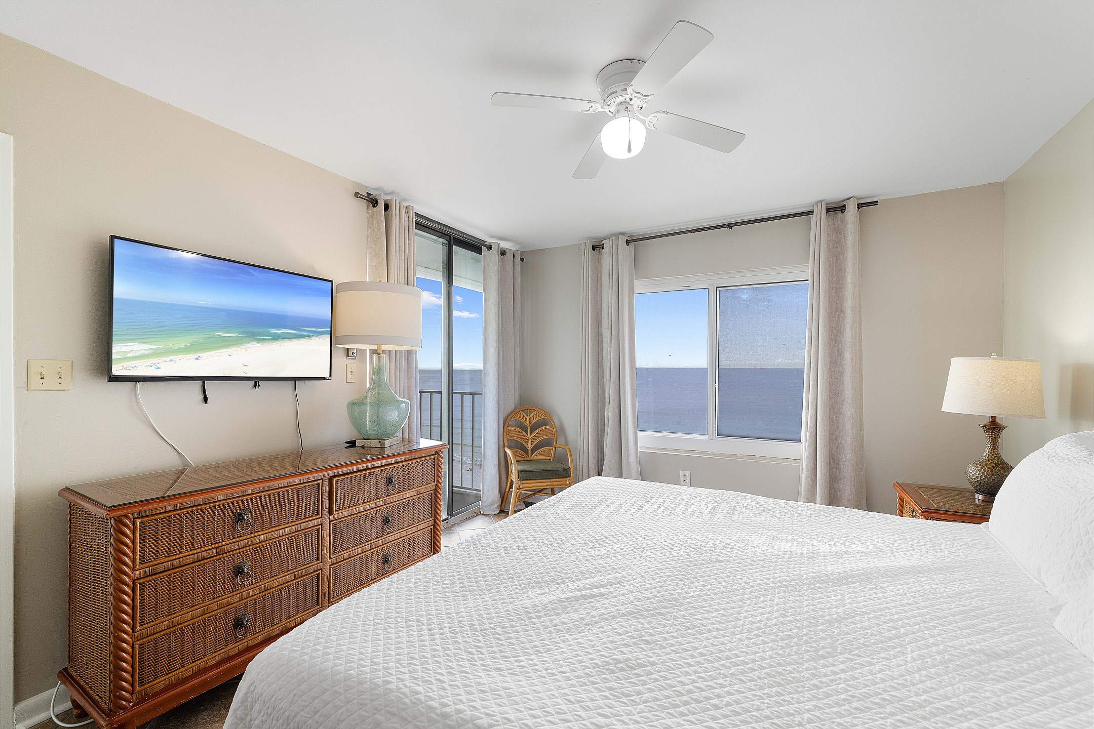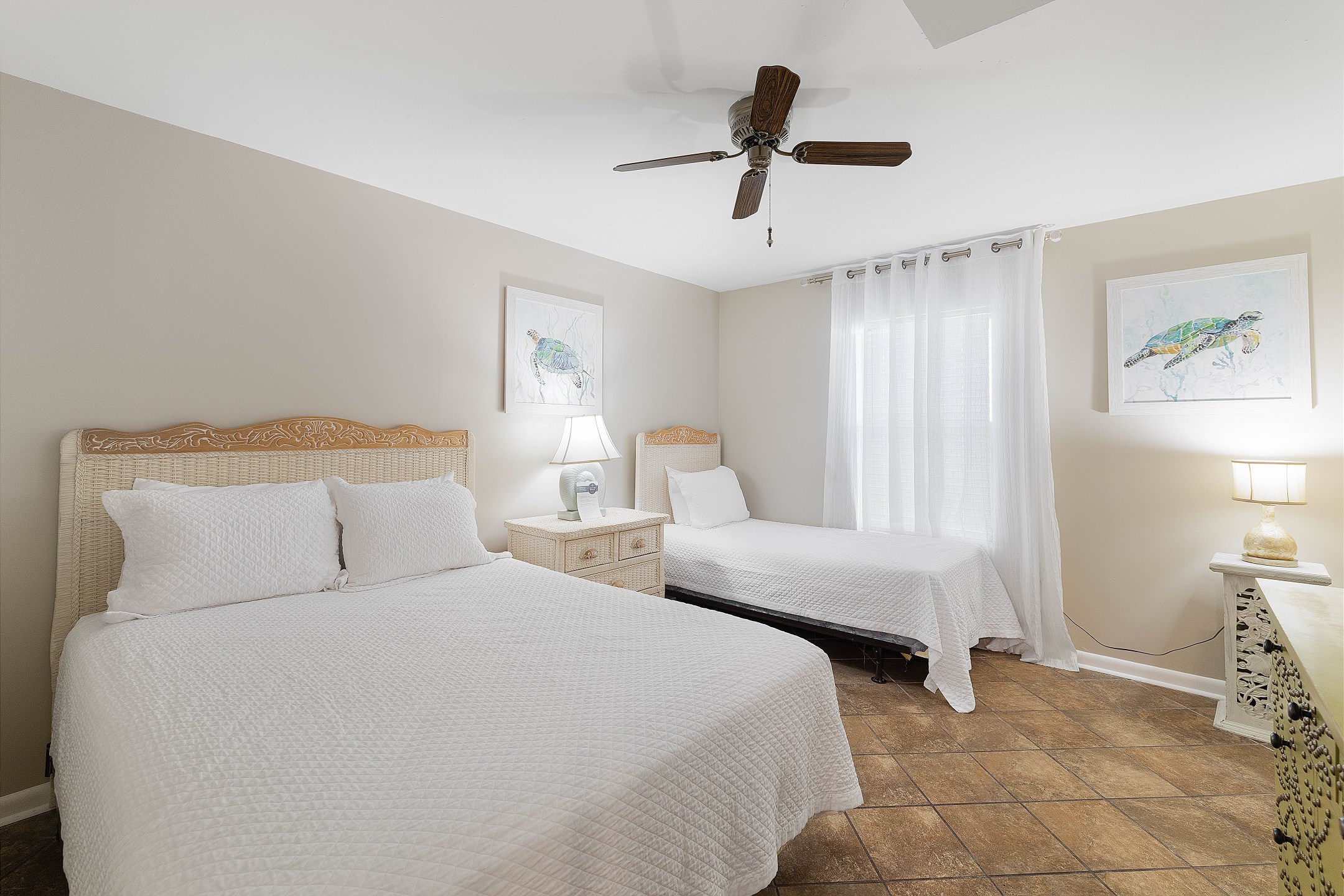Enter the Primary suite and be greeted by the luxury of a King bed, promising peaceful nights with the gentle lullaby of the waves. For additional convenience, the guest bedroom is equipped with both a Full and a Twin bed, making it an ideal space for family or friends.