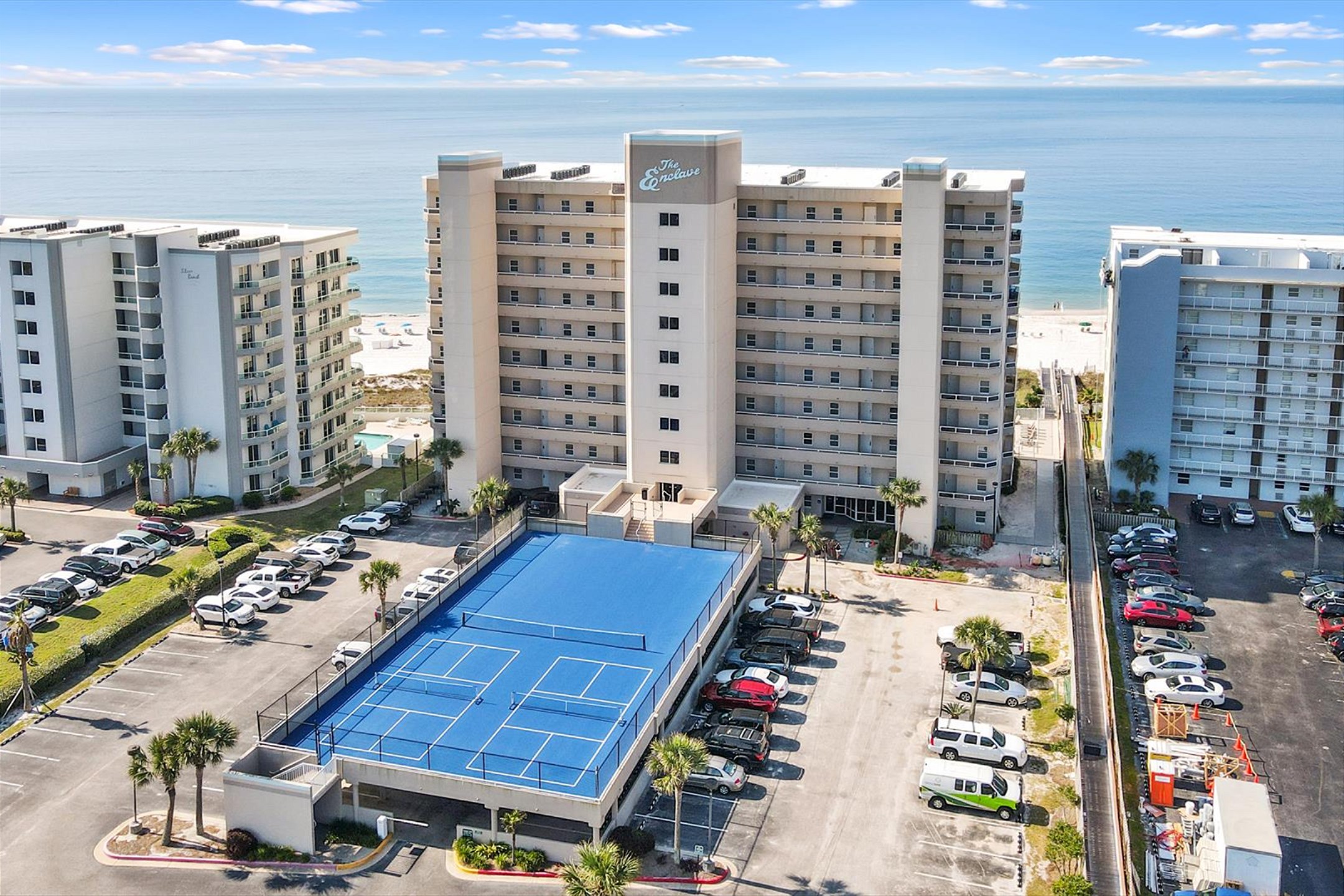 The Enclave stands out as a low-density, family-oriented condominium in Orange Beach, ideal for those seeking both tranquility and convenience. Enjoy the beach-front pool, a perfect spot for sunbathing and swimming with stunning ocean views. For cooler days or a change of pace, the heated indoor pool, overlooking the Gulf, provides a warm and inviting swimming experience. For guests with an active lifestyle, the tennis court offers the opportunity for a friendly game or to practice your skills. The Enclave's prime location means you're just a short walk away from a variety of shopping options, delightful dining experiences, and family-friendly entertainment.