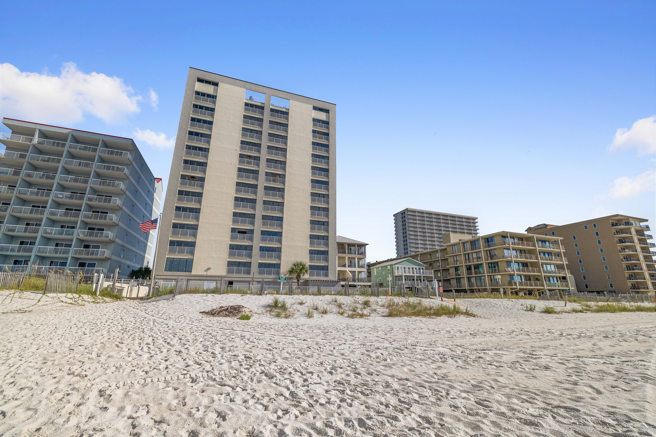 The Gulf Tower 3D is a beautiful beachfront condominium located directly on the West Beach in Gulf Shores, AL. Situated on the 3rd floor, this 2-bedroom, 2-bath unit comfortably sleeps 6 guests, offering the perfect getaway for families or small groups.