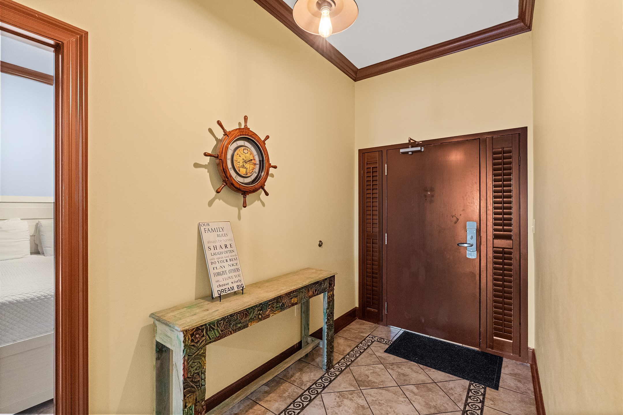 We enjoyed our stay here. Our boys loved the pirate themed room. Kitchen had all needed items. My only complaints are I did not like the glass doors in the master bedroom that open to the dining area and the owners do not leave the remote for the power sun shades available for renters. The glass doors in the master are not kid friendly, let a lot of light into the room, and there is no way to lock them closed. Not having curtains or access to the remote for the sun shades was very annoying. We like to sleep until 8-9 some morning but the light was so bright into the room and then into the master that it woke us up every morning about 6:30am. Other than that a great experience. Hopefully the owner will eventually fix those issues for future renters.Caitlin S. - Posted: 6/28/2021